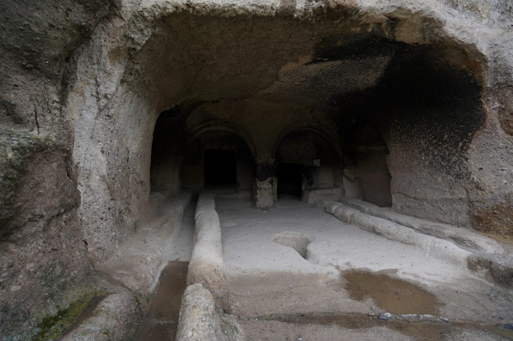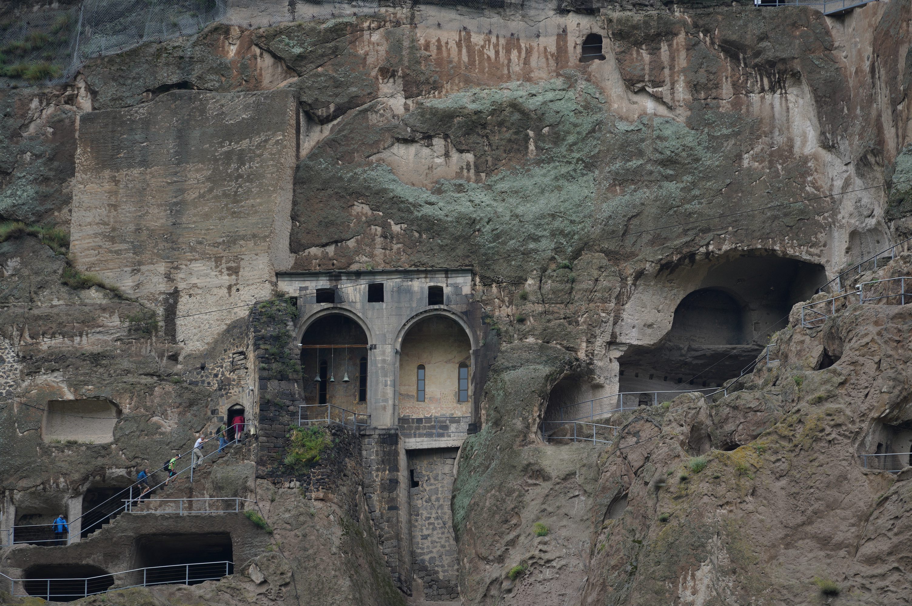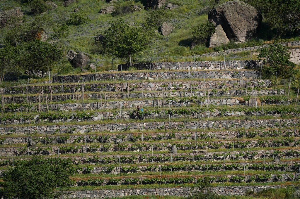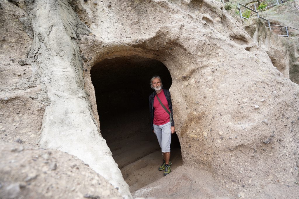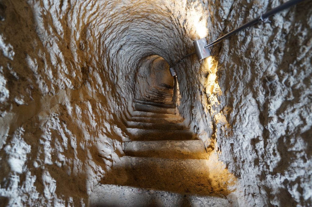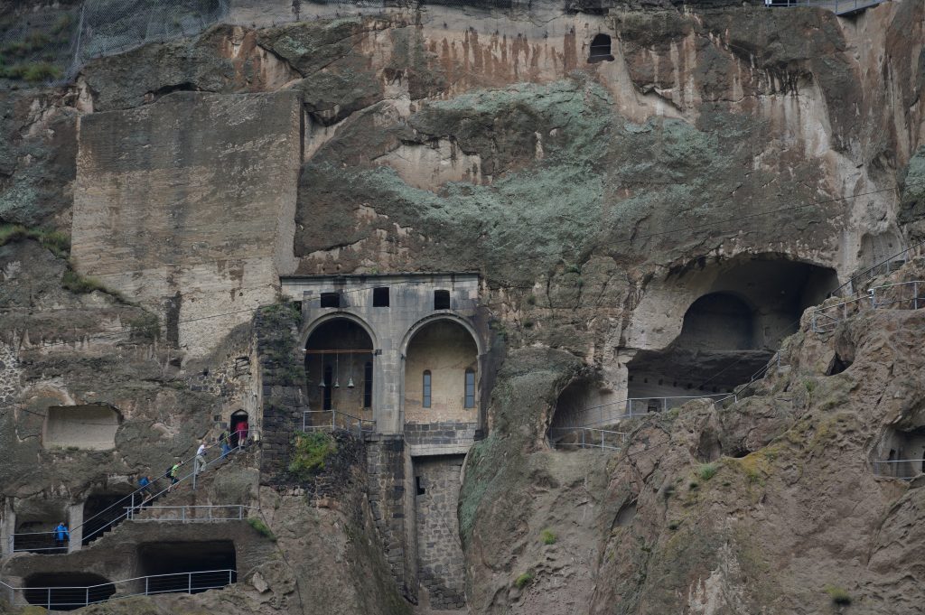 der Abgang in mehreren Tunneltreppensuper Stellplatz die erste Nacht in Georgiender Weinberg direkt unterhalb des HöhlenbergesWanis Kwabebi (Wegen Steinschlaggefahr darf man nicht mehr hinaufsteigen)KuratalFestung Khertvisi am TaleingangBlick auf die 691 Richtung Westen, Richtung BojumiBlick zurück ins Kura Tal
