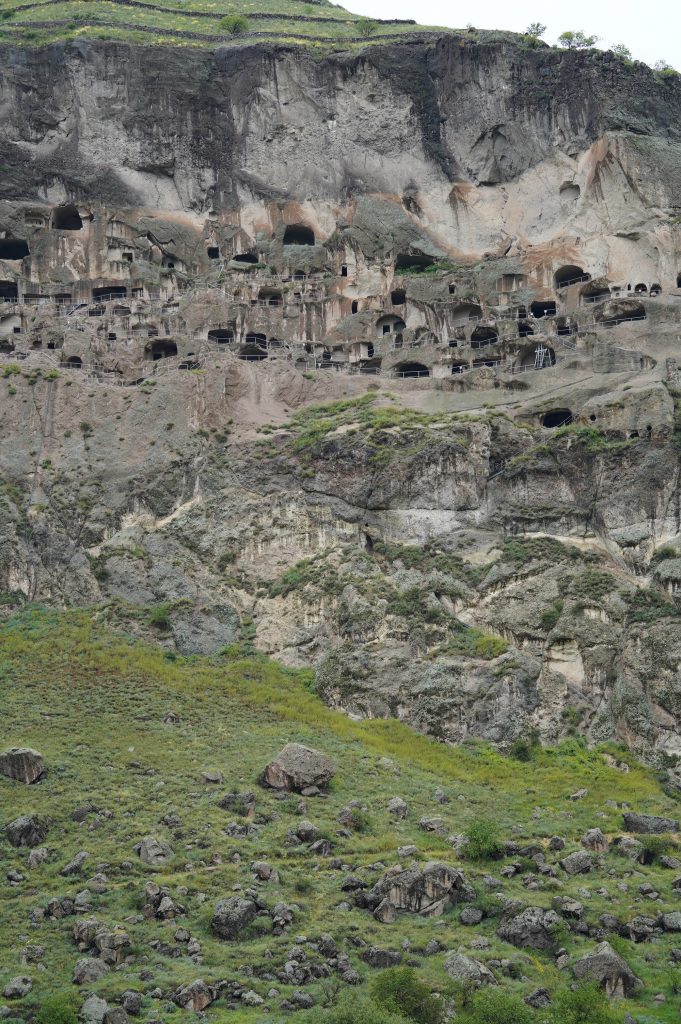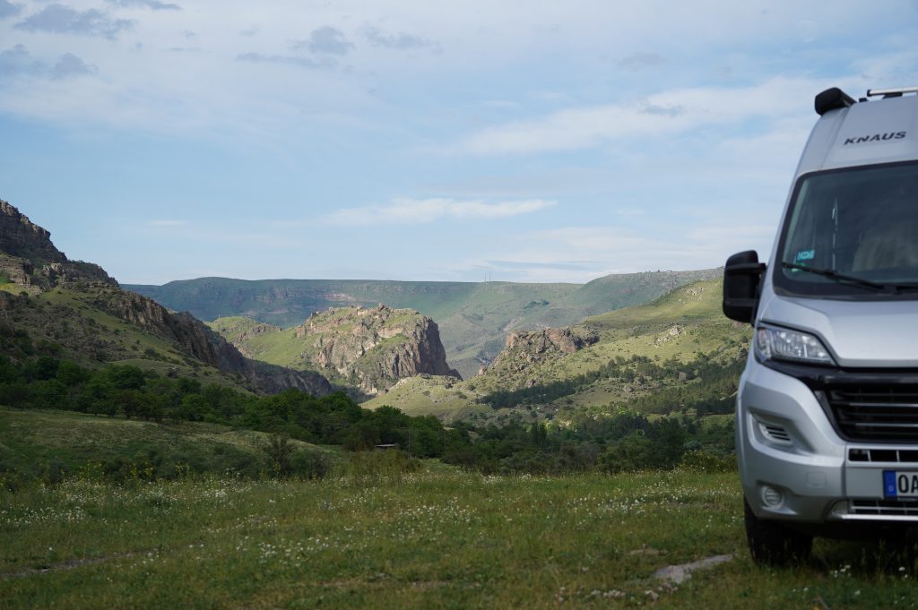 9.06.2022 Einreise nach Georgien. Der westlichste Übergang bei Bavra, nahe der Türkei. Wieder nicht ganz ohne Probleme. Die Armenier konnten die Automarke Knaus wohl nicht in ihren Computer finden…die Georgier wollten wissen wie ich nach Armenien gekommen bin. Dass die Iraner keine Stempel mehr geben hat sich wohl noch nicht rumgesprochen. Mein erster Anlaufpunk ist Wardsia die Höhlenstadt. Die Fahrt dorthin ist schon mal sehr schön, zunächst entlang des Paravani-Fluss, dann in das Kura-Tal.