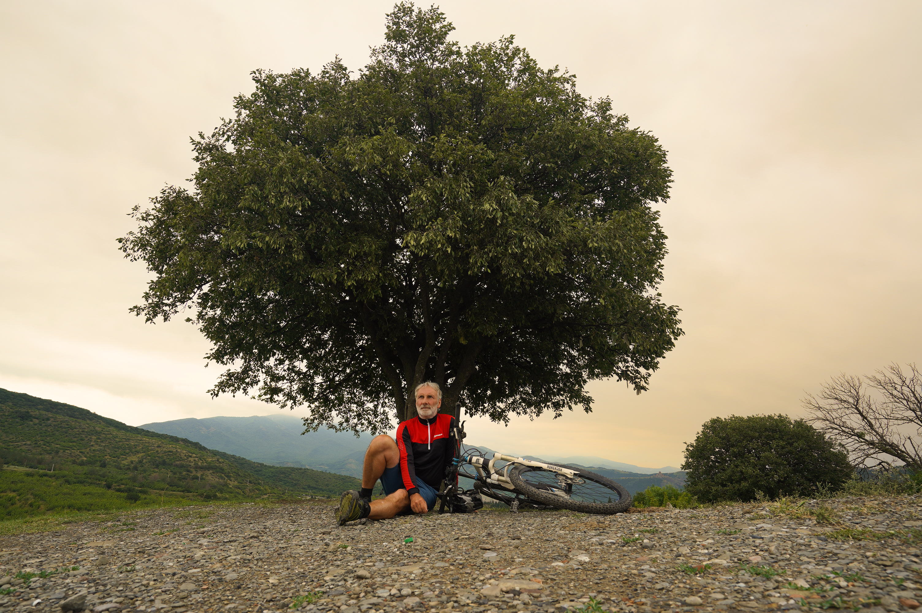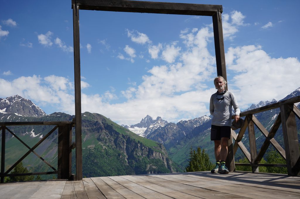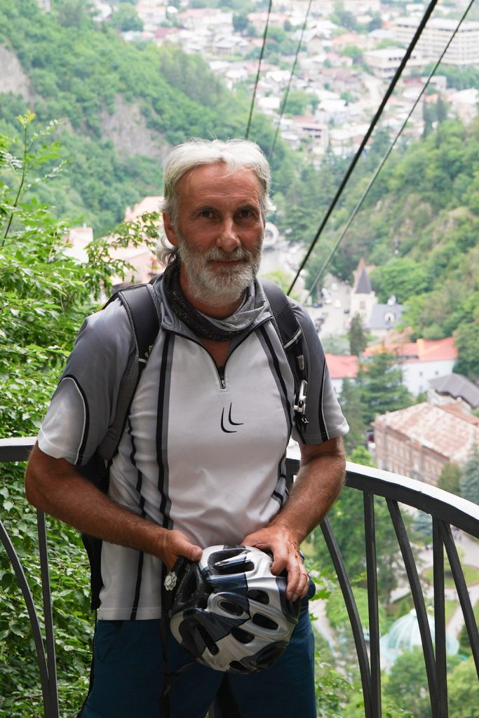 Radtour nach Mukhatskaro….mit Blick zum Lisi-Seetypischer Gesichtsausdruck eines Georgiershier bin ich schon am Hotel KMM, Treffpunkt für die Wanderung mit DAV Summit Club