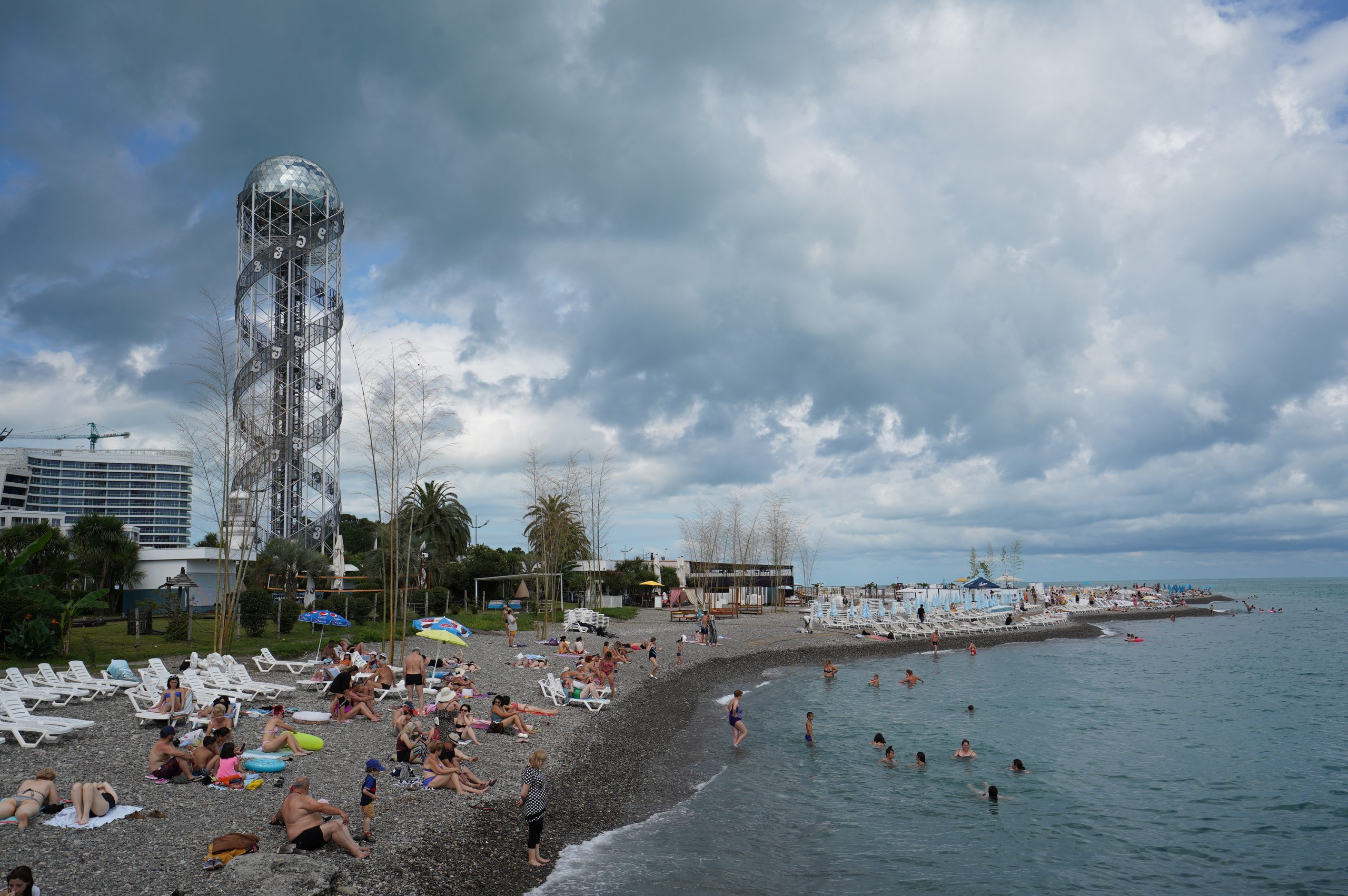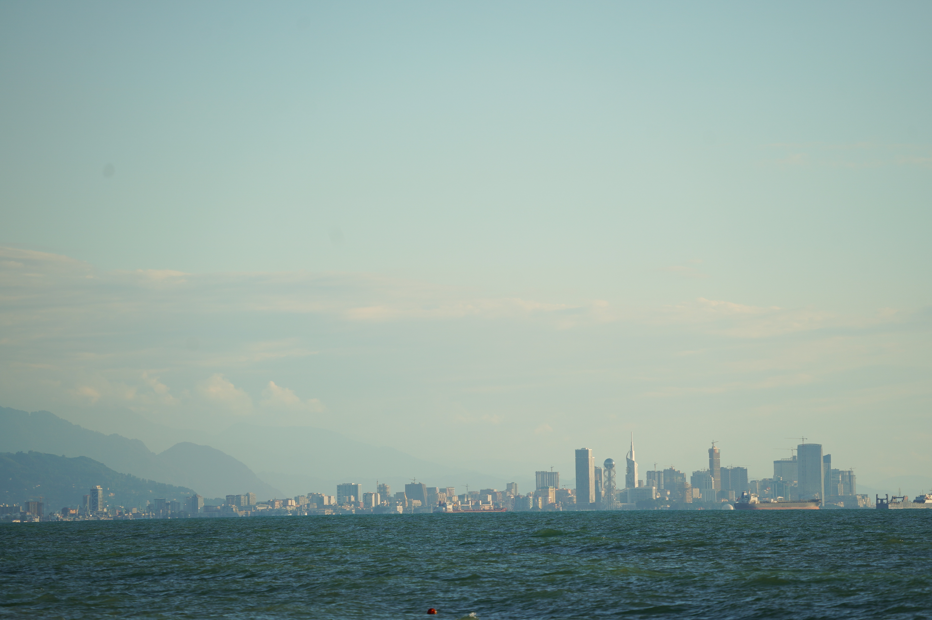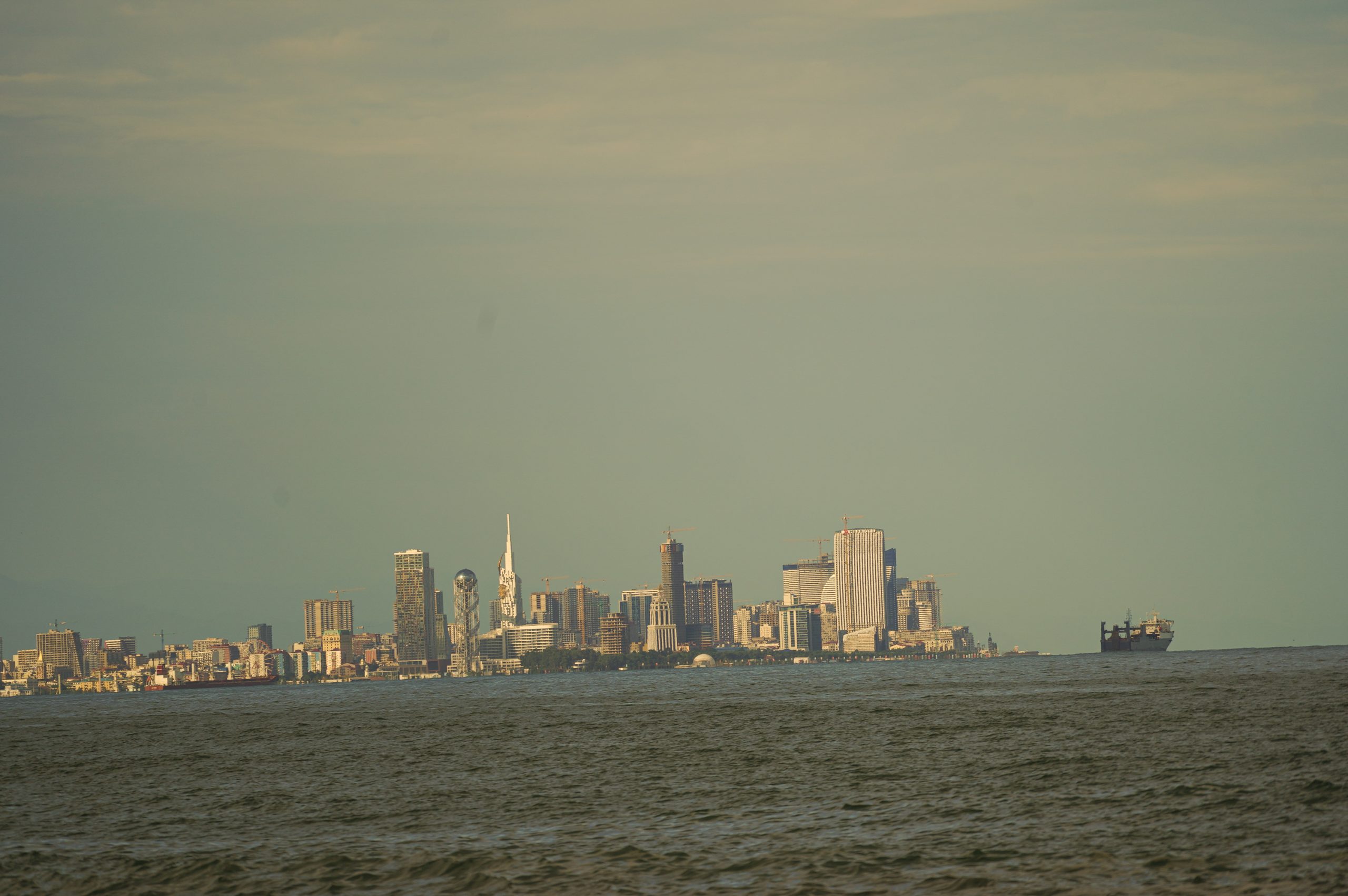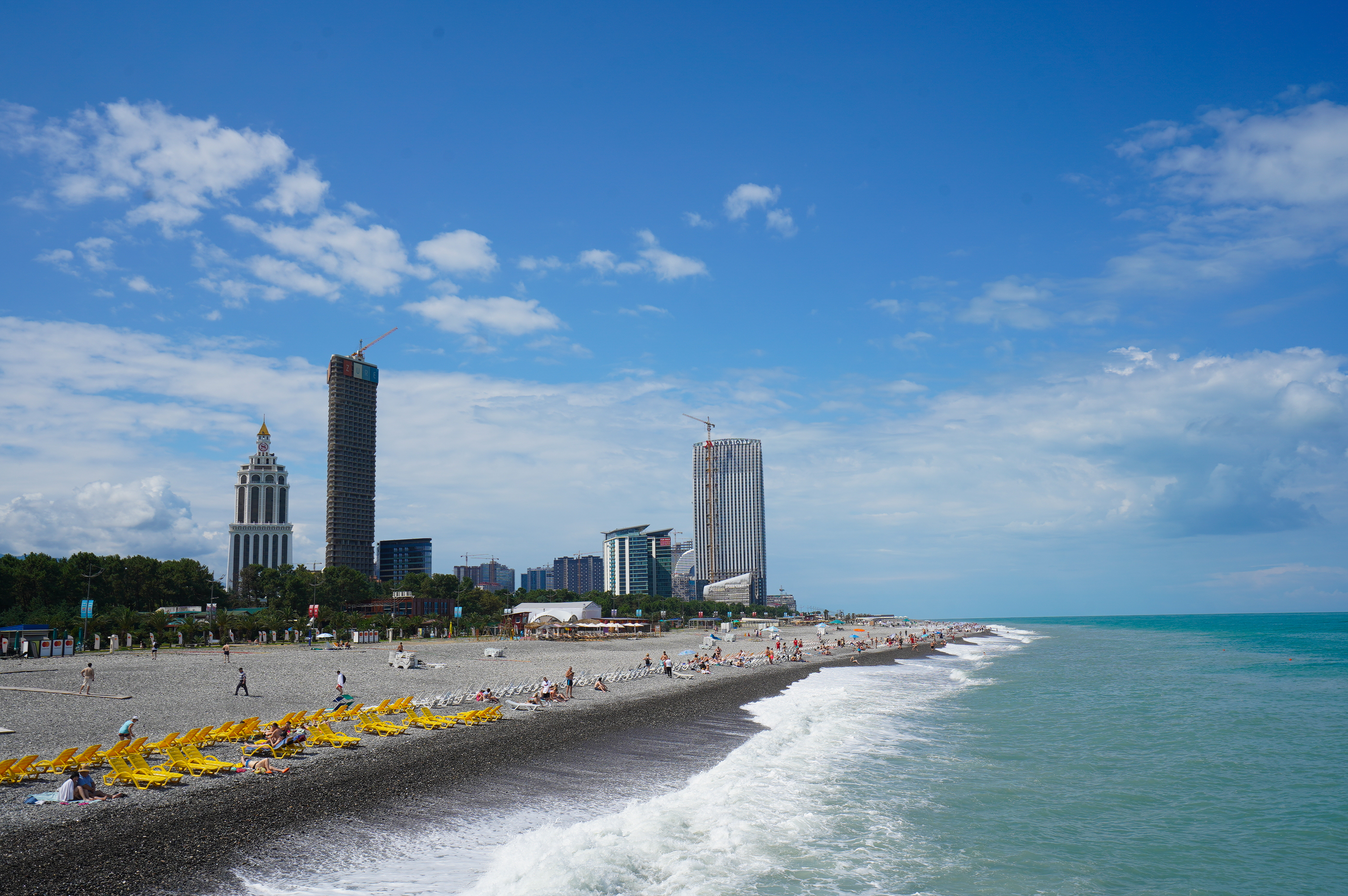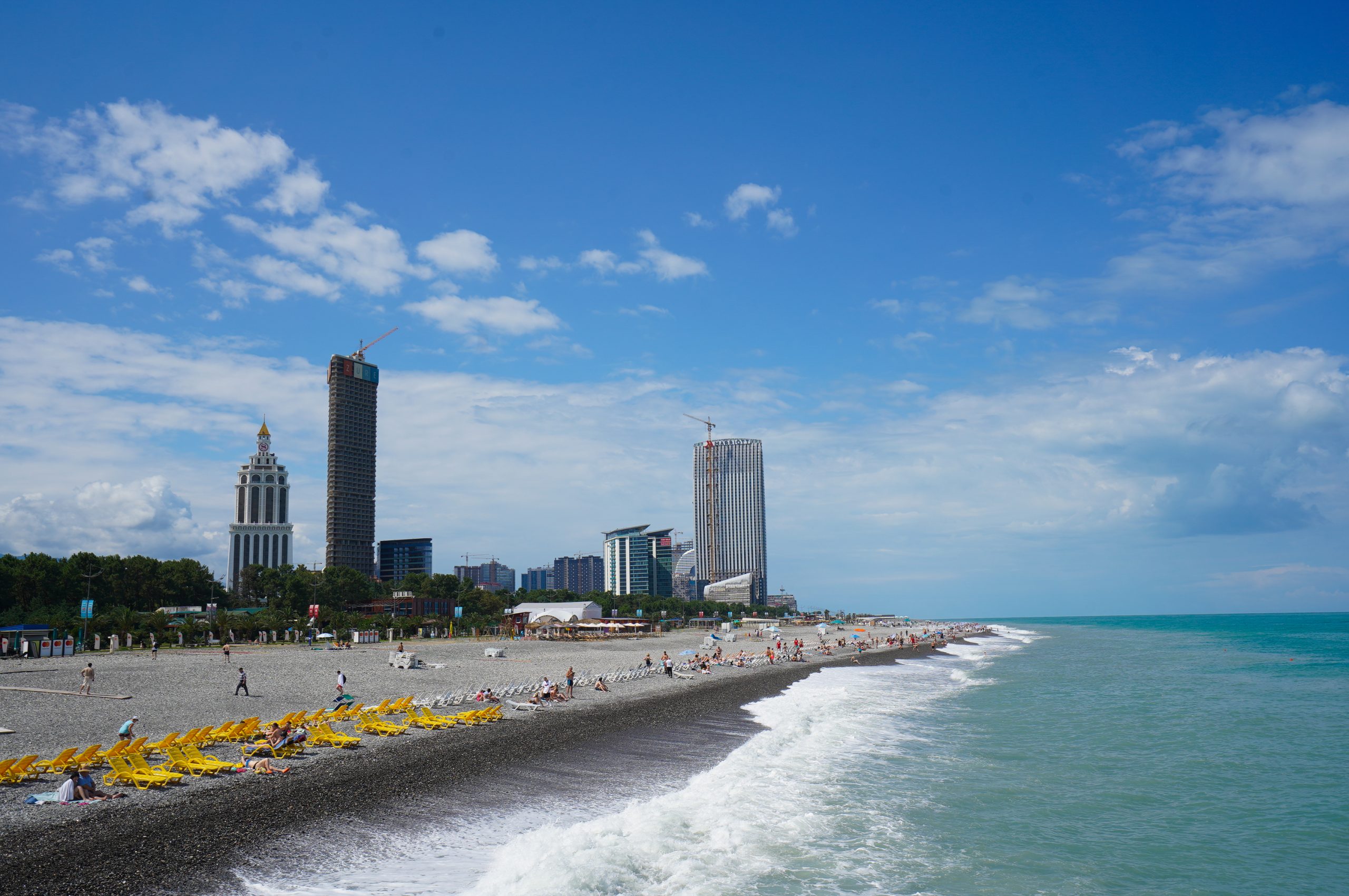 Über die Hafenstadt Poti bin ich dann am Abend am schwarzen Meer angekommen, an der Ureki Beach. Dort gibt es einige Hotels, aber vieles ist wie überall ziemlich verkommen. An einen frei zugänglichen Park direkt am Meer habe ich mir einen Übernachtungsplatz gesucht. Feiner schwarzer Sand und recht sauber.
