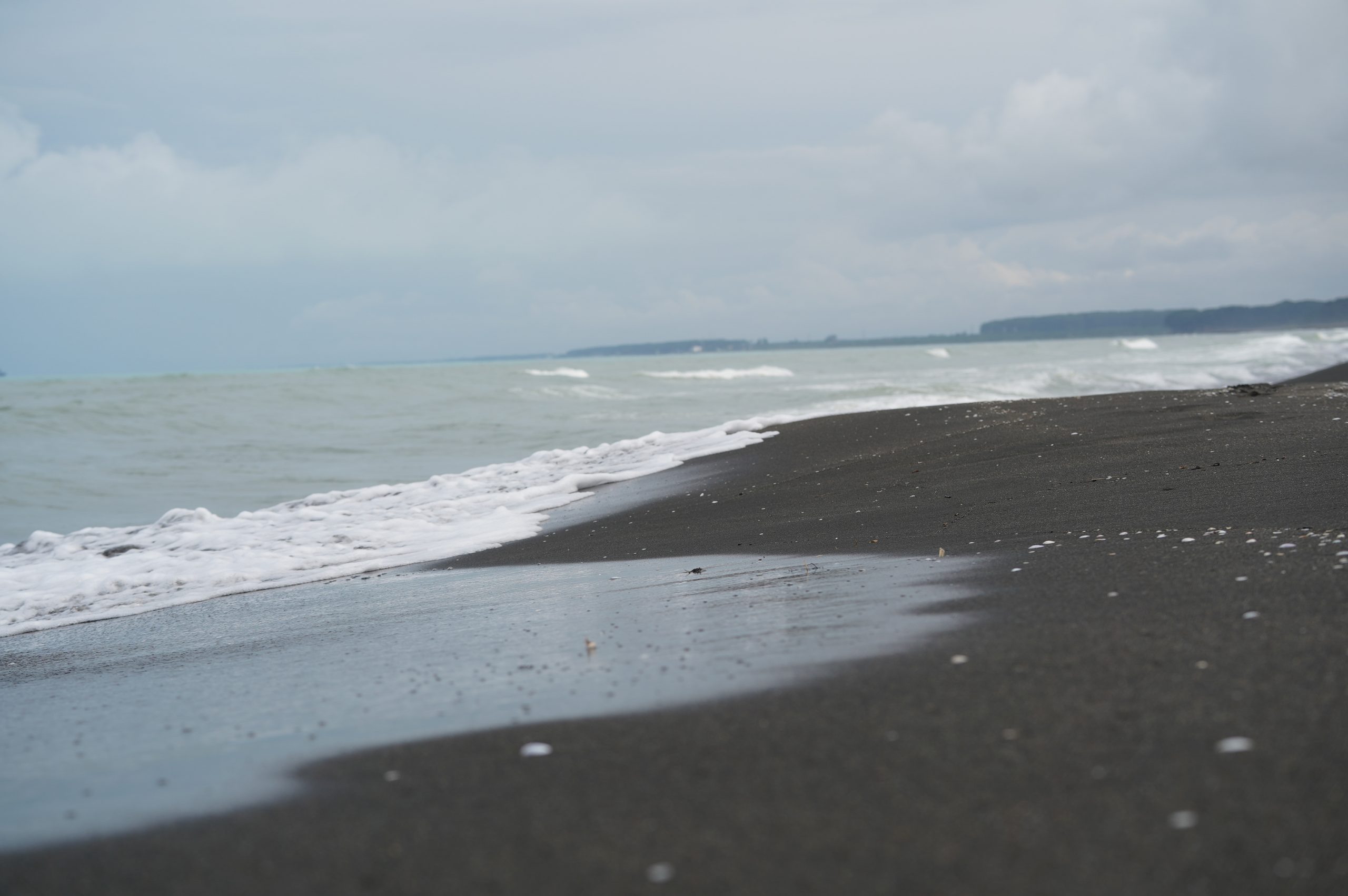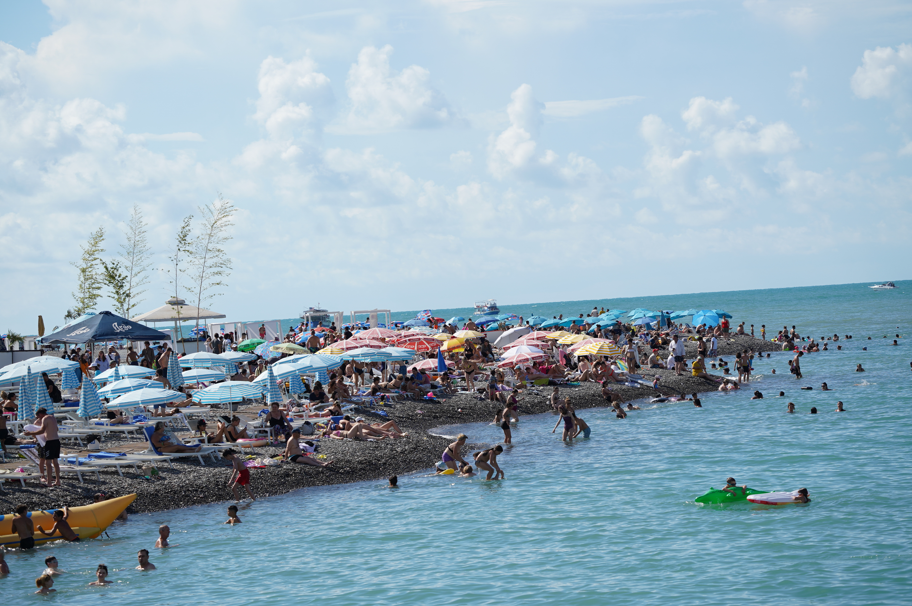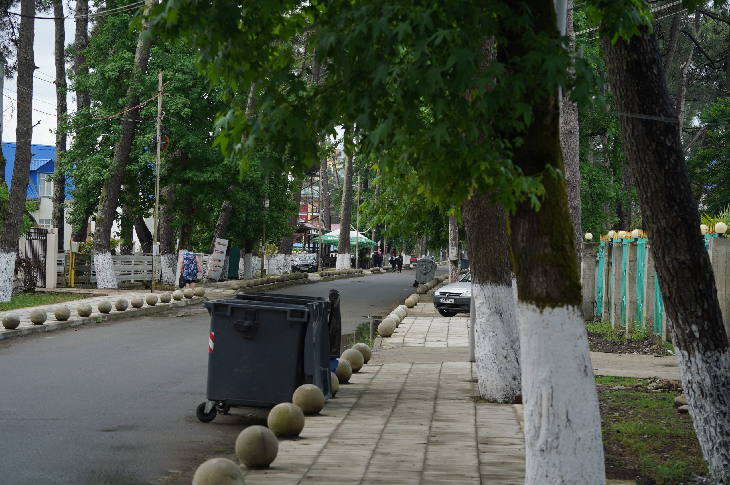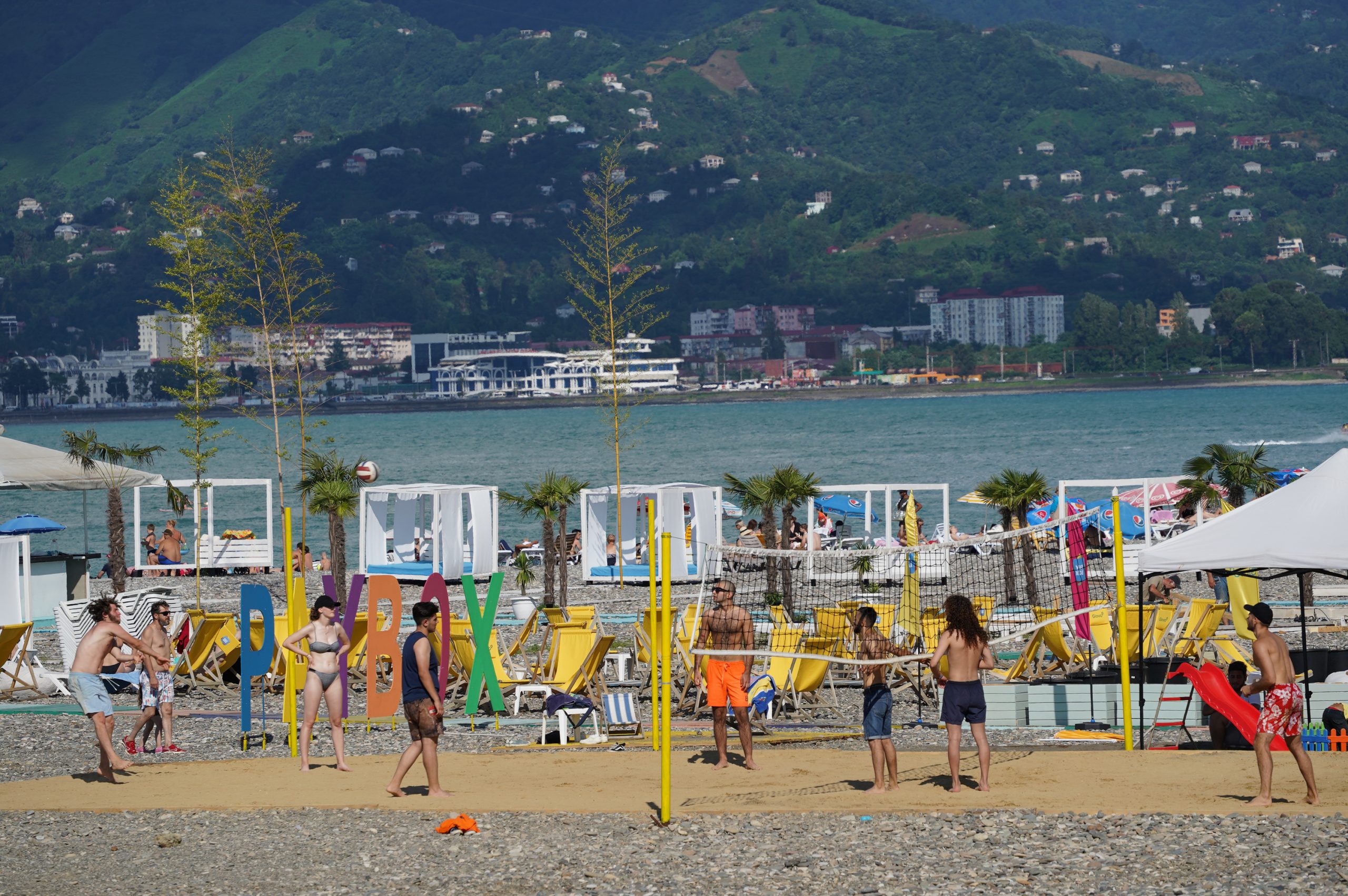 Über die Hafenstadt Poti bin ich dann am Abend am schwarzen Meer angekommen, an der Ureki Beach. Dort gibt es einige Hotels, aber vieles ist wie überall ziemlich verkommen. An einen frei zugänglichen Park direkt am Meer habe ich mir einen Übernachtungsplatz gesucht. Feiner schwarzer Sand und recht sauber.