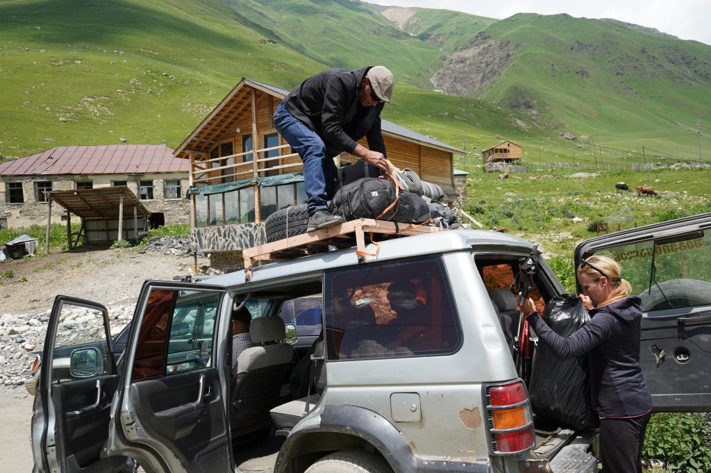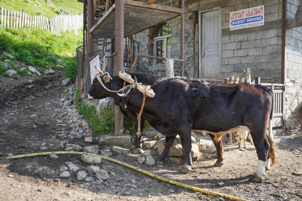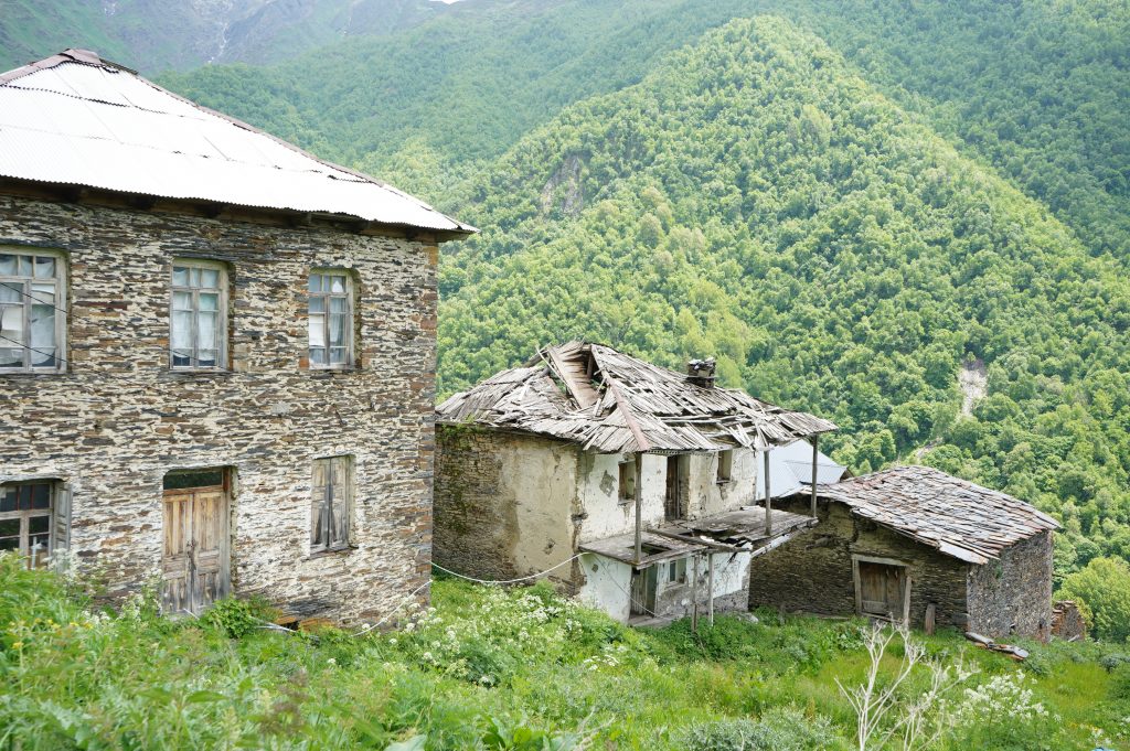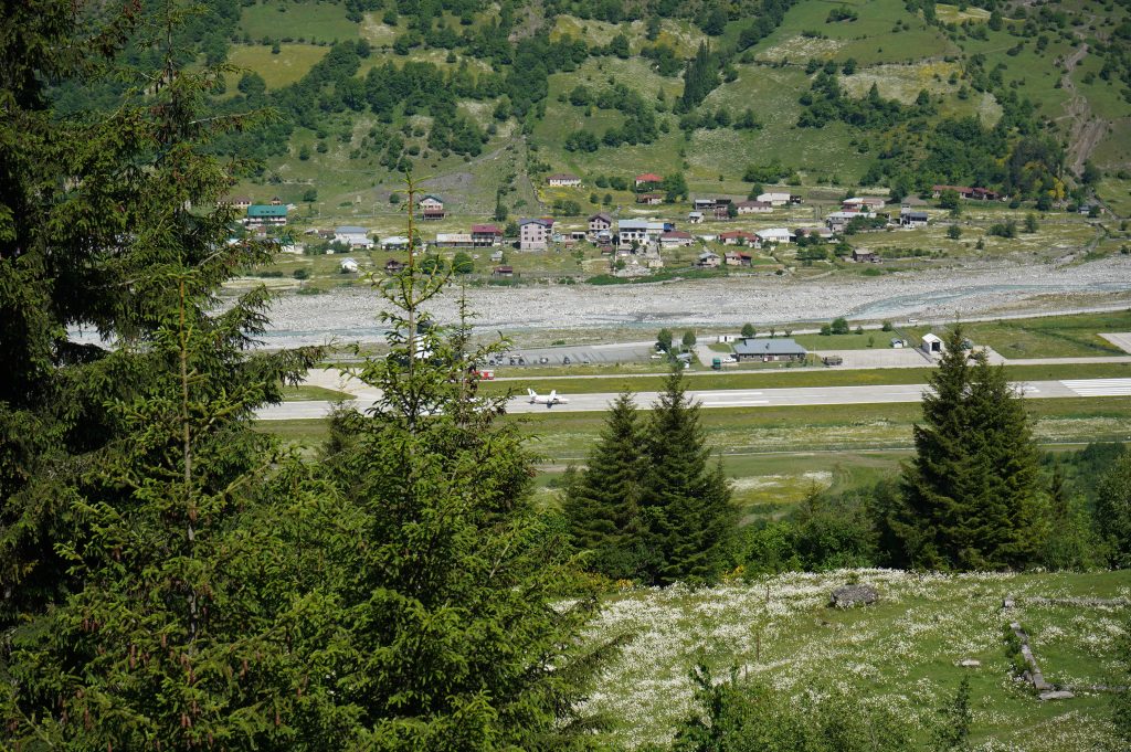 Blick zurück auf MestiaFlughafen MestiaBlick zurückChalaadi Glacierverlassene Dörfer auf den Weg nach Zhambeshiwir hatten uns nicht getraut über dieses wacklige Brett zu laufen, für diese Einheimischen wohl das normalste der WeltÜbernachtung im Gasthaus VictorZweiter Tag.Aufstieg auf über 2400m, am Skigebiet vorbei.Adishi, Ziel der zweiten Etappe. Ein sehr abgelegenes Dorfmeine Unterkunftan der Bar ist keiner vorbei gekommenAdishi Die Bullen werden für Transporte benutzt bzw. für die Feldarbeit. Auf über 2000m wachsen dort KartoffelnBegegnungen auf dem WegFlußüberquerung mit Pferdder Amerikaner wollte die Herausforderung. Er hatte zu kämpfen auf den Beinen zu bleibenShkhara Gletschervom Chkhunderi Pass sieht man hinein ins Khaldechala River Valley, Khaldechala Schlucht kurz vor dem Dorf KhaldeKhaldeAnkunft in IprariIprariUnterkunft in Iprarider letzte Tag beginnt mit einen verwachsenen Wegstücknette Bergrüßung im nächsten Dorfdanach ging es über schöne Wiesen und Wälder nach UschguliBlick zur abenteuerlichen Schotterstraße nach Uschgulidie letzten Meter Ankunft in Uschgulidie drei netten Wegbegleiter aus Köln bleiben noch eine Nacht in diesen traditionellen alten Haus.Einheimische. Es ist auch hier schwer den Menschen ein Lächeln abzuringen. Rückfahrt im Allradauto. Sieben Leute, sechs Nationen
