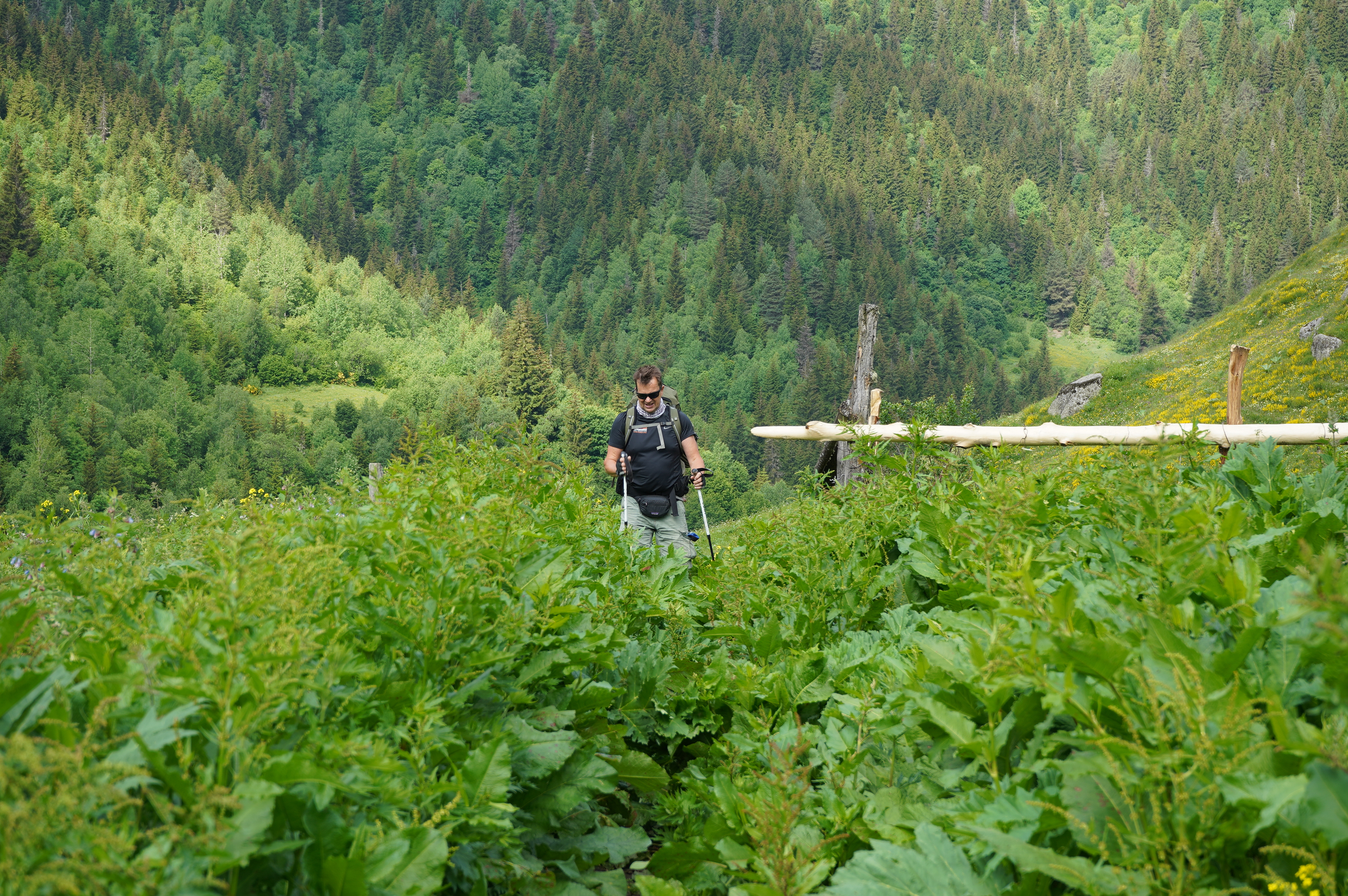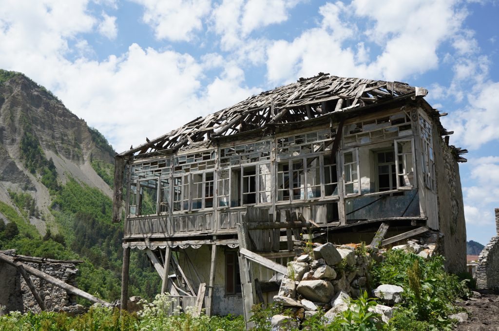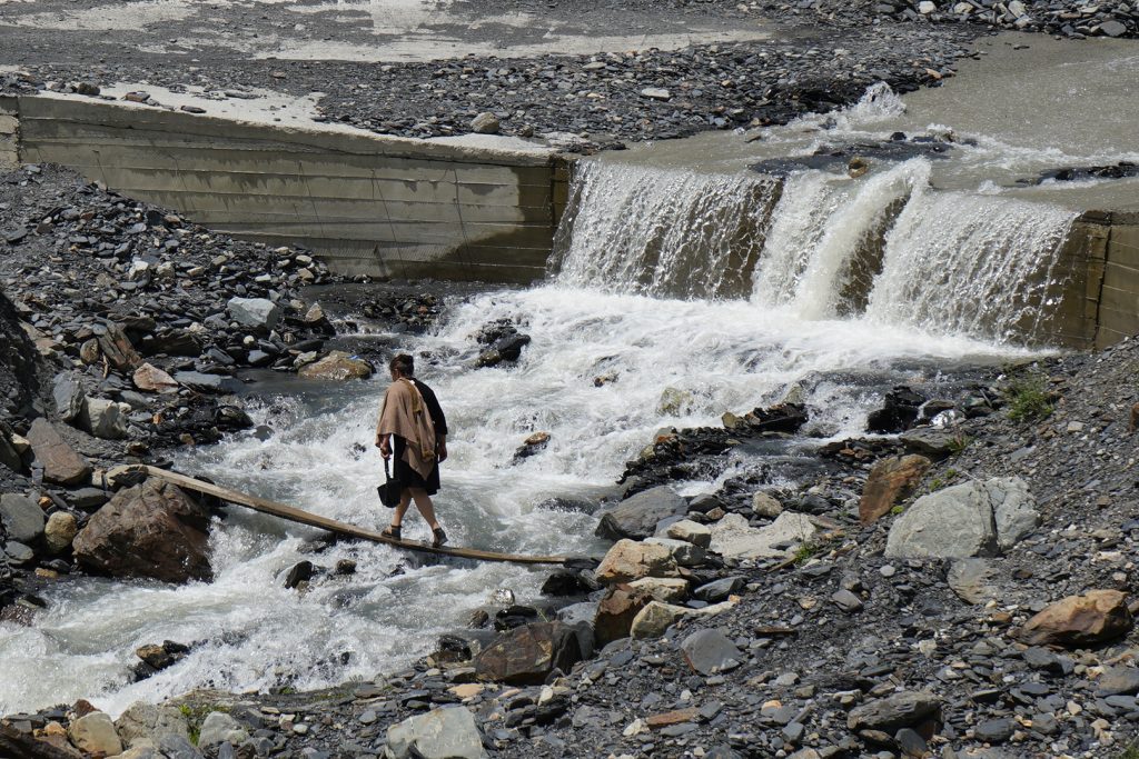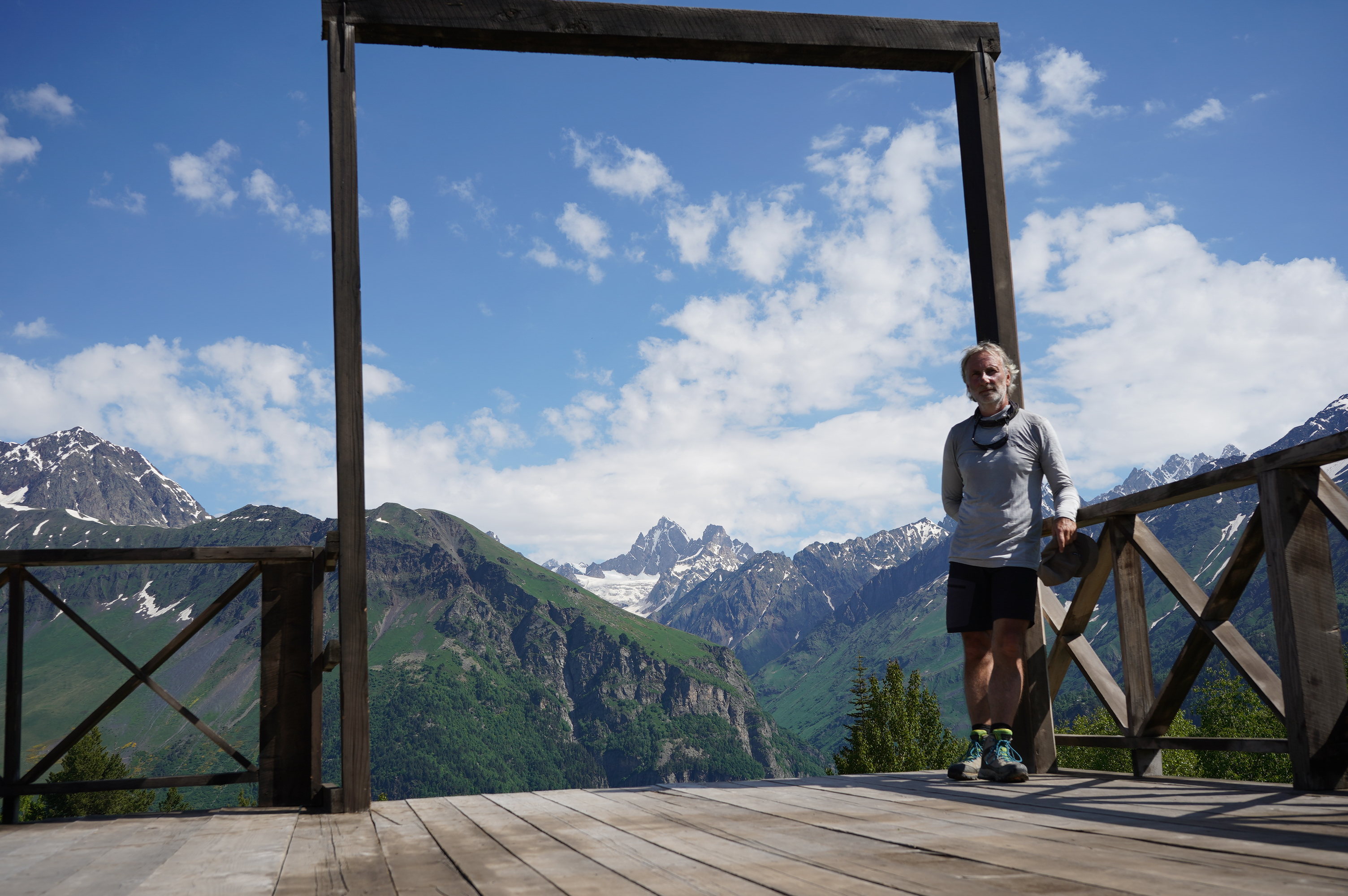 Blick zurück auf MestiaFlughafen MestiaBlick zurückChalaadi Glacierverlassene Dörfer auf den Weg nach Zhambeshiwir hatten uns nicht getraut über dieses wacklige Brett zu laufen, für diese Einheimischen wohl das normalste der WeltÜbernachtung im Gasthaus VictorZweiter Tag.Aufstieg auf über 2400m, am Skigebiet vorbei.Adishi, Ziel der zweiten Etappe. Ein sehr abgelegenes Dorfmeine Unterkunftan der Bar ist keiner vorbei gekommenAdishi Die Bullen werden für Transporte benutzt bzw. für die Feldarbeit. Auf über 2000m wachsen dort KartoffelnBegegnungen auf dem WegFlußüberquerung mit Pferdder Amerikaner wollte die Herausforderung. Er hatte zu kämpfen auf den Beinen zu bleibenShkhara Gletschervom Chkhunderi Pass sieht man hinein ins Khaldechala River Valley, Khaldechala Schlucht kurz vor dem Dorf KhaldeKhaldeAnkunft in IprariIprariUnterkunft in Iprarider letzte Tag beginnt mit einen verwachsenen Wegstücknette Bergrüßung im nächsten Dorfdanach ging es über schöne Wiesen und Wälder nach UschguliBlick zur abenteuerlichen Schotterstraße nach Uschgulidie letzten Meter Ankunft in Uschgulidie drei netten Wegbegleiter aus Köln bleiben noch eine Nacht in diesen traditionellen alten Haus.Einheimische. Es ist auch hier schwer den Menschen ein Lächeln abzuringen. Rückfahrt im Allradauto. Sieben Leute, sechs Nationen