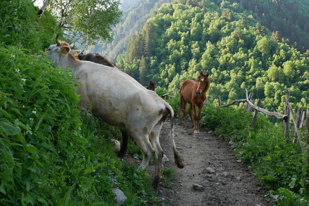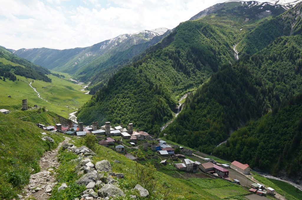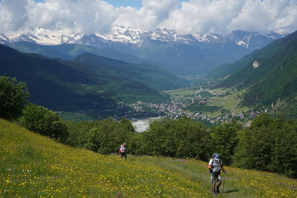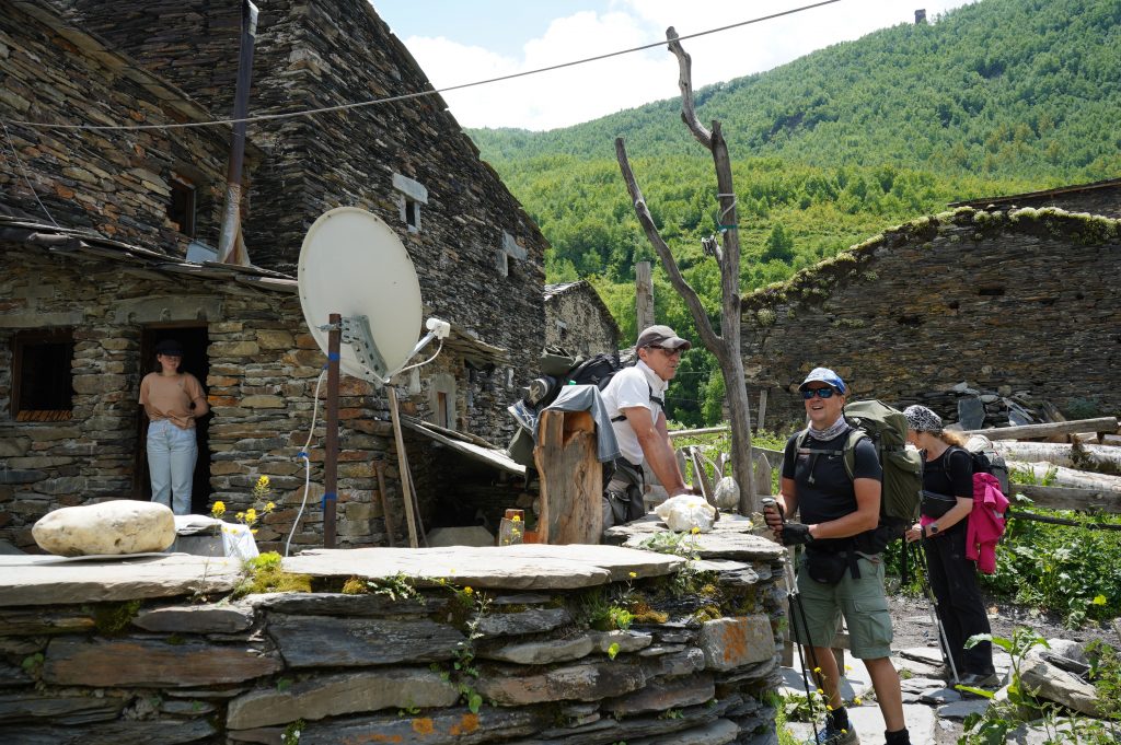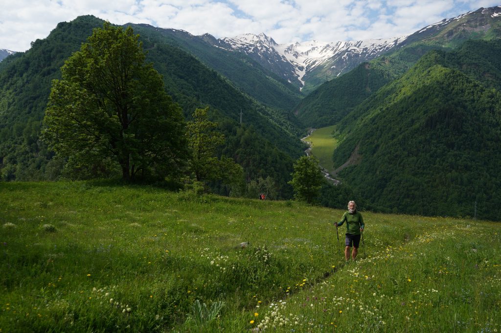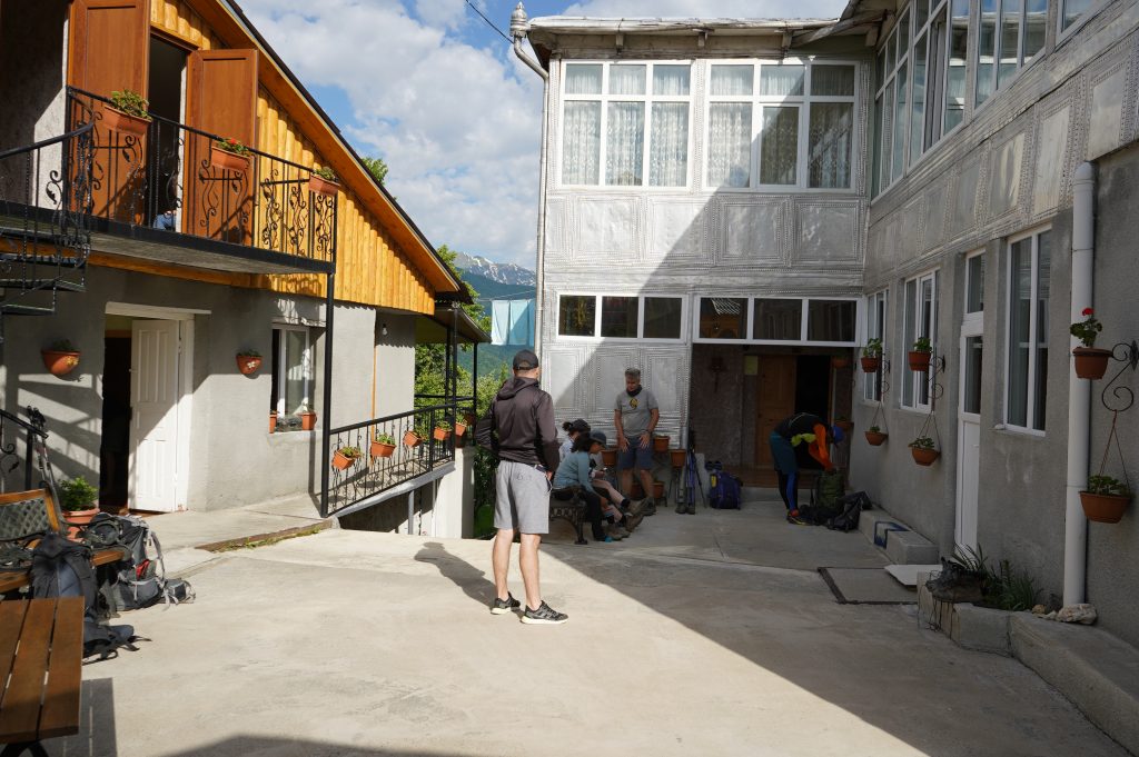 18.06.2022 Wanderung von Mestia nach Uschguli über 4 Tage. Am Ortsausgang von Mestia habe ich drei Leute aus Köln getroffen, die den gleichen Weg vor hatten. Teilweise sind wir zusammen gelaufen, haben aber immer Abends zusammen gesessen. Es waren insgesamt so ca. 30 Leute unterwegs, die auch diese 4 Etappen bestreiten. So trifft man immer die gleichen Leute auf den Weg und in den Gasthäusern. Sehr international, USA, Brasilien, Mexiko, Polen, Russland, Frankreich, Türkei, England, Israel und Deutsche natürlich.