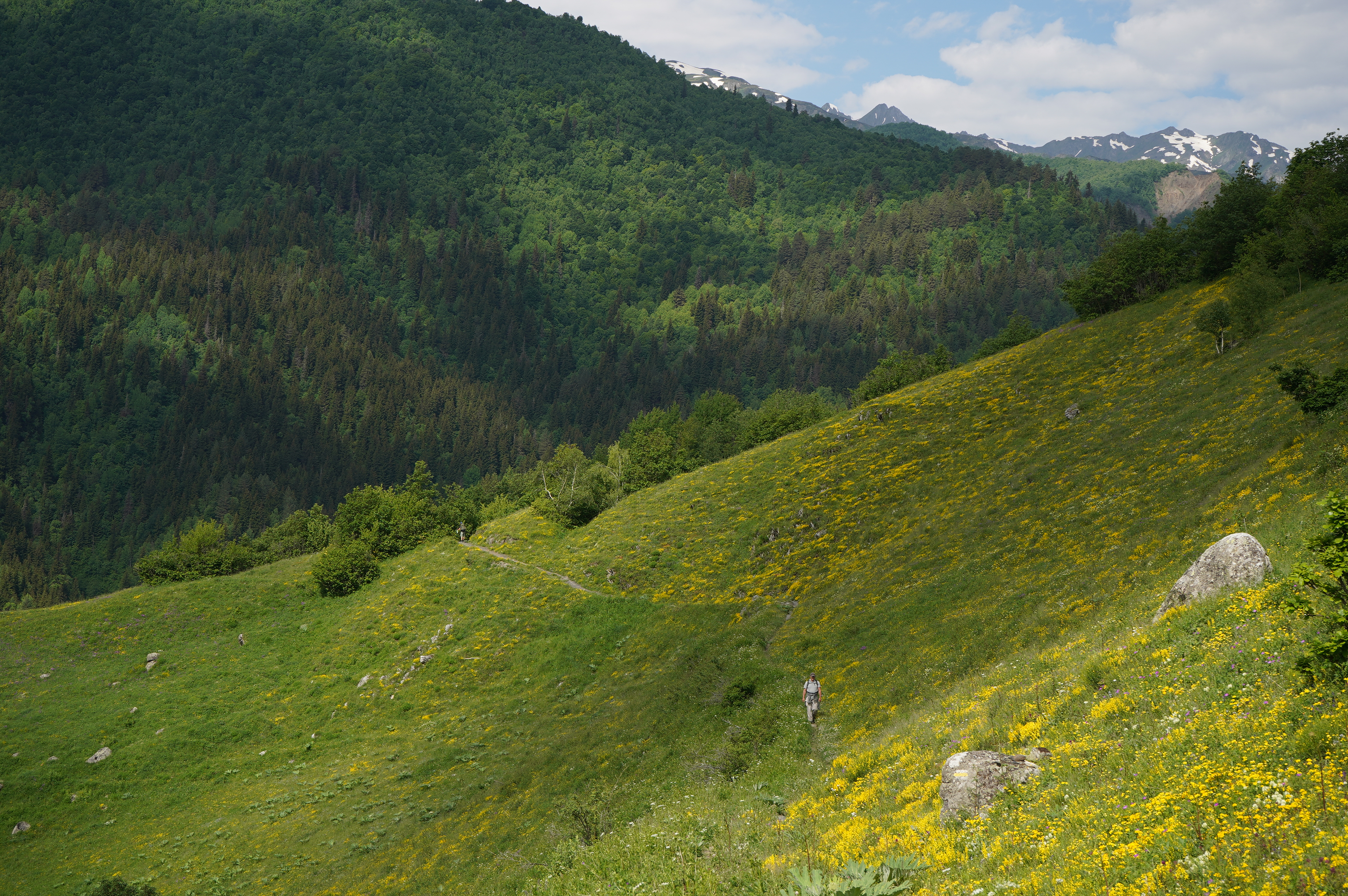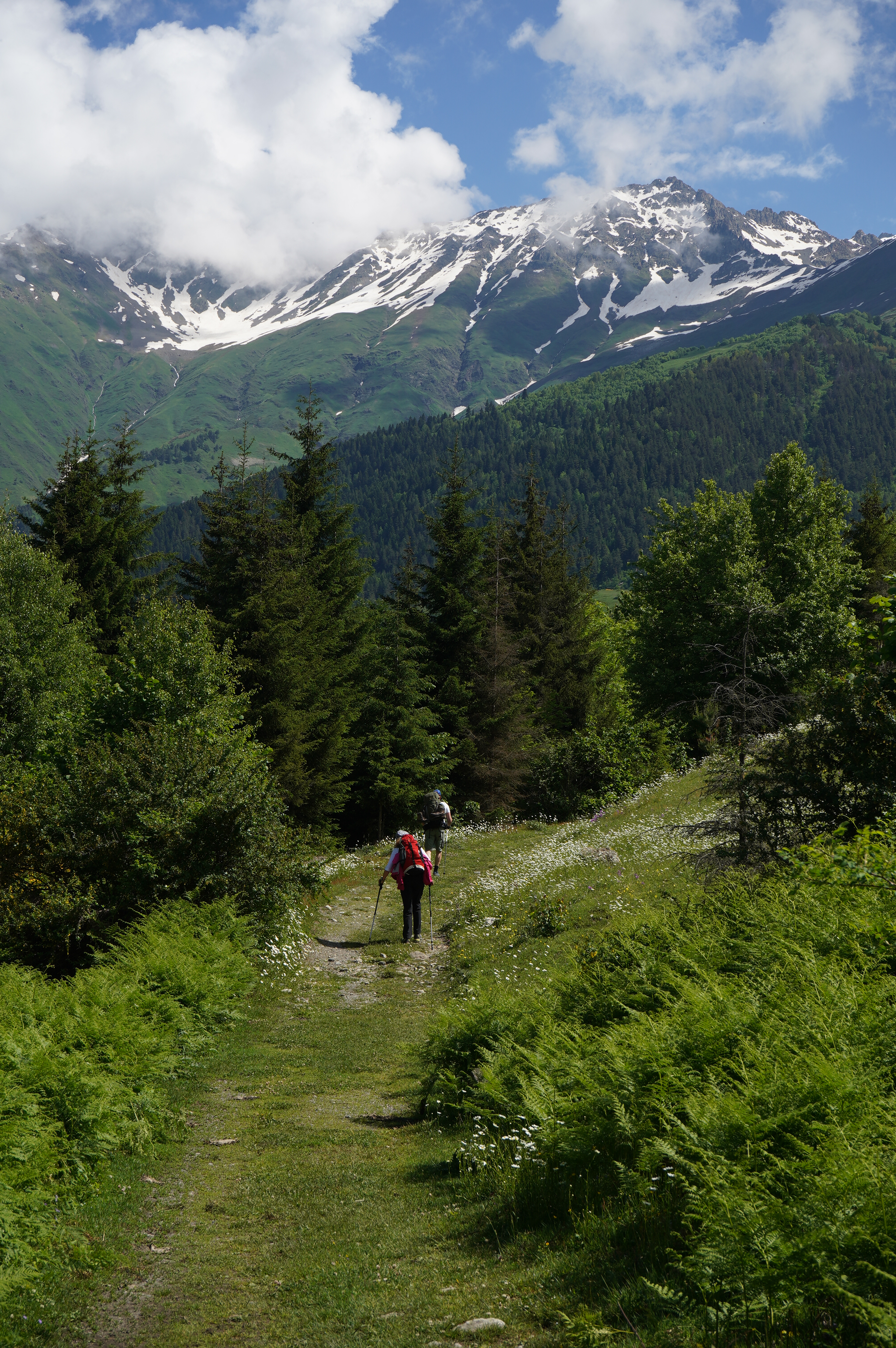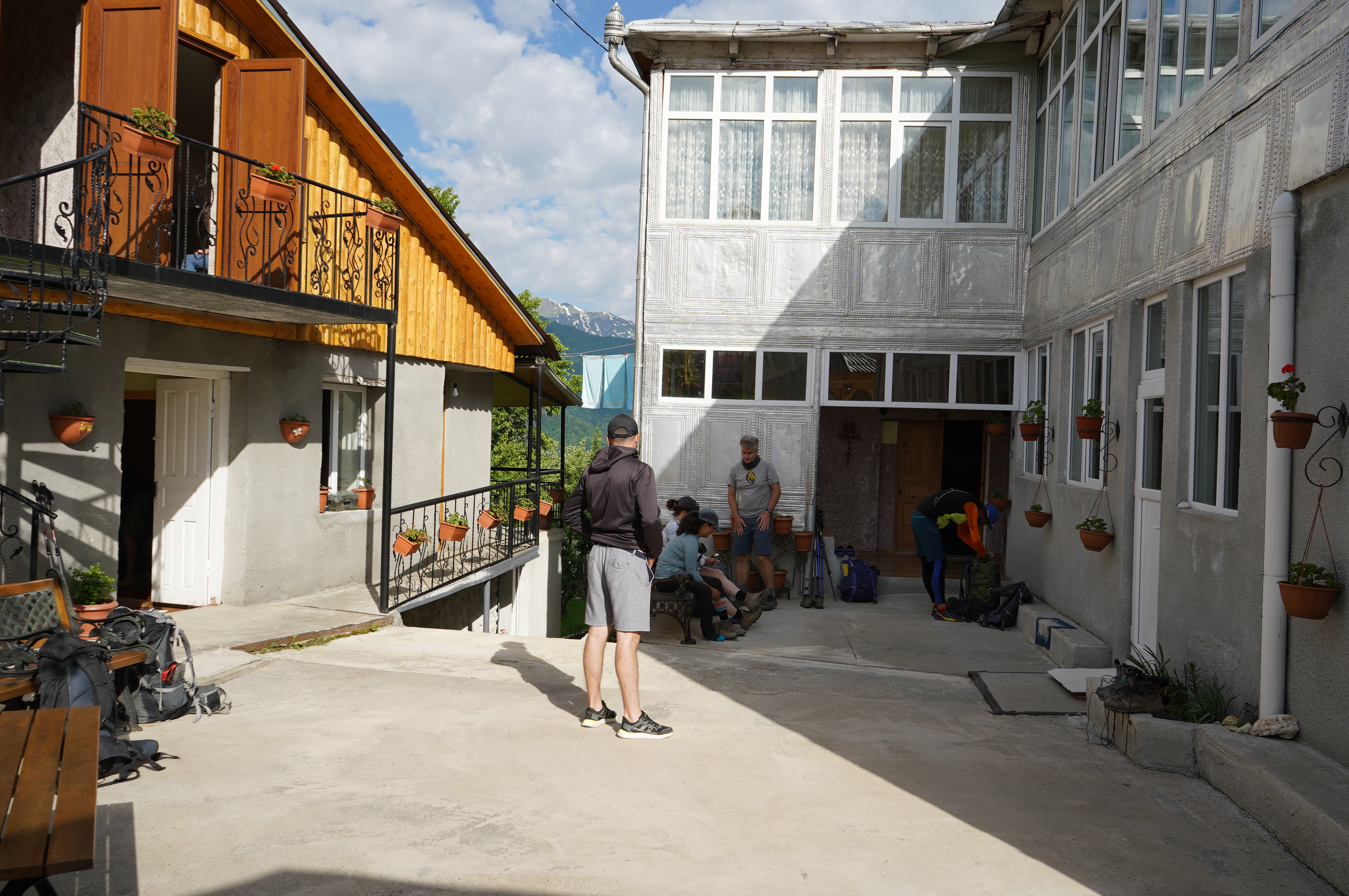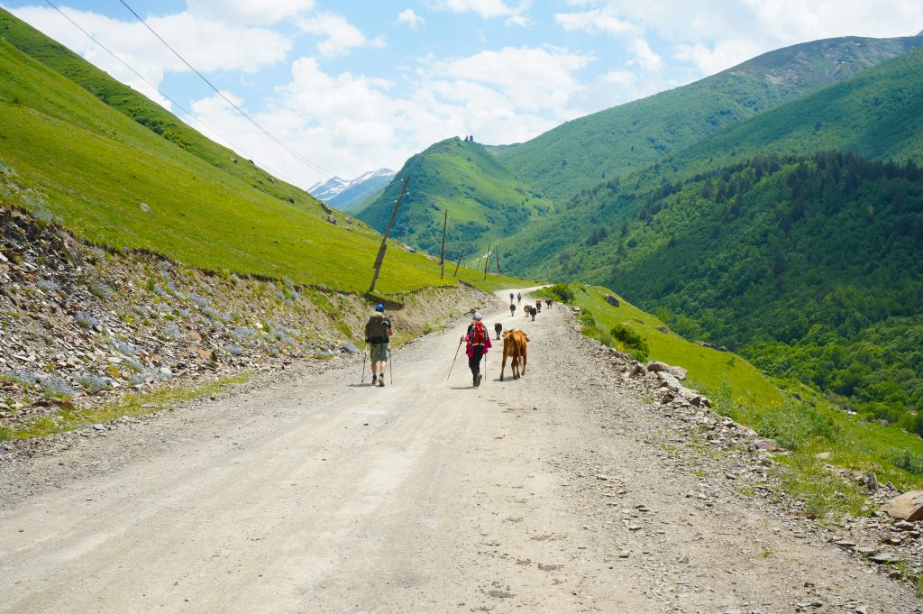 18.06.2022 Wanderung von Mestia nach Uschguli über 4 Tage. Am Ortsausgang von Mestia habe ich drei Leute aus Köln getroffen, die den gleichen Weg vor hatten. Teilweise sind wir zusammen gelaufen, haben aber immer Abends zusammen gesessen. Es waren insgesamt so ca. 30 Leute unterwegs, die auch diese 4 Etappen bestreiten. So trifft man immer die gleichen Leute auf den Weg und in den Gasthäusern. Sehr international, USA, Brasilien, Mexiko, Polen, Russland, Frankreich, Türkei, England, Israel und Deutsche natürlich.