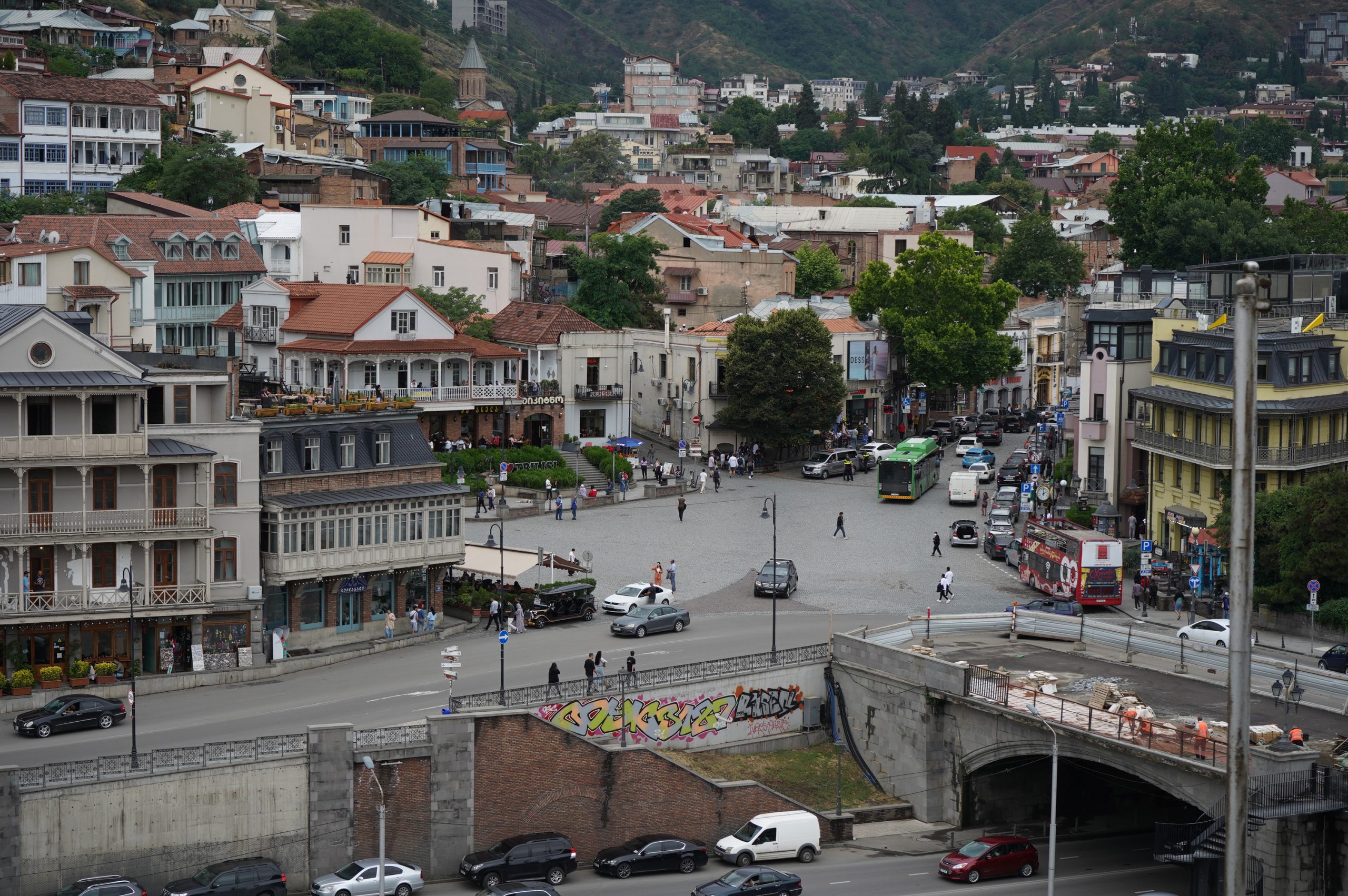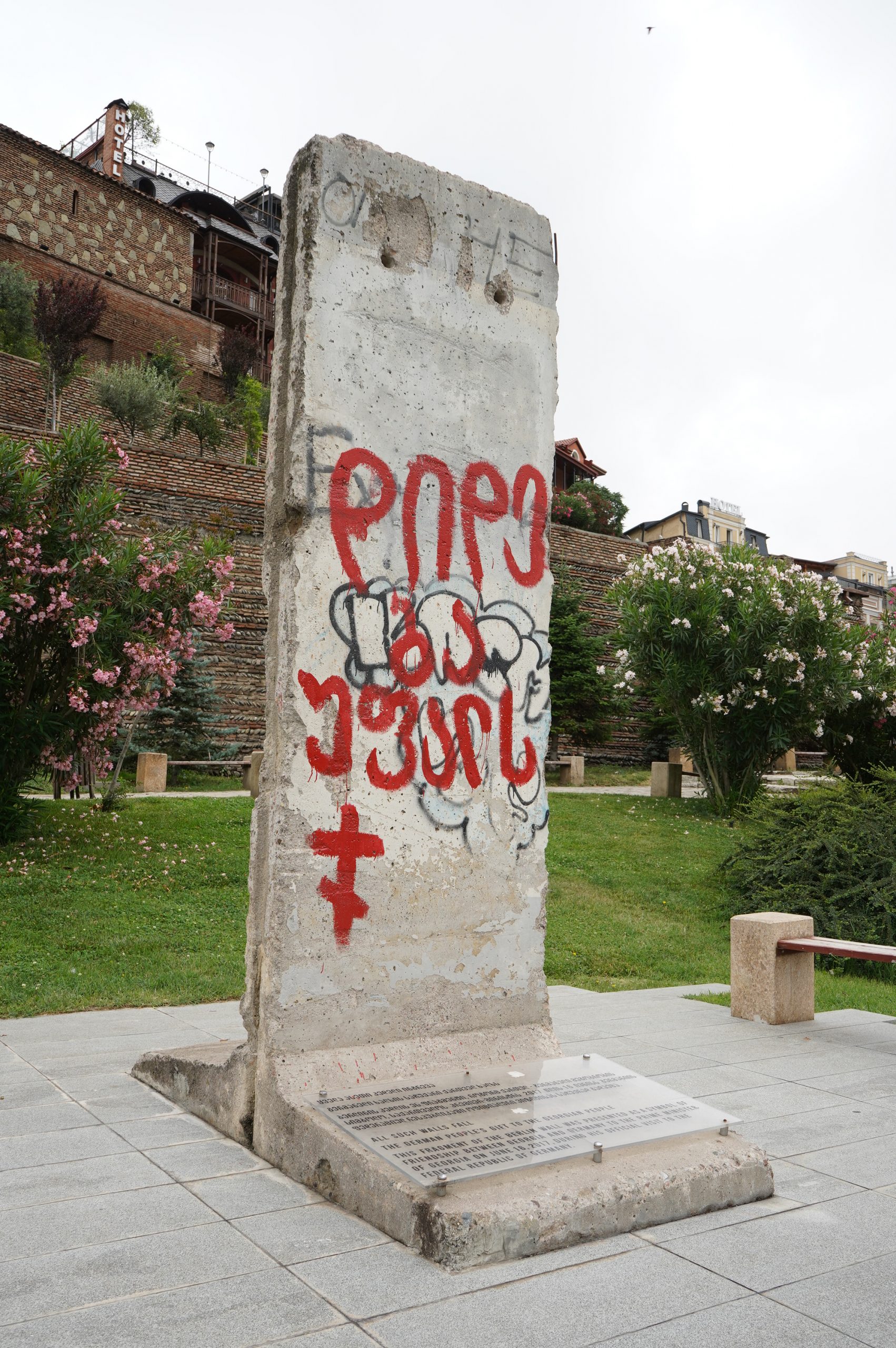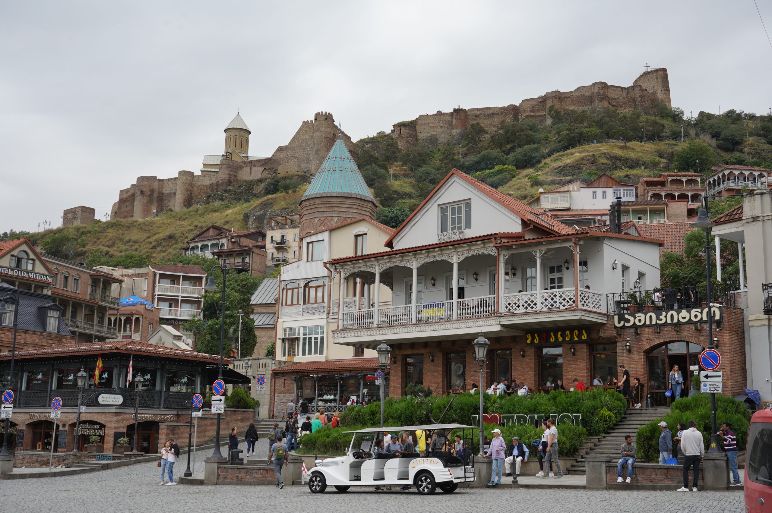 Parkplatz Public service hallSameba-Kathedrale…neu erbaut. Kirchen haben anscheinend einen höhen Stellenwert…auch was Finanzierung betrifftFriedensbrückeFriedensbrücke mit Rike ParkRike -Konzert und AusstellungshallenState Palace of Ceremonies (Präsidentenpalast), auch wieder ein wenig Reichstag-Architektur eingeflossenhier alles von oben, von der FestungsruineDüfte werden hier angebotenes lohnt sich immer auch mal nach oben zu sehen. Kneipenstraße ErekleFreiheitsplatzsehr kontrastreich die Stadt…nicht nur in der ArchitekturZwischen Freiheitsplatz und Lado Asatiani- Straßedeutsche Schule im Hintergrundso soll es irgendwann überall aussehen in den vielen Gassen der Altstadt…viele KirchenBäderviertel und Moscheeam Meidanalte StadtmauerParlamentBlick von der Metechi-Kirche Meidan-Platzauch ein Stück Berliner Mauer findet man in Tbilisidas Gebäude des Biltmore-Hotel sticht immer herauszur Statue „Mutter Georgiens“von der Statue sowie von der Festung hat man schöne Blicke über die Stadtvom Meidan Flussabwärtsauf der Festungkurzer Abstecher in den botanischen Garten( gleich hinter der Festung)…Schnappschuss eines HochzeitsflugesMoscheeLiebeswünscheein Minibecher frisch gepresster Saft kostet 5 €…der hat mich erwischt Chronik von Georgien oberhalb der Tbilisi Talsperre…es gibt natürlich auch das neuere Tbilisi, Blocks aus Sowjetzeitgenau da unten ist der Strand, wo ich meinen Stellplatz finden werden