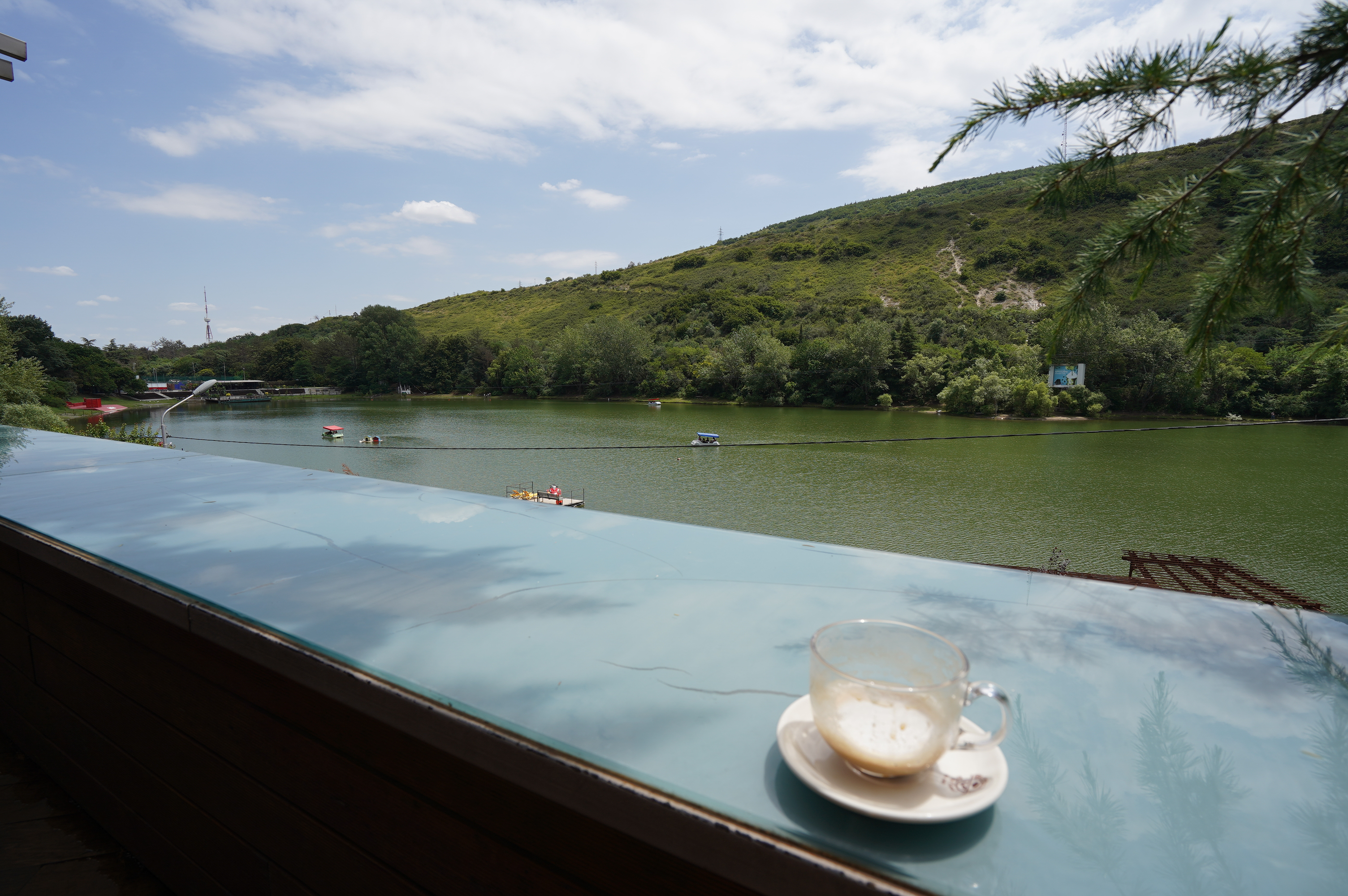 schlechter Cappuccino am SeeSpaziergang oberhalb des Sees mit schönen Blick über das neue und reiche Viertel von Tbilisi.erinnert eher an NewYork der 60ziger Jahredie sogenannten Axistürmeeinen alten Block findet man da aber auch nochwenn man nicht so weit weg schaut, findet man eine interessante Tierwelt.