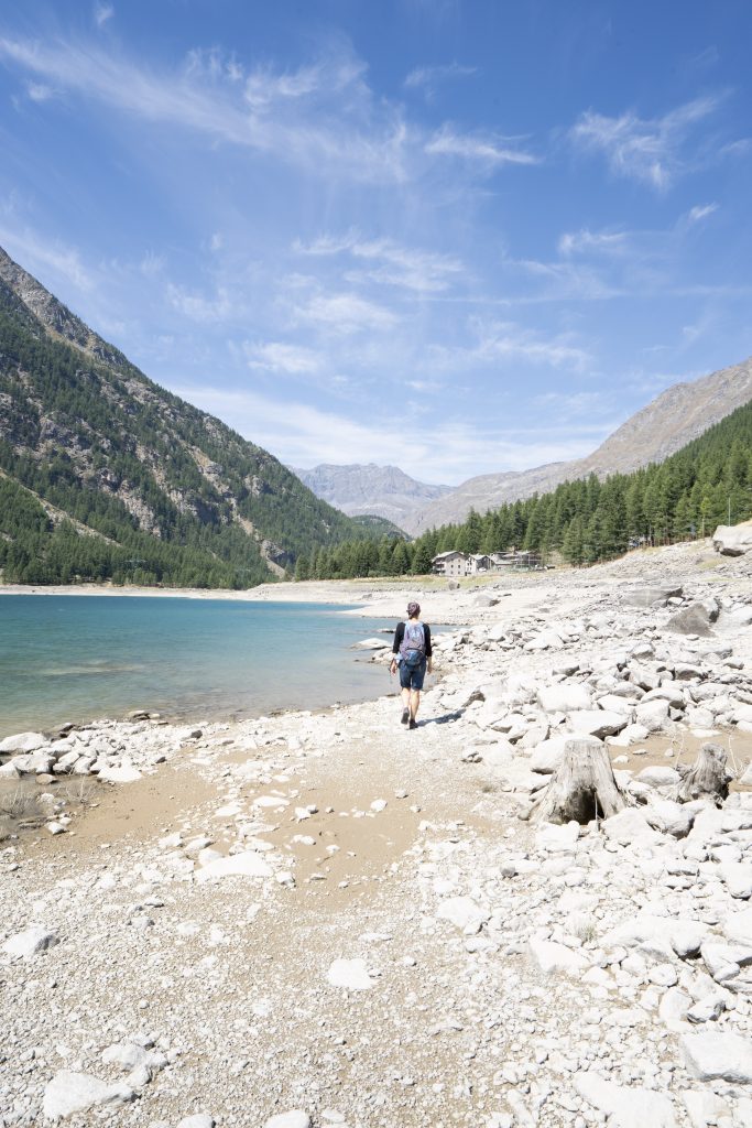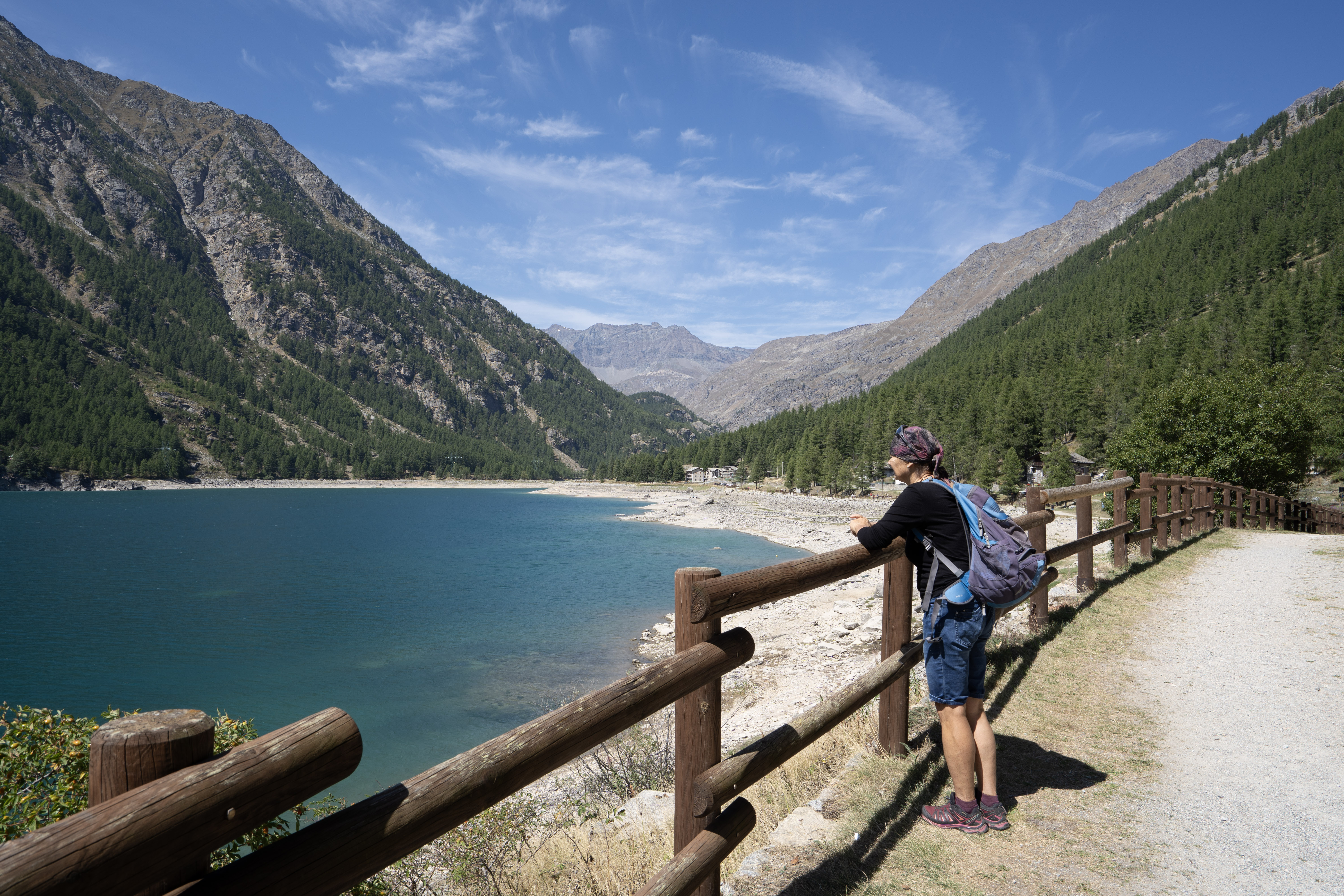 26.08.2025 Spaziergang um den Logo di Ceresole. Eigentlich wollten wir das Auto in Noasca parken und von dort so ca. 10 Tage auf den GTA wandern, zumindest bis Susa. Eine Regenfront nähert sich jedoch und wir wollen noch abwarten. Die Besitzer vom Campingplatz haben uns auch einen kostenlosen Parkplatz angeboten, im Falle wir laufen weiter. Zunächst wandern wir die Etappe von Neasca nach Ceresole (Tour 28 GTA), aber in anderer Richtung, weil wir morgens keinen Bus nach Neasca haben.