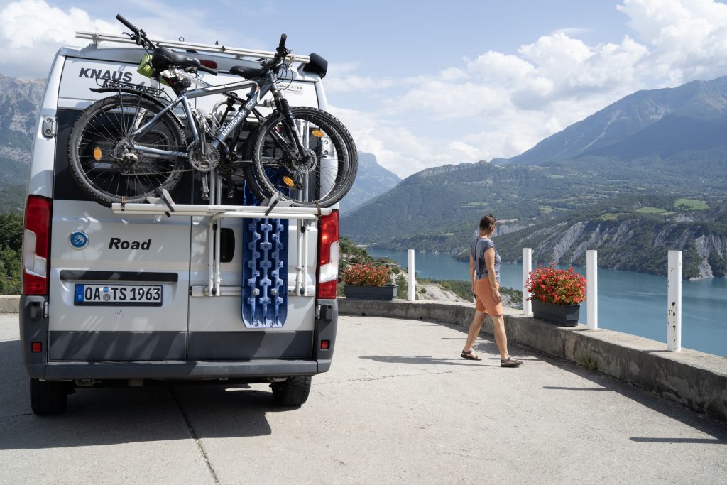 08.09.2025 Heut wollen wir nach Frankreich, der Maddalena-Pass ist nicht weit. Ziel ist der Stausee Lac de Serre-Ponçon, der die obere Durance staut. Wir lassen uns am Camping Municipal la Garenne nieder. Auch hier ist viel Platz.