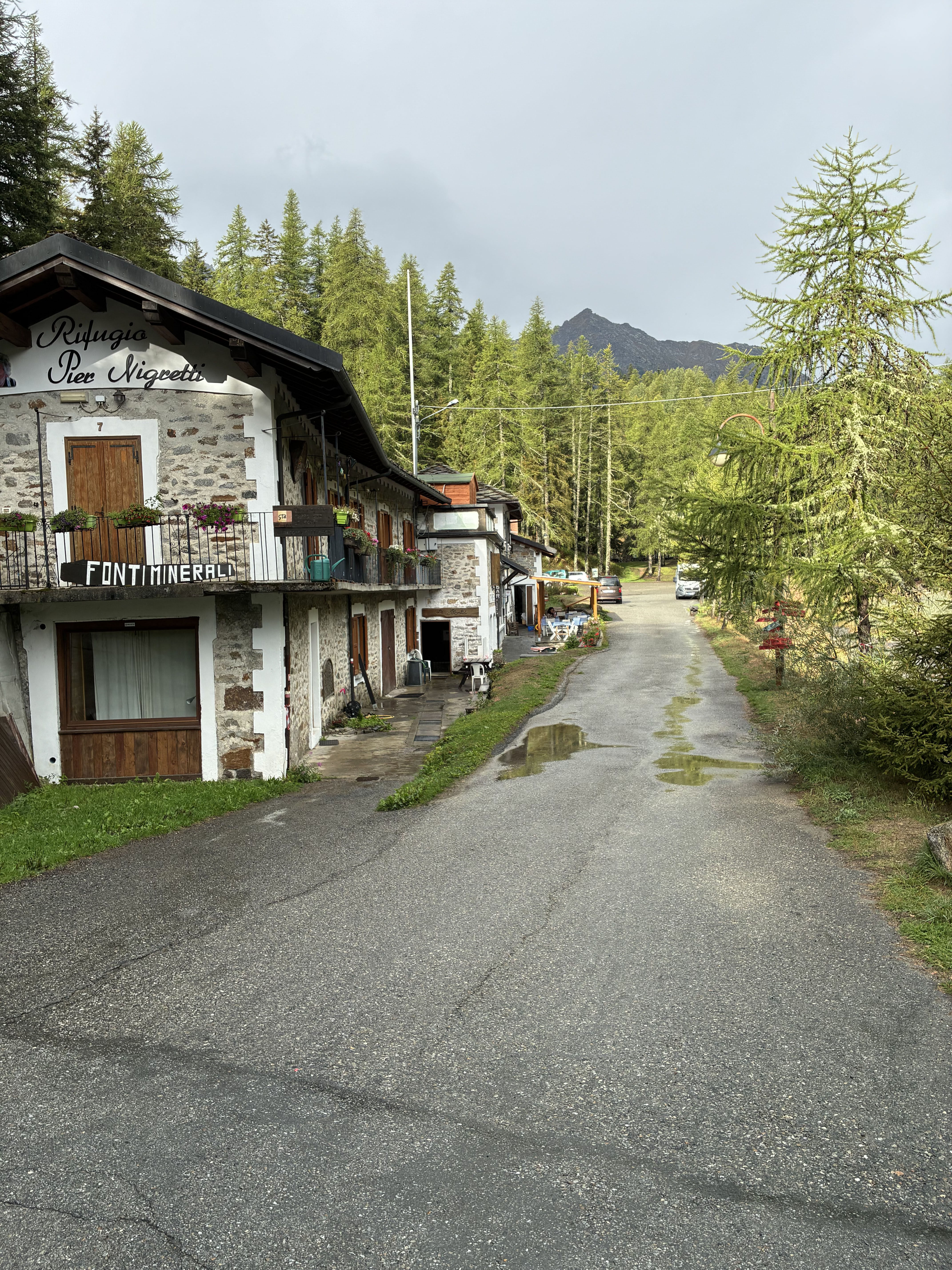 27.08.2025 Wanderung von Ceresole nach Neasca. Kurz vor Ende des Weges erwischt uns der Regen. Wenigsten kommt der eine Bus, der Nachmittags fährt, pünktlich und bringt uns zurück nach Ceresole. Mit der Regenfront ist es hier auf 1500m auch recht kalt geworden. Wir übernachten im Posta Tappa Borgata Fonti Minerali, obwohl unser Camper ganz in der Nähe steht. Wir hatte aber schon von Deutschland aus reserviert und angezahlt. Essen war gut, Zimmer kalt und feucht. Geschlafen haben wir aber trotzdem gut und lang.