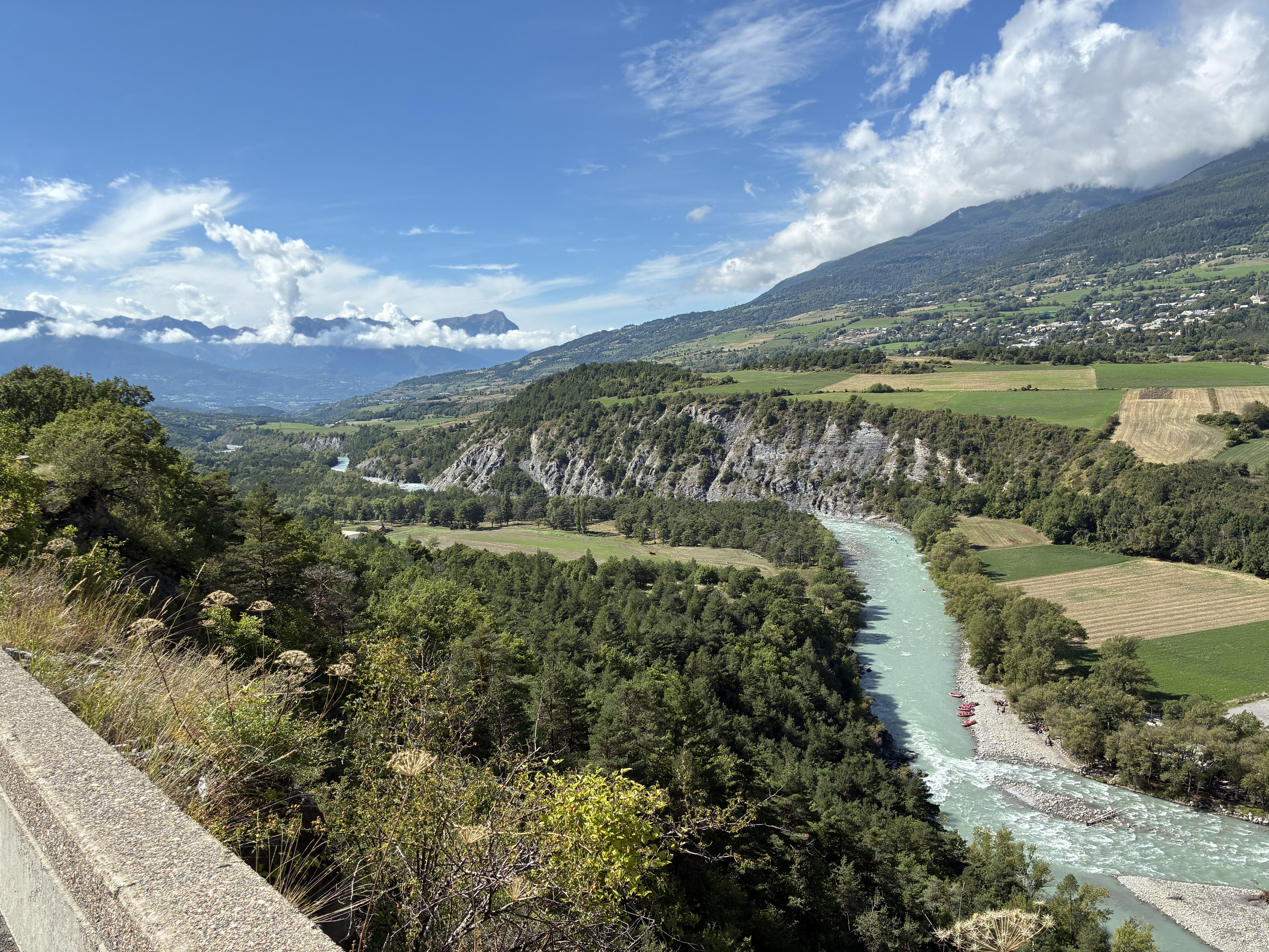 09.09.2025 Radtour entlang des Durance-Tal, immer mit Sicht in das Ecrins-Gebirge. Das Tal ist Tief eingeschnitten. Die erste Brücke nach ca.17km, bei Saint