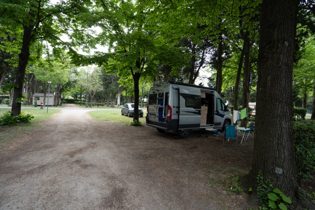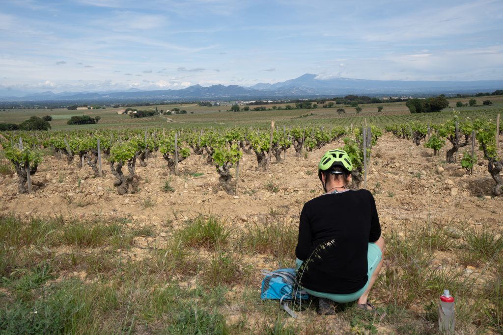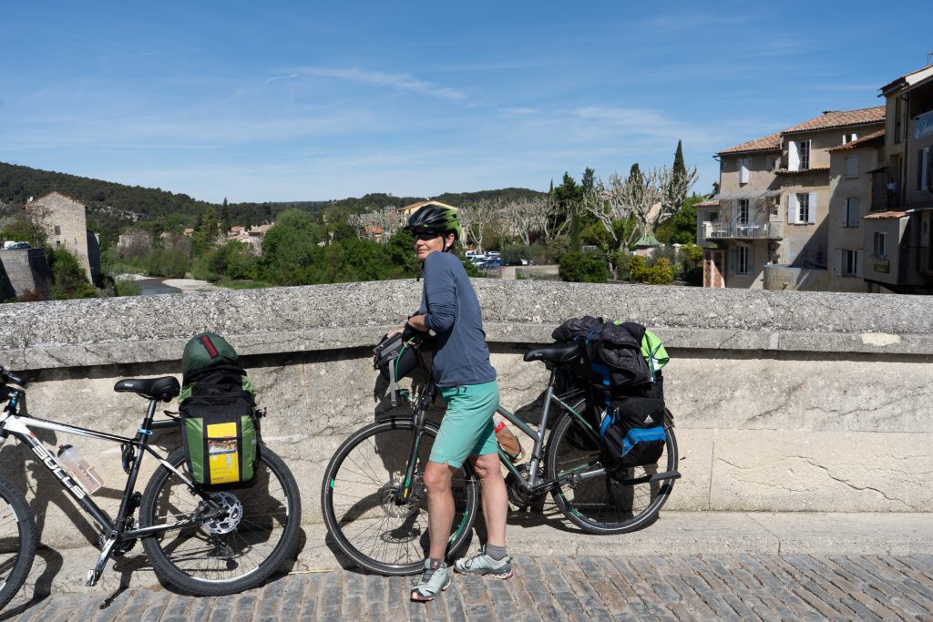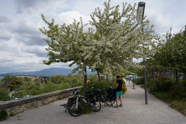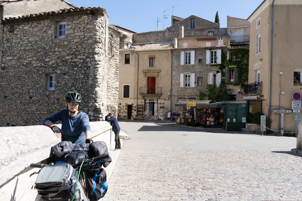 26.04.2023 Sechste Etappe von Vaison la Romaine nach Suze la Rousse, zurück zum Camper. Nur eine kurze Etappe durch flaches Weinanbaugebiet. Zunächst schauen wir uns noch etwas Vaison la Romaine an. Am gestrigen Abend hatten wir keine Lust mehr zurück in die Stadt zu radeln. Am Nachmittag fahren wir schon mit den Wohnmobil nach Avignon bzw. Villeneuve-lès-Avignon, denn dort ist unser Campingplatz für die nächsten vier Nächte, Camping les Avignon – la Laune. Sehr schöner Platz und sehr günstig (14€/Nacht)