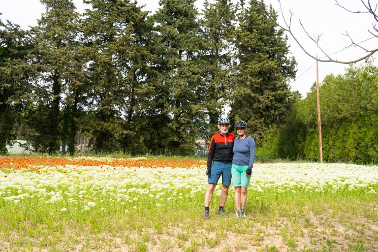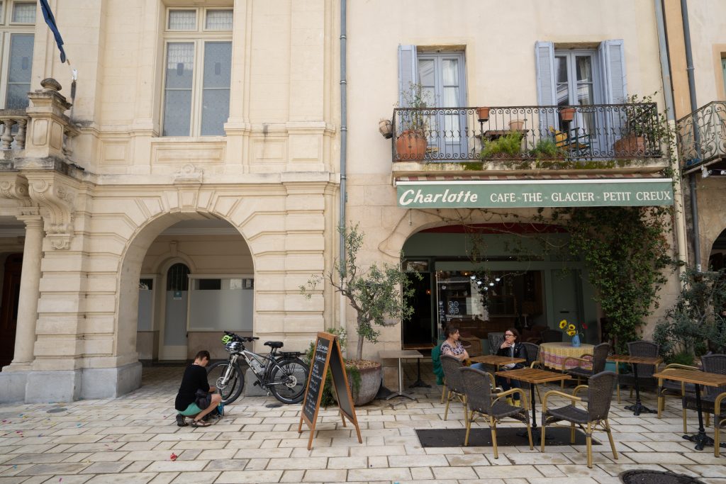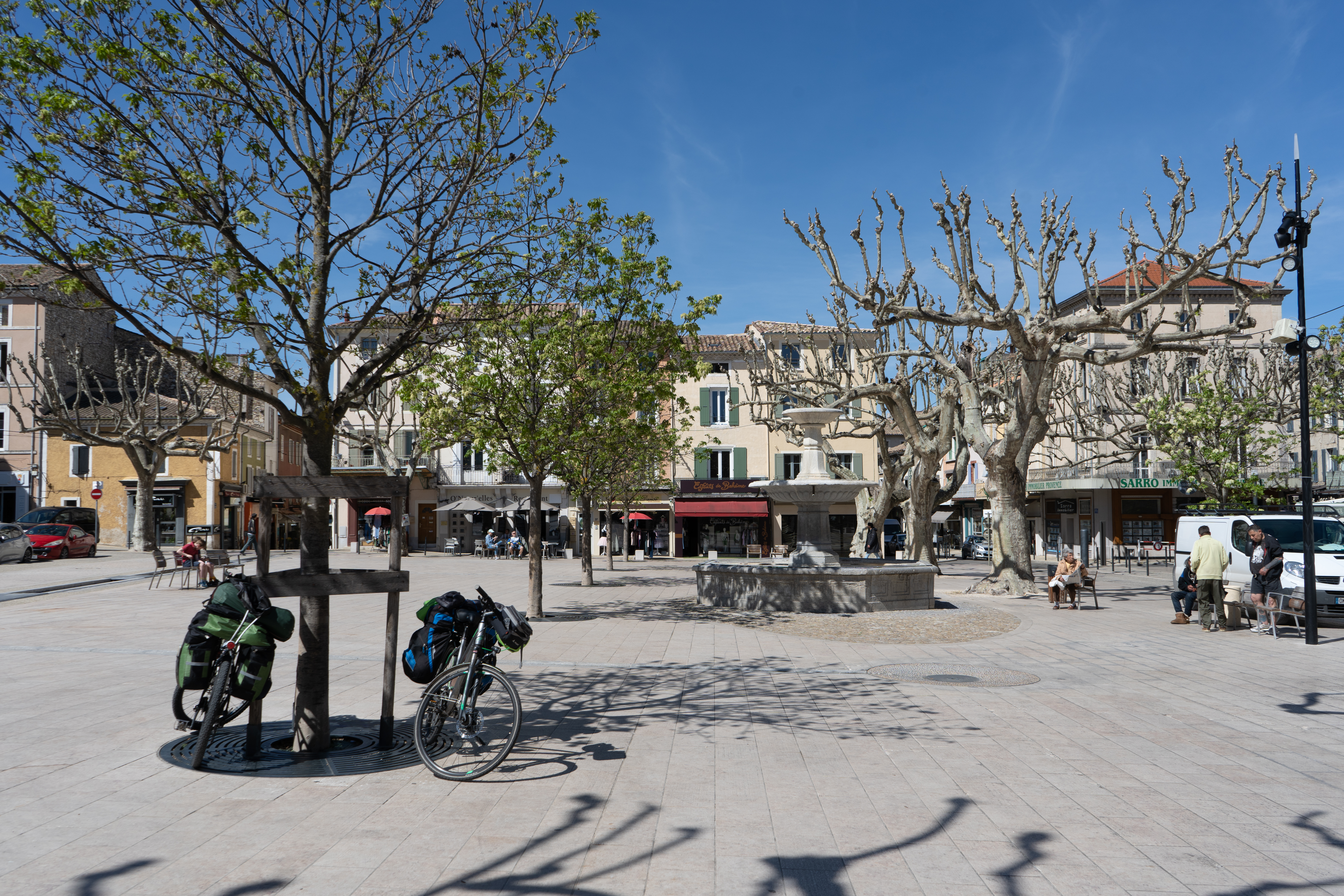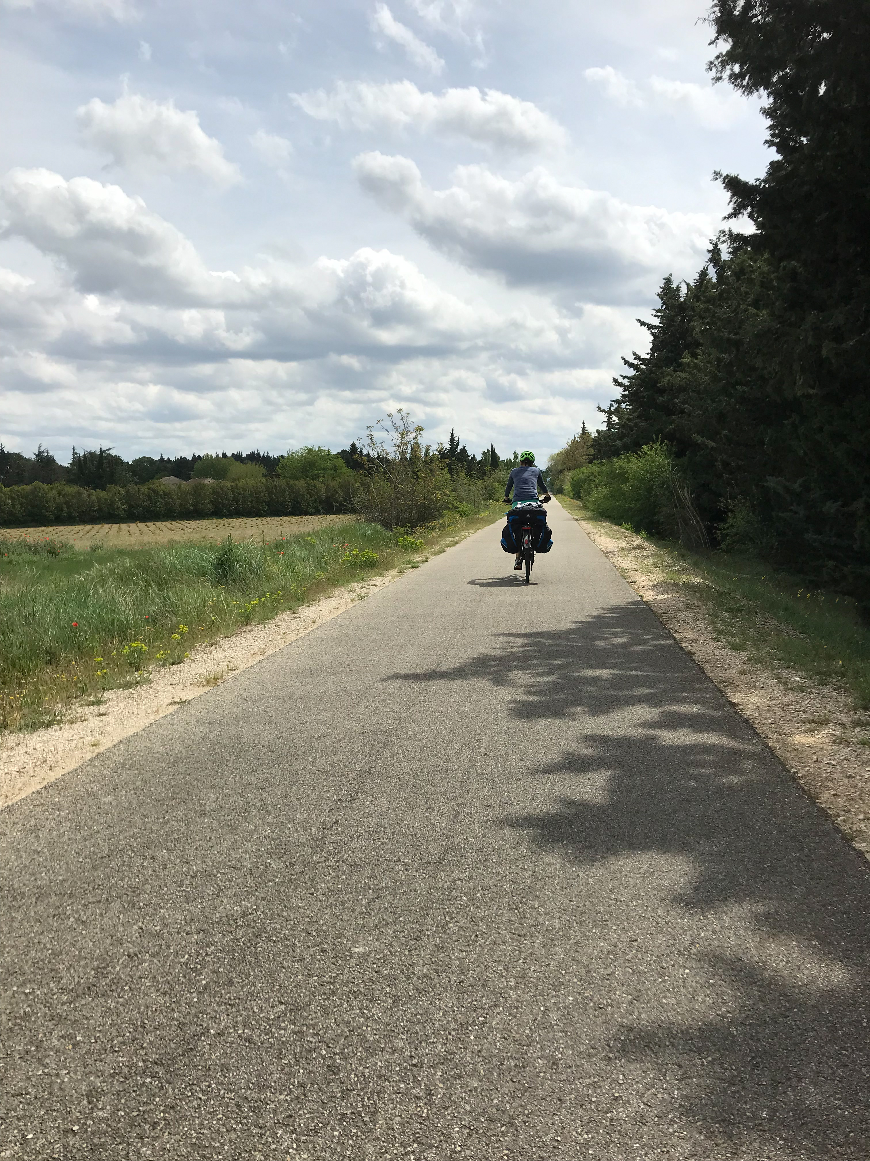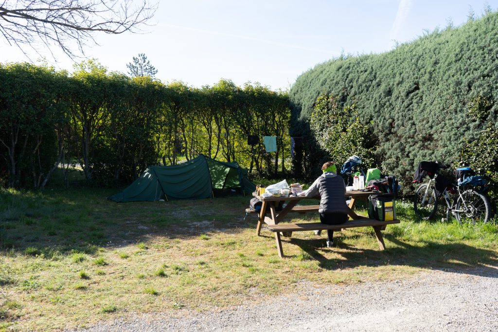 21.04.2023 Erste Etappe von Suze la Rousse über Carpentras, L’Isle-sur-la-Sorgue und Cavaillon nach Merindol. Unser Zelt haben wir am nahe gelegenen Campingplatz AIRE NATURELLE DES ARGILES aufgestellt. Es war schon spät und der Hunger groß und so sind wir gleich mit den Rädern ins Dorf zum Essen gefahren. Im „le Bigre“ haben wir gut gesessen und gegessen und natürlich Wein verkostet. Zurück zum Zelt ging es dann schon im Dunkeln.