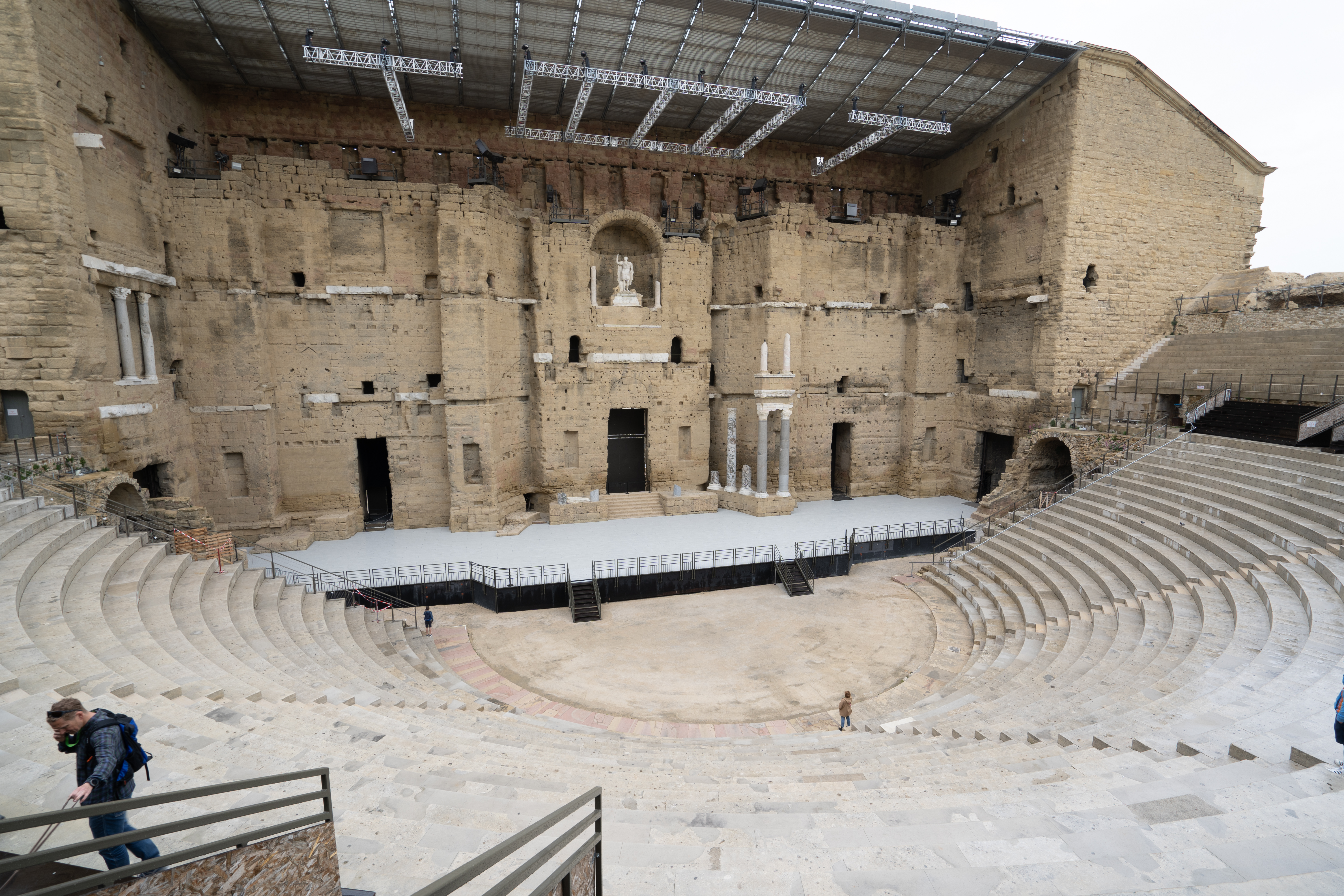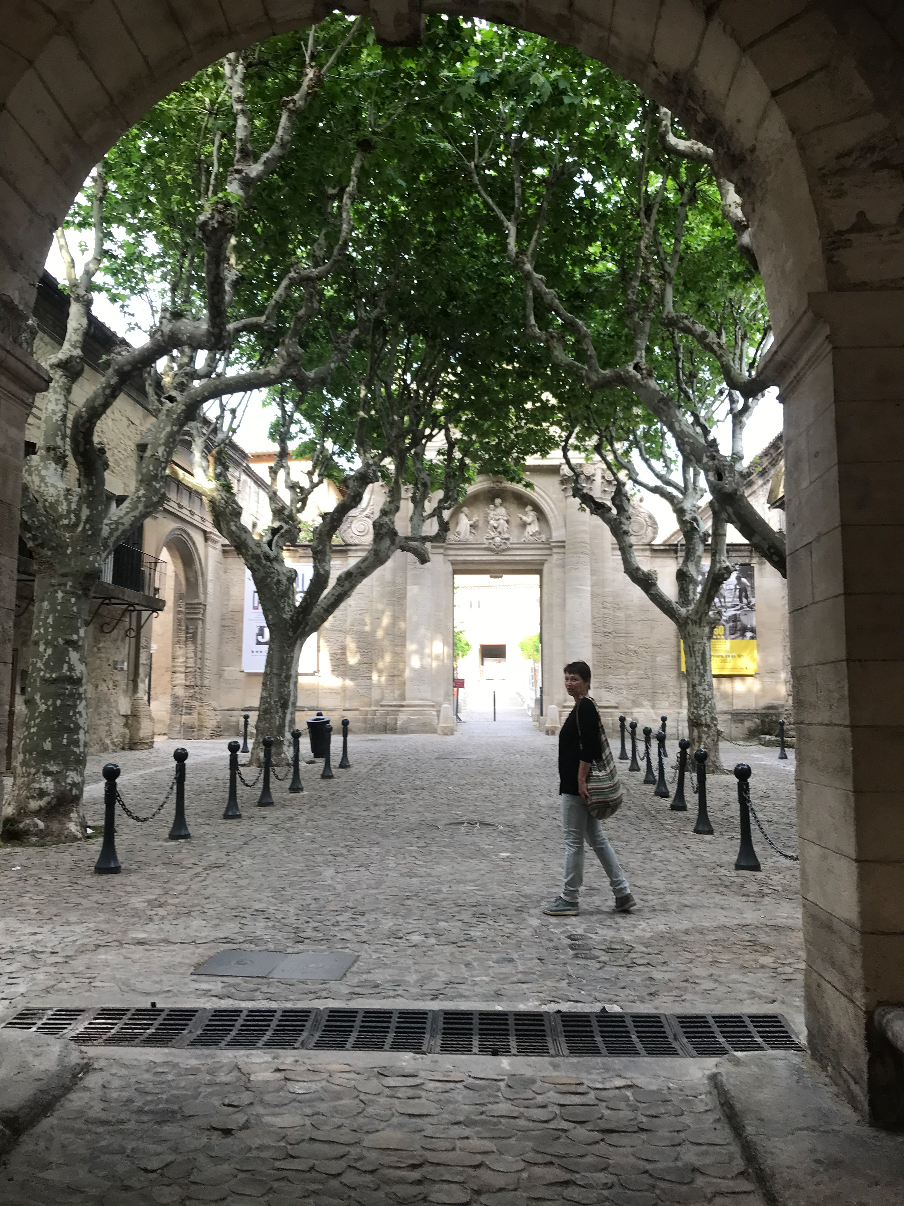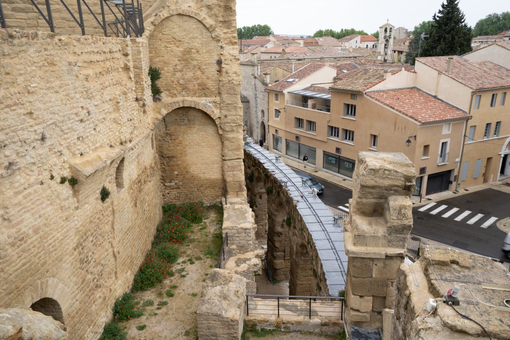 29.04.2023 Radtour nach Orange. Der Hinweg auf der Westseite der Rhone über Roquemaure, zurück auf der Ostseite über Châteauneuf-du-Pape. In Châteauneuf-du-Pape, dem Weinmekka an der Rhone, haben wir uns dann ein gutes Tröpfchen für unseren letzten Abend gekauft. Die Hauptattraktionen von Orange sind das antike Theater und der Arc de Triomphe.