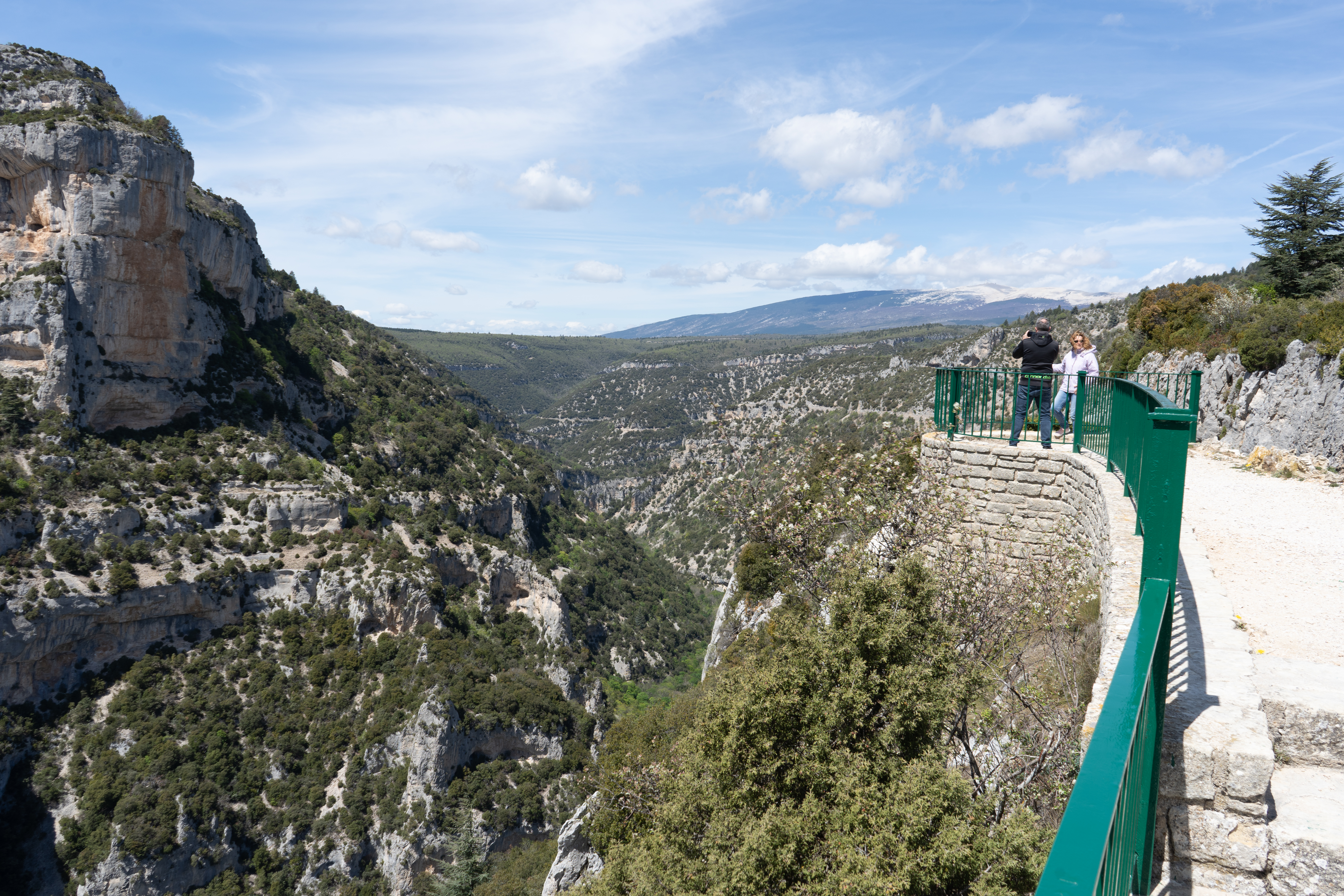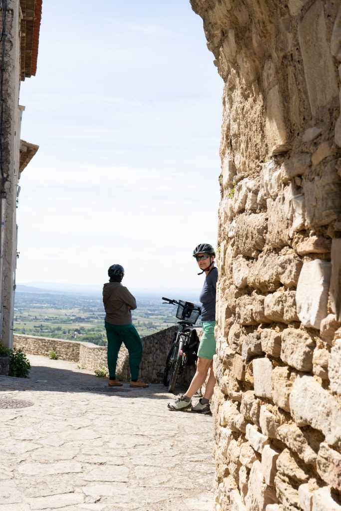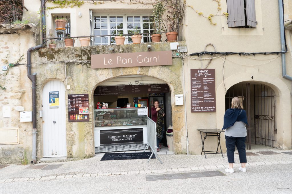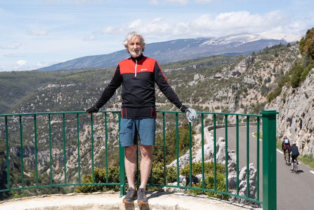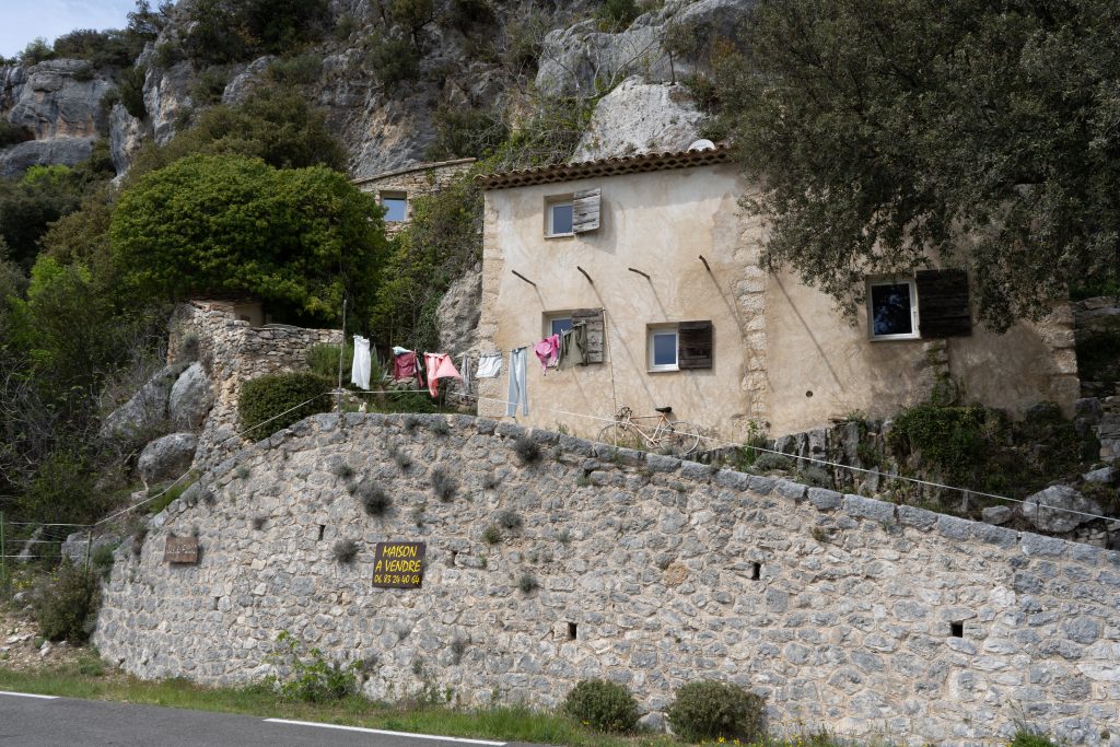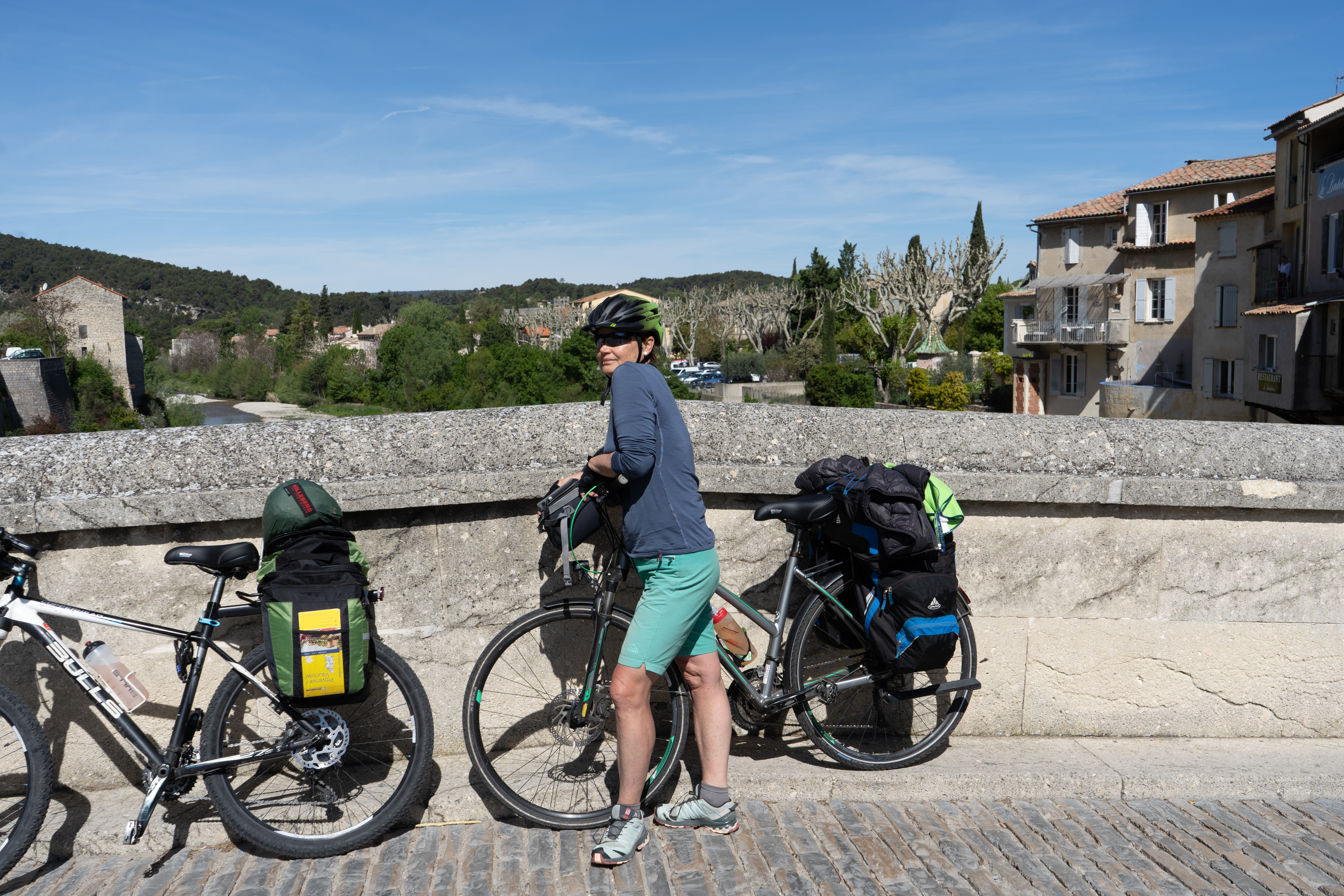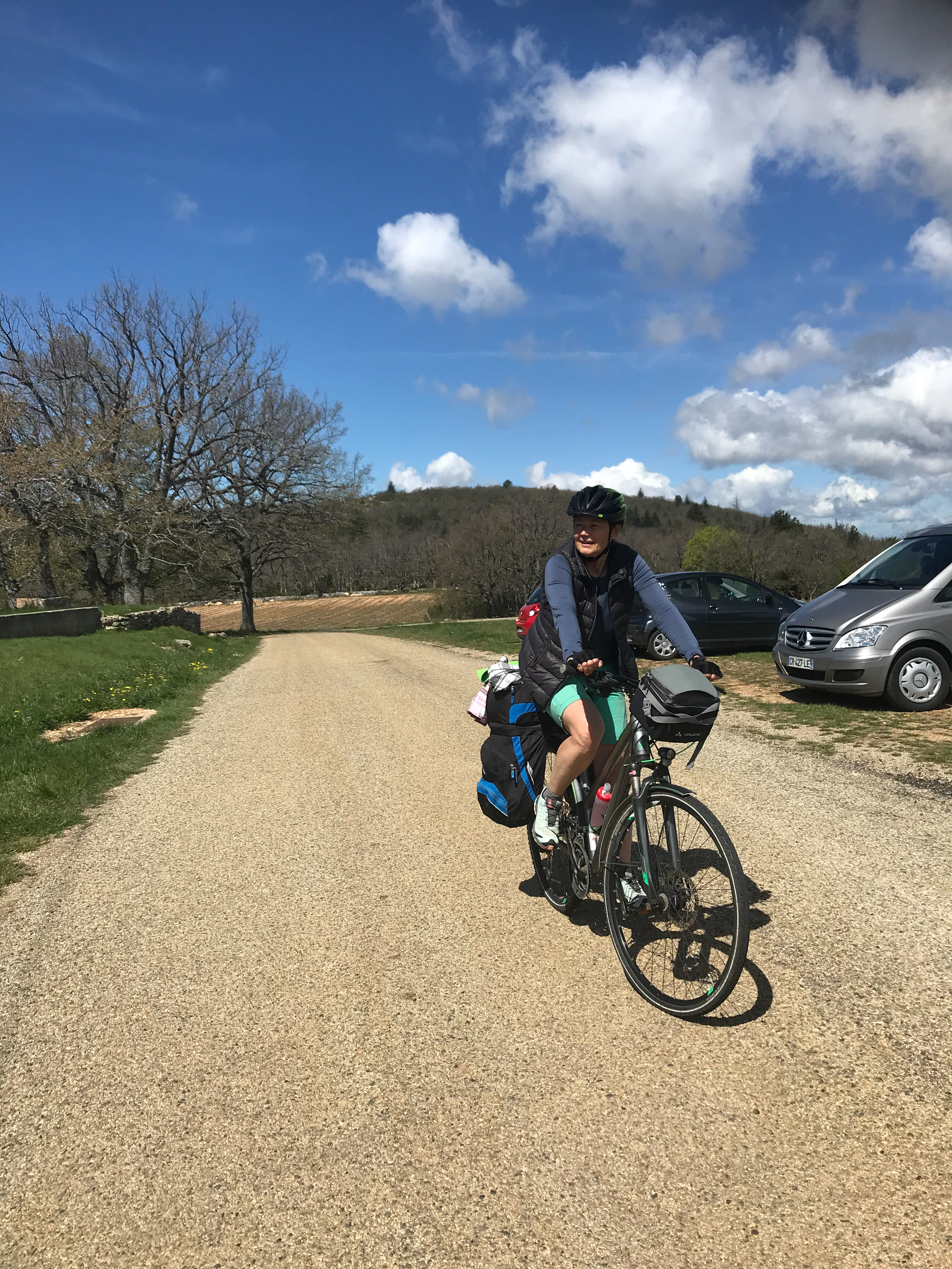 24.04.2023 vierte Etappe von Murs über Monieux, durch die Nesque- Schlucht nach Villes sur Auzon. Wahrscheinlich die schönste Etappe. Zunächst über den Col de la Ligne. Mittagspause im beschaulichen Örtchen Monieux. Es war Montag, das einzige Restaurant war geschlossen, so konnten wir uns auf deren Terrasse gemütlich machen. Später ging es dann fast nur noch abwärts durch die Schlucht. Den Mont Ventoux hatten wir oft im Blick. Wieder haben wir uns auf den Municipal Campingplatz niedergelassen.