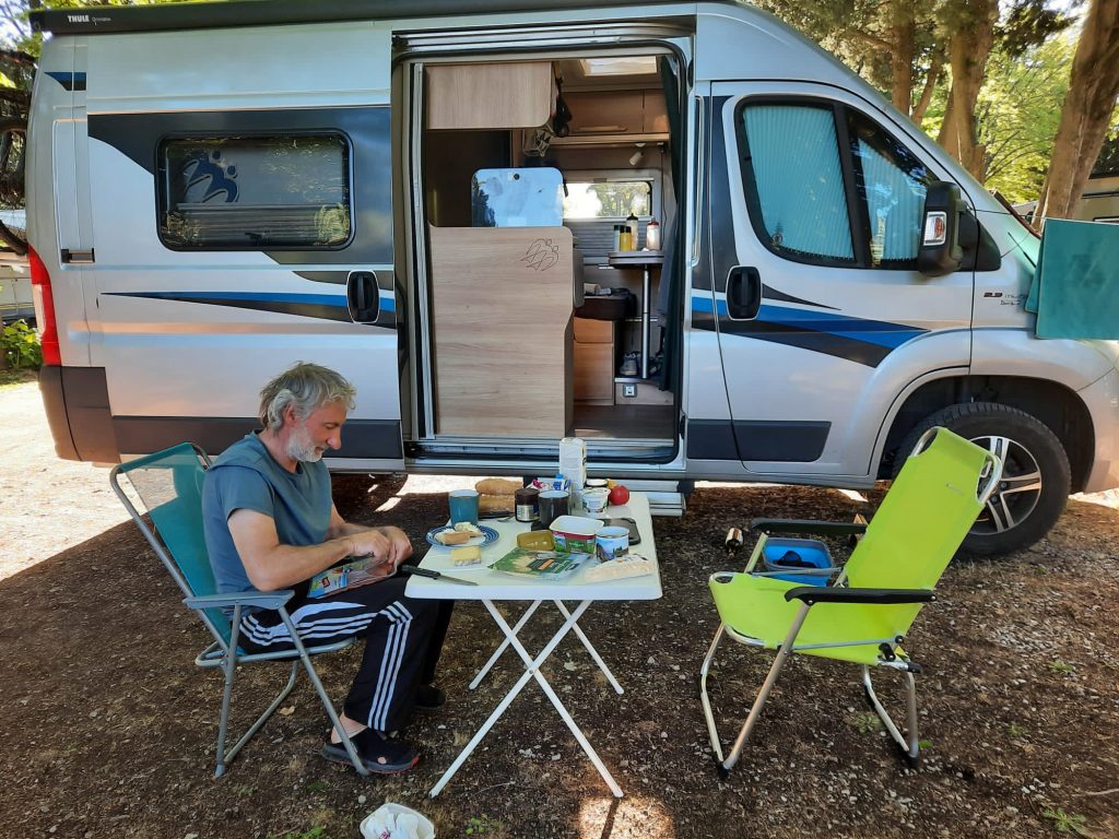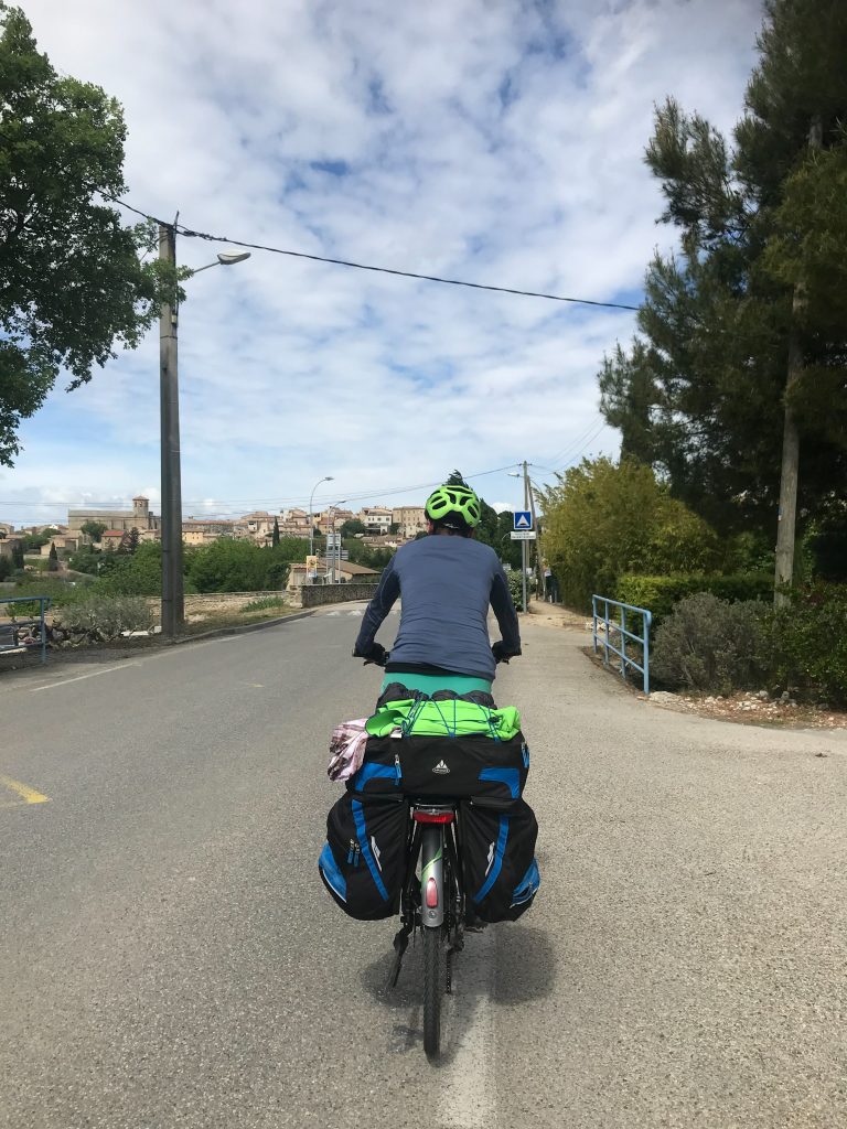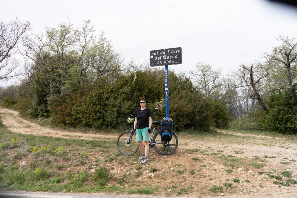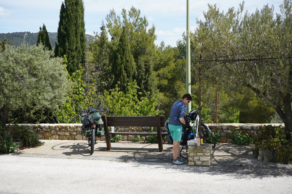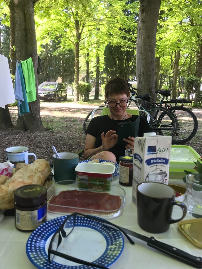 22.04.2023 zweite Etappe von Merindol über Lourmarin, Saint-Martin-de-la-Brasque, Vitrolles-en-Luberon und Cereste nach Apt. Heut waren wir besonders kaputt. Anstrengende Bergetappe. Im Supermarkt in Apt noch Bier und Baguette gekauft und dann den letzten Anstieg zum Campingplatz „Le Luberon“ gemeistert.