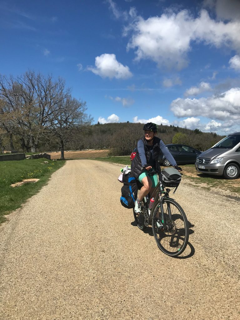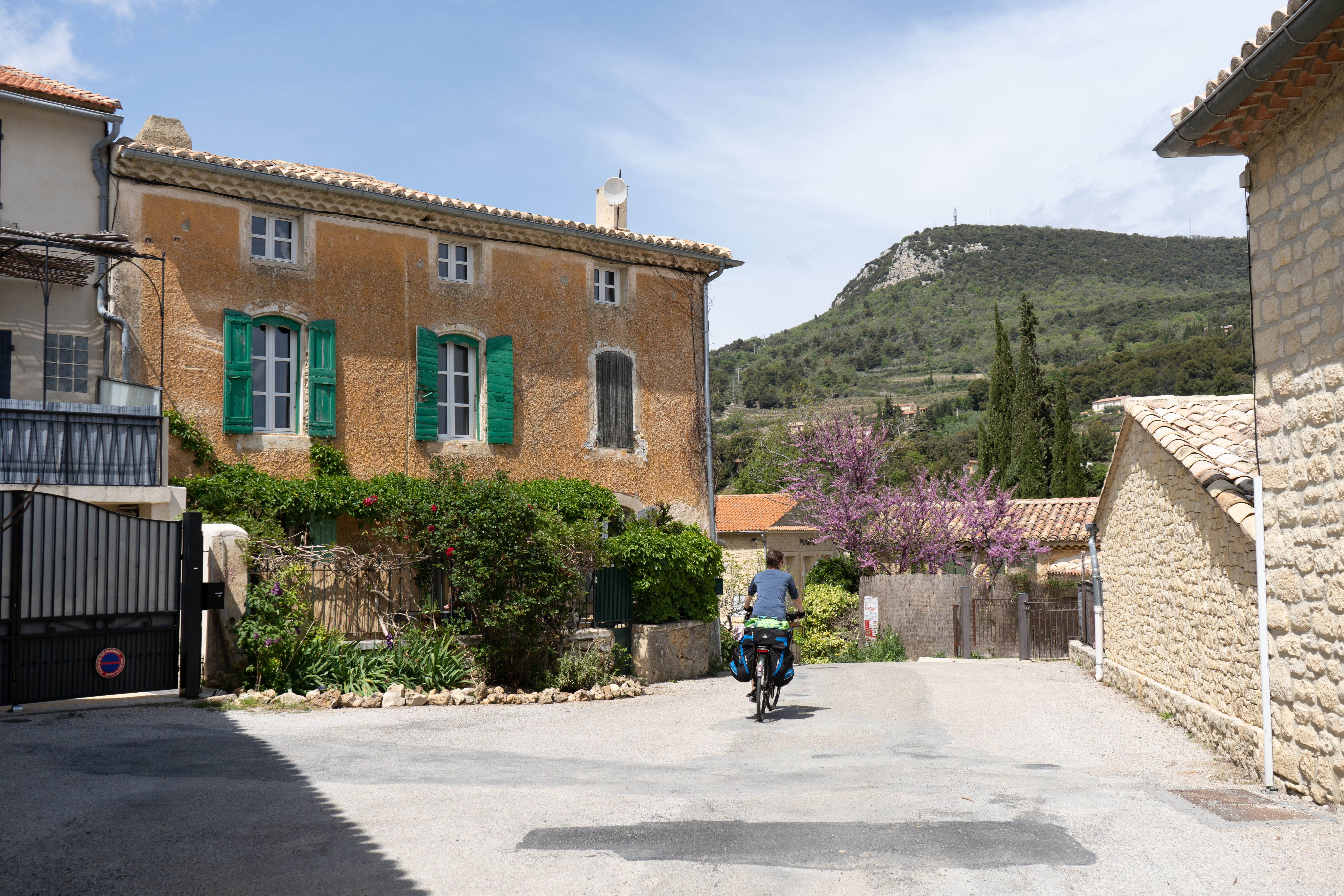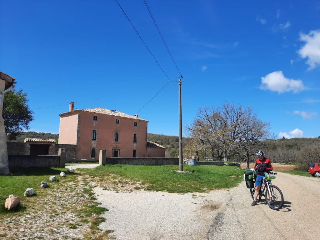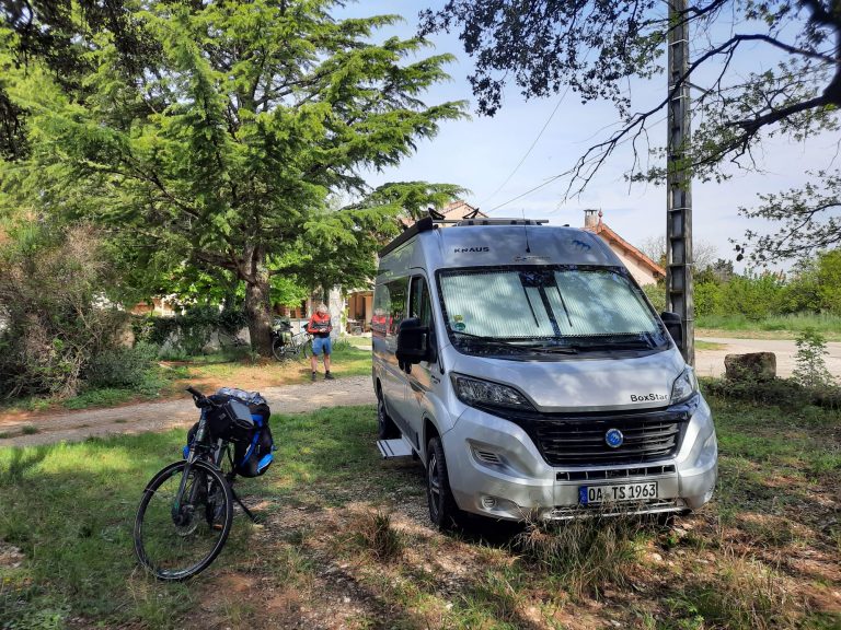 20.04.2023 Ankunft in Suze la Rousse am Gästehaus Lo Rastelié. Der Besitzer Jean-Marc spricht deutsch, hat einige Zeit im Erzgebirge gewohnt, war so nett und hat uns einen Stellplatz vor seinem Haus für eine Woche überlassen. Dort können wir den Camper sorglos für die 6Tage unserer Radtour zurücklassen.