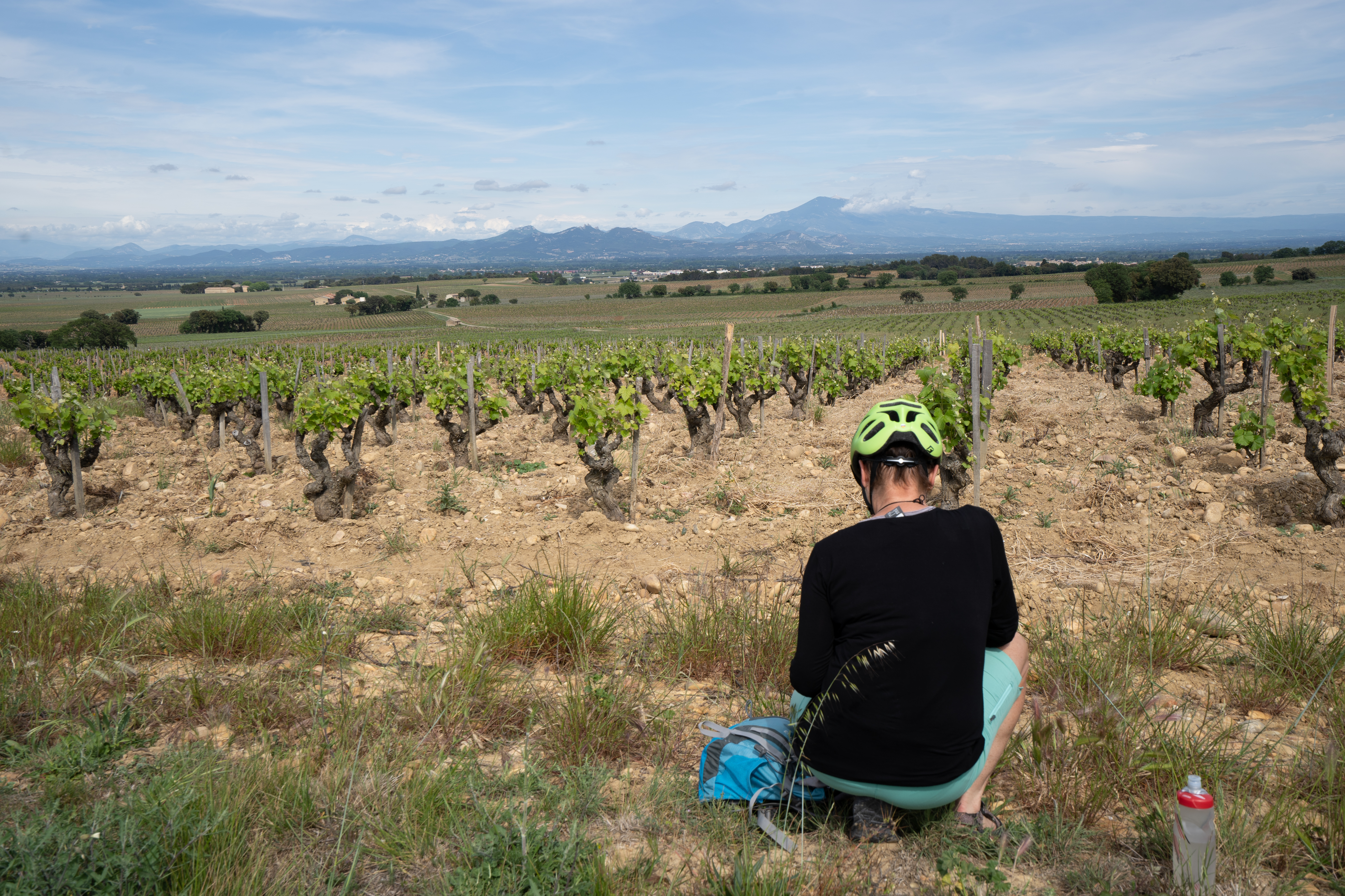25.04.2023 fünfte Etappe von Villes sur Auzon über Mazan, le Barroux, Suzette und Beaumes nach Vaison la Romaine. Noch mal ein Anstieg nach Suzette, bevor es in die Niederungen geht. Eine schöne Etappe durch Weinfelder entlang des kleinen Gebirges Dentelles de Montmirail. In Camping Voconce haben wir einen schönen ruhigen Campingplatz gefunden, etwa 4km südlich von Vaison la Romaine.