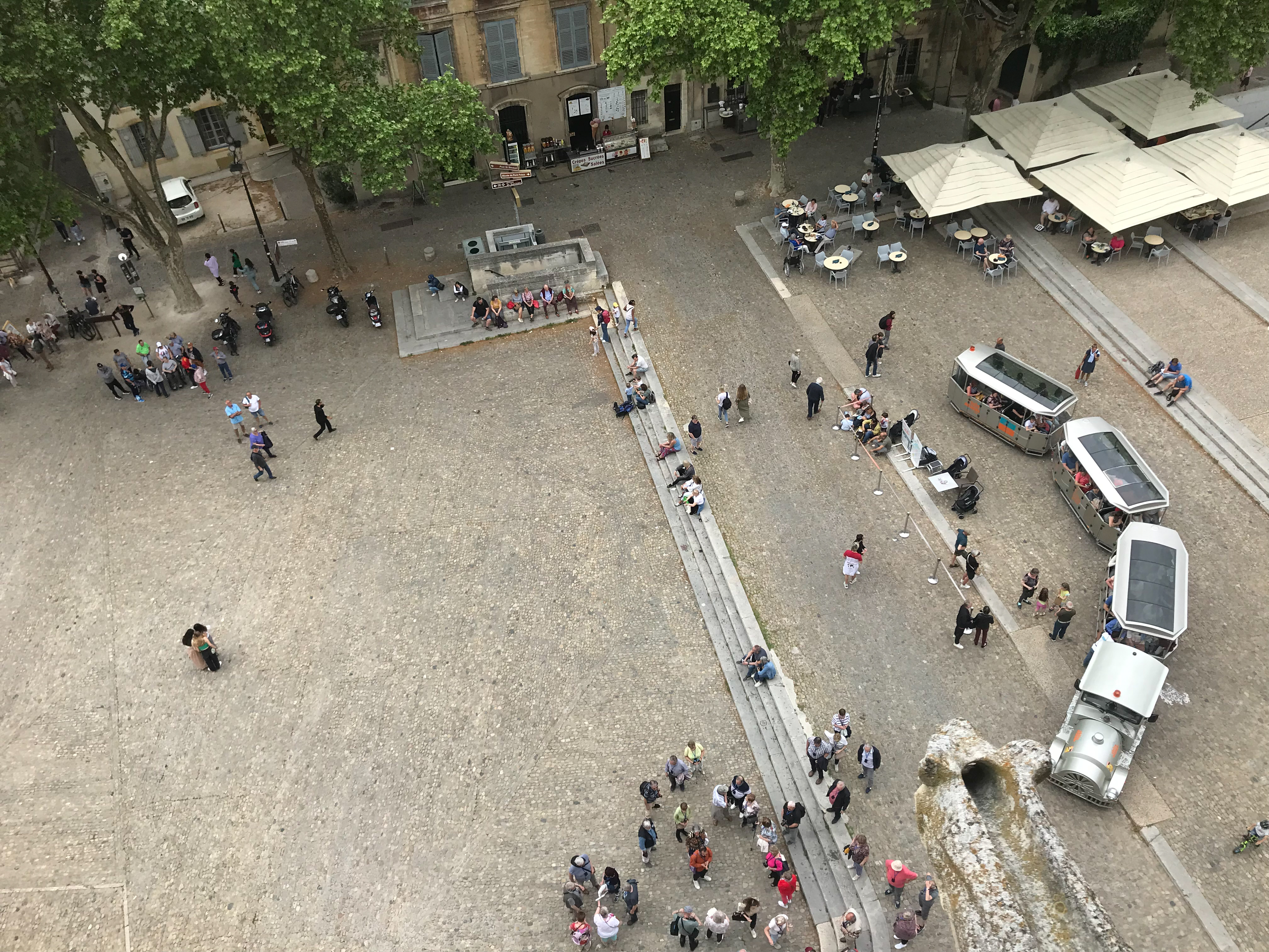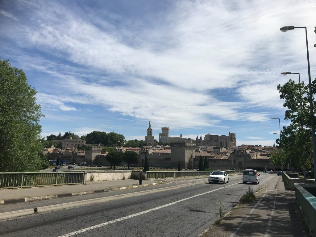 27.04.2023 Zu Fuß nach Avignon, zurück mit den Bus. Haben uns den Papstpalast angesehen und durch die Straßen und Gassen geschlendert. Abends dann nochmal mit den Rad nach Avignon. Wollten eigentlich die Abendstimmung auf der Brücke Saint Benezet genießen, aber hier gibt es Öffnungszeiten, war also geschlossen ab 18:00h. So haben wir den Papstpalast nochmal in der Abendsonne gesehen und ein Glas Wein getrunken.