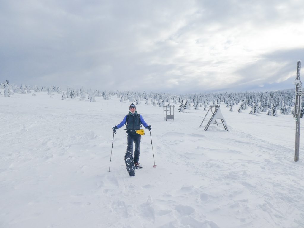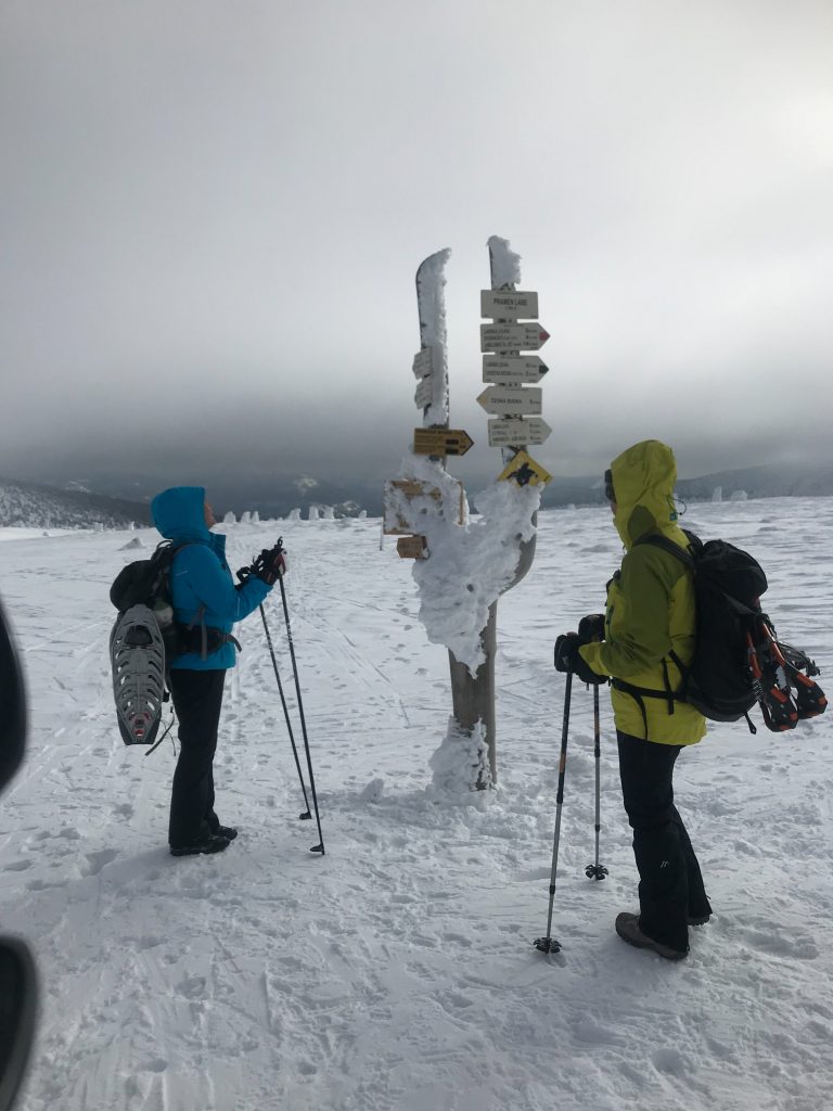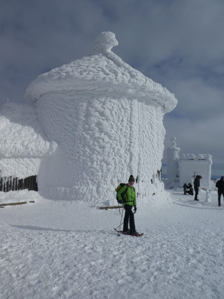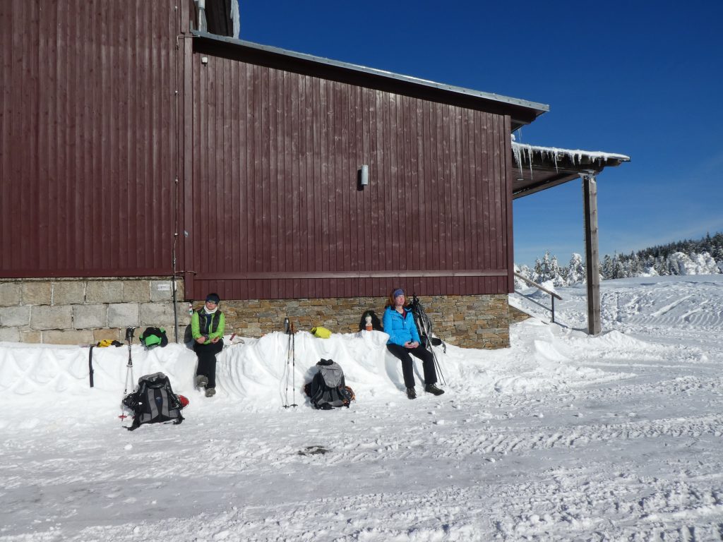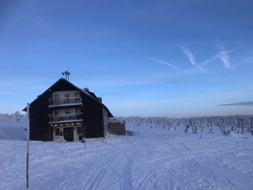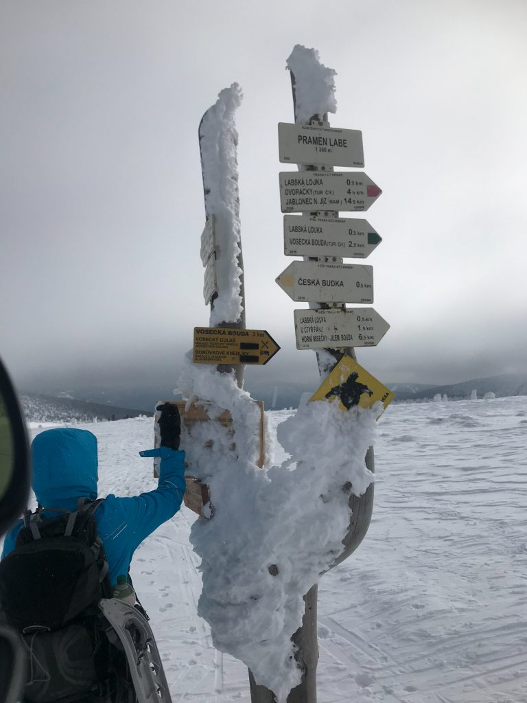 8.02.2023 Heut machen wir eine kleine Rundwanderung und kommen zurück zur Martinsbaude. Zunächst geht es zum Hohen Rad, dessen Gipfel wir um paar Meter verfehlen, nördlich anschließend kommen wir zu den Schneegruben mit einer Sendestation des polnischen Fernsehens. Bei Nebel und etwas Wind war es zeitweise sehr unangenehm kalt. Nun geht es vorbei an der Elbquelle zur Elbfallbaude, wo wir unsere Mittagspause einlegen. Von hier sind wir nach einer Stunde am frühen Nachmittag zurück in der Martinsbaude. Zeit für ein Bier und ausgiebigen Mittagsschlaf.