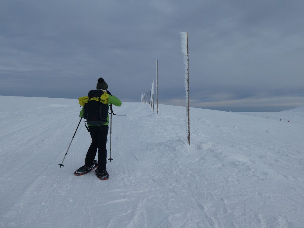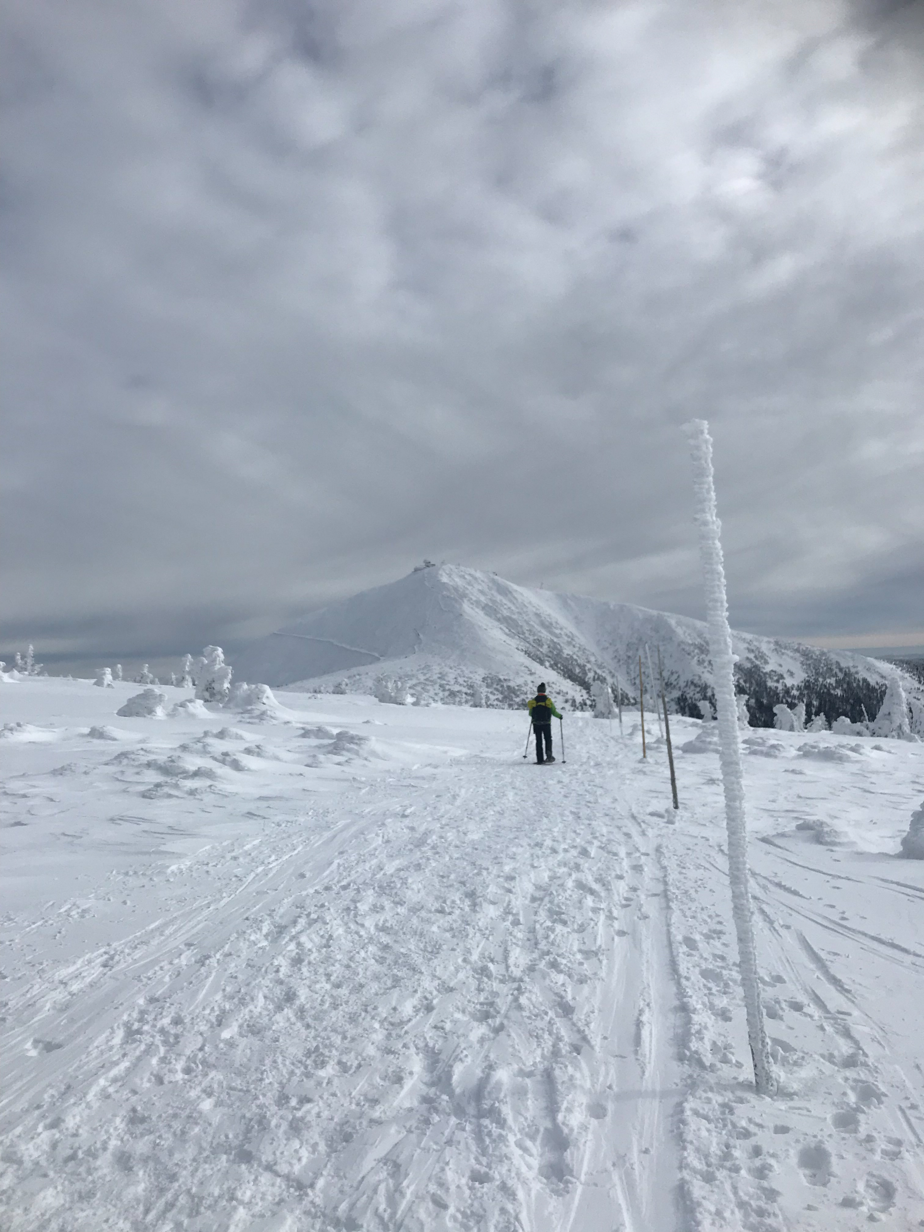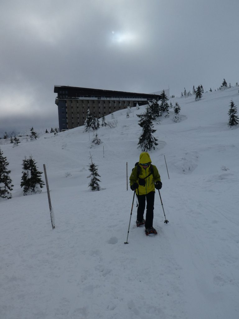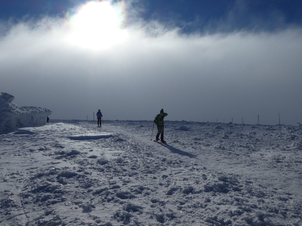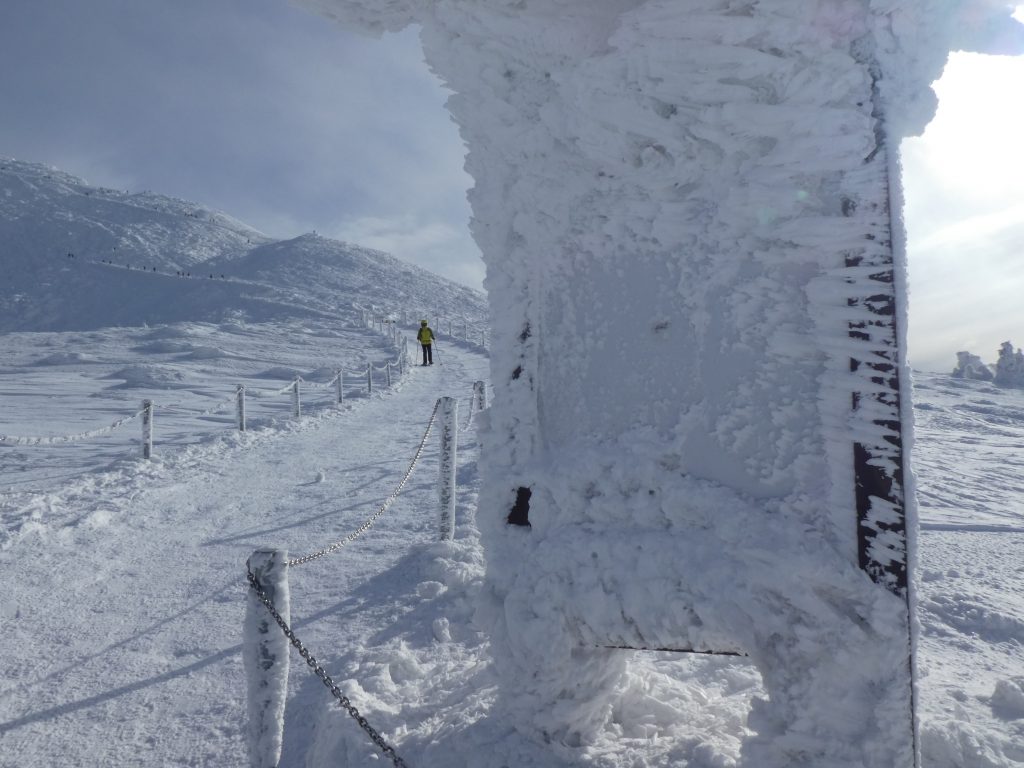 8.02.2023 Heut machen wir eine kleine Rundwanderung und kommen zurück zur Martinsbaude. Zunächst geht es zum Hohen Rad, dessen Gipfel wir um paar Meter verfehlen, nördlich anschließend kommen wir zu den Schneegruben mit einer Sendestation des polnischen Fernsehens. Bei Nebel und etwas Wind war es zeitweise sehr unangenehm kalt. Nun geht es vorbei an der Elbquelle zur Elbfallbaude, wo wir unsere Mittagspause einlegen. Von hier sind wir nach einer Stunde am frühen Nachmittag zurück in der Martinsbaude. Zeit für ein Bier und ausgiebigen Mittagsschlaf.