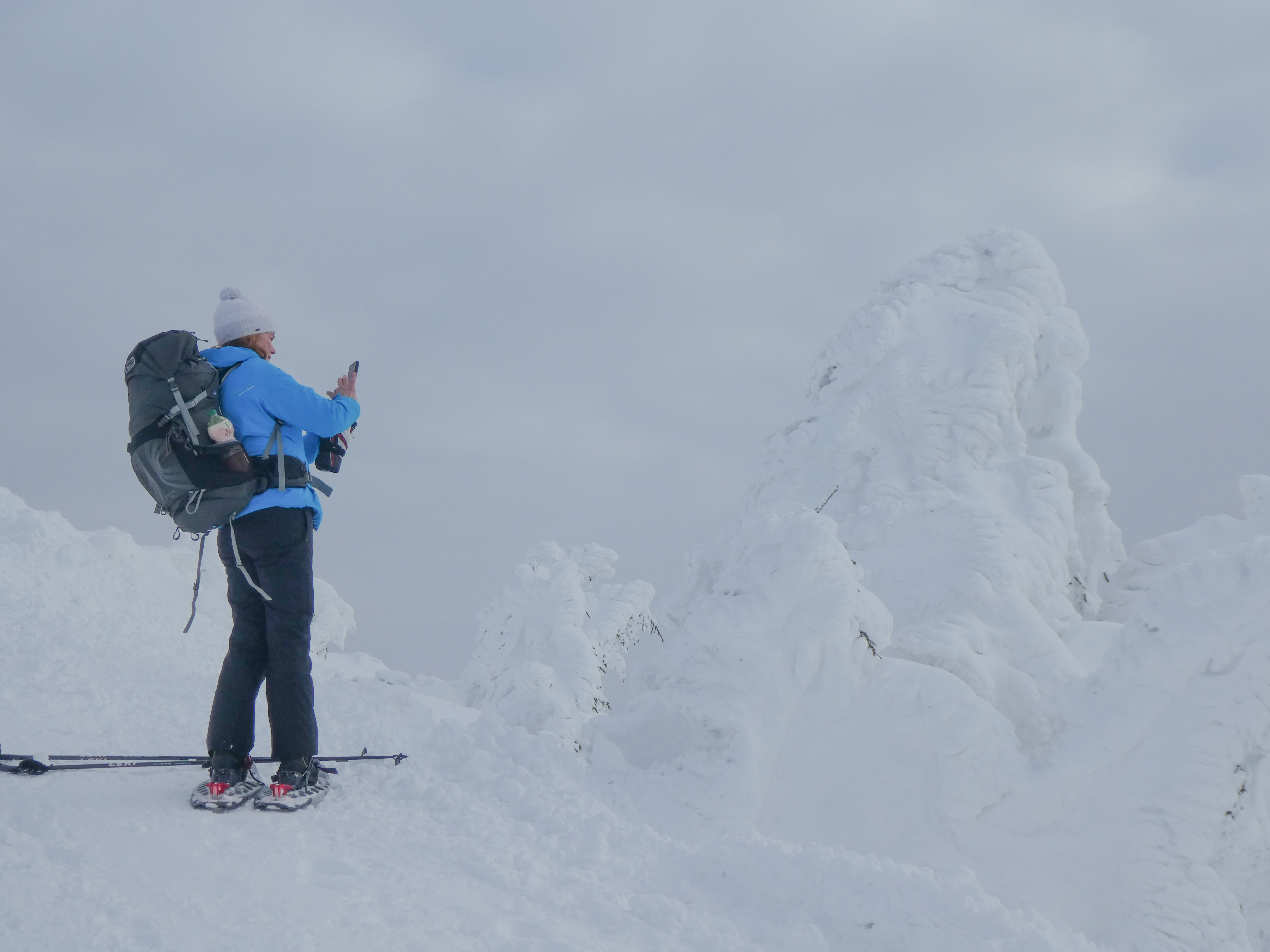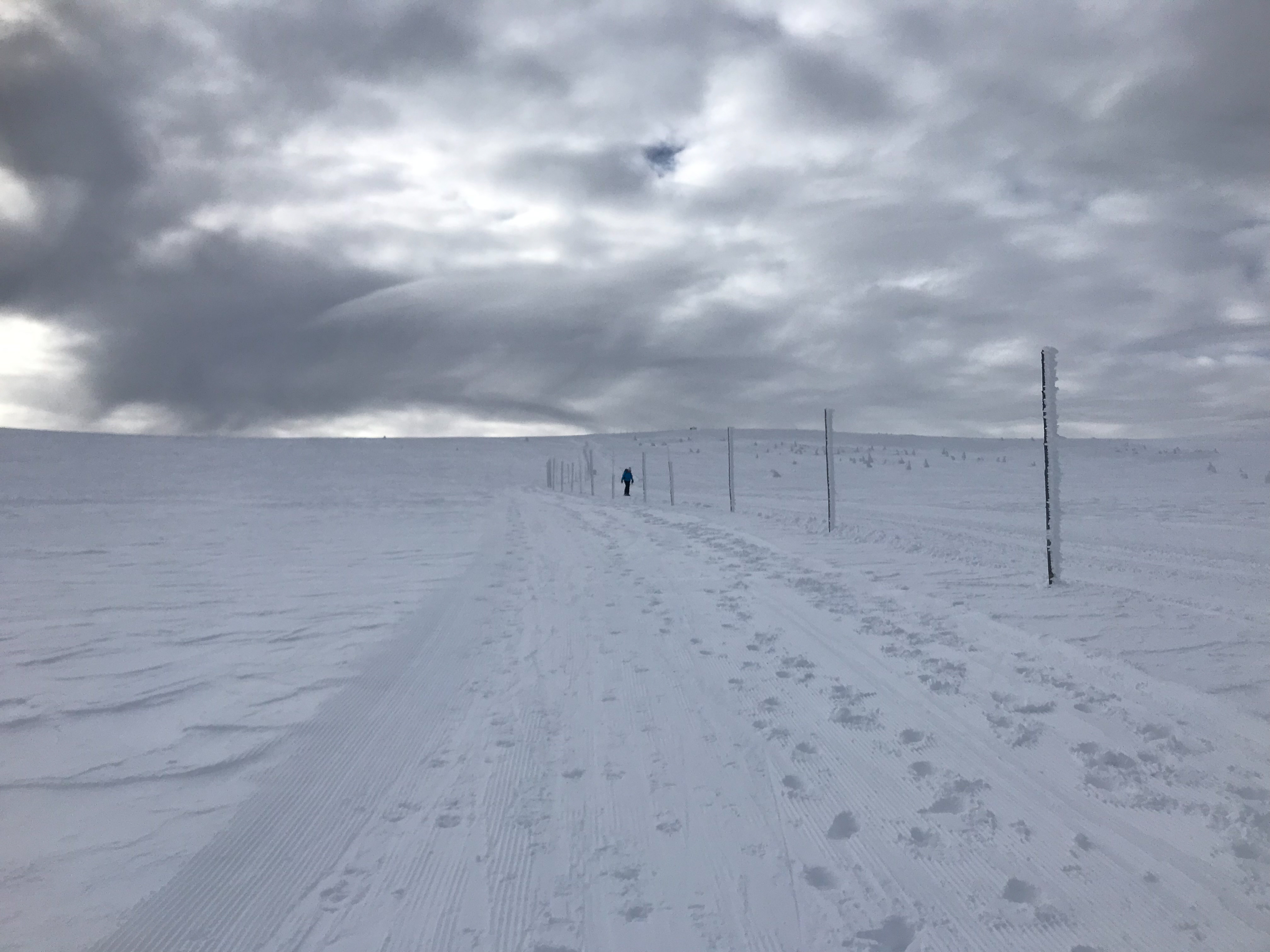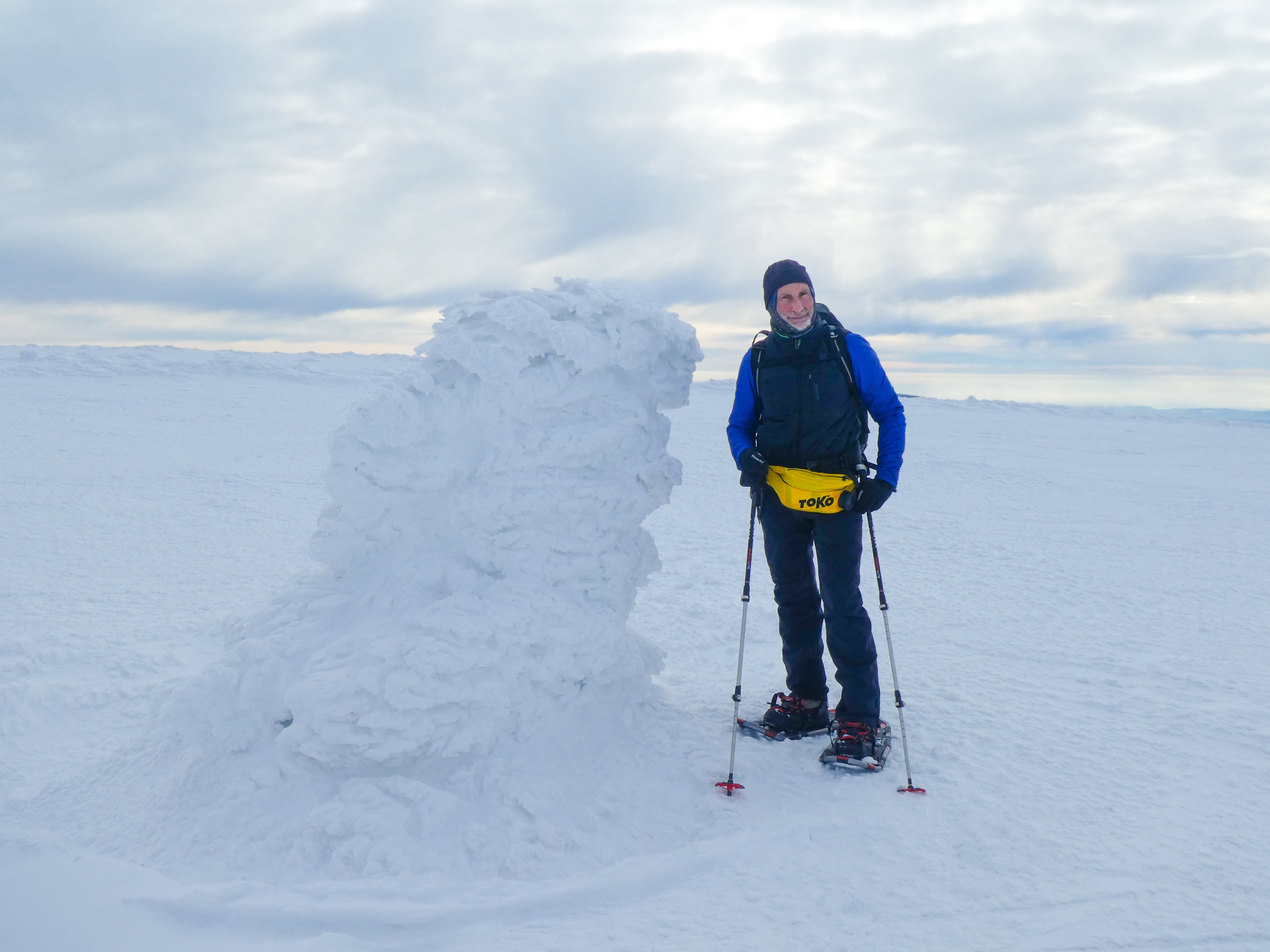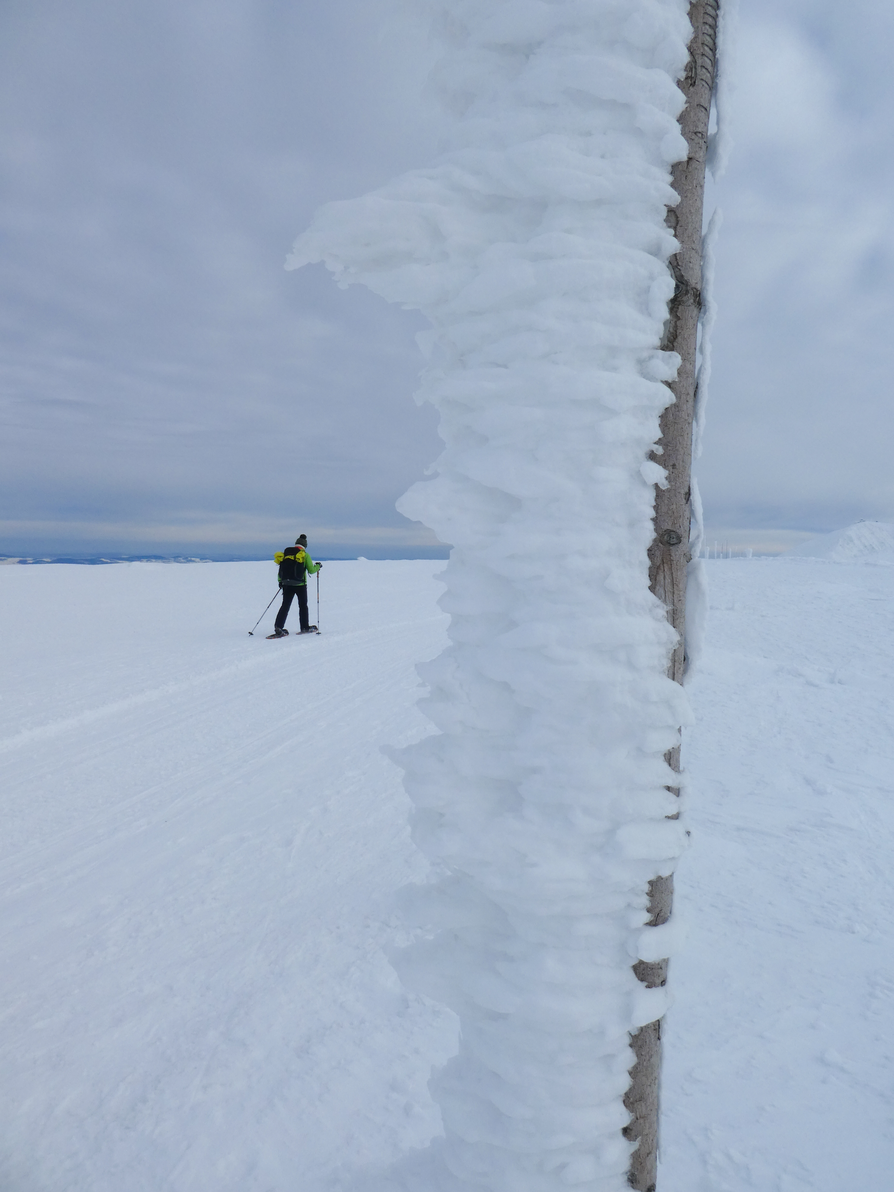 8.02.2023 Heut machen wir eine kleine Rundwanderung und kommen zurück zur Martinsbaude. Zunächst geht es zum Hohen Rad, dessen Gipfel wir um paar Meter verfehlen, nördlich anschließend kommen wir zu den Schneegruben mit einer Sendestation des polnischen Fernsehens. Bei Nebel und etwas Wind war es zeitweise sehr unangenehm kalt. Nun geht es vorbei an der Elbquelle zur Elbfallbaude, wo wir unsere Mittagspause einlegen. Von hier sind wir nach einer Stunde am frühen Nachmittag zurück in der Martinsbaude. Zeit für ein Bier und ausgiebigen Mittagsschlaf.