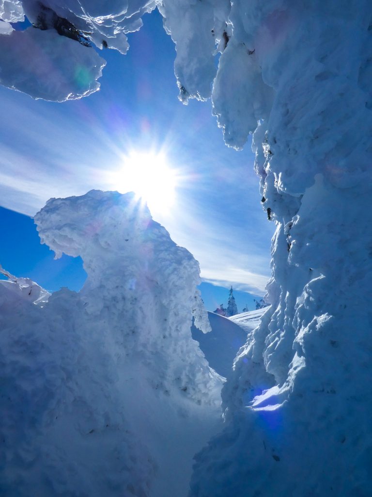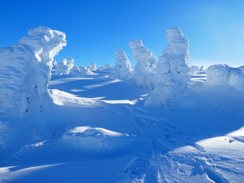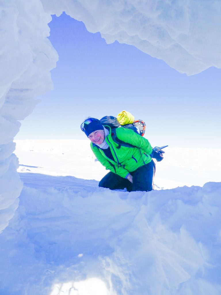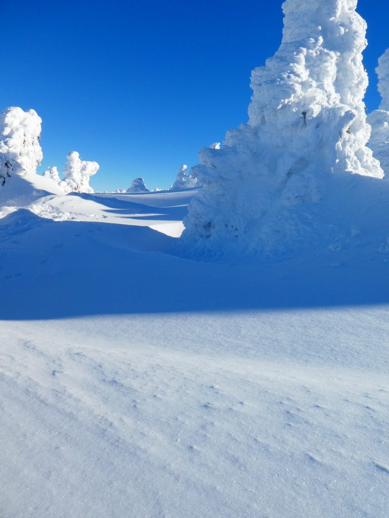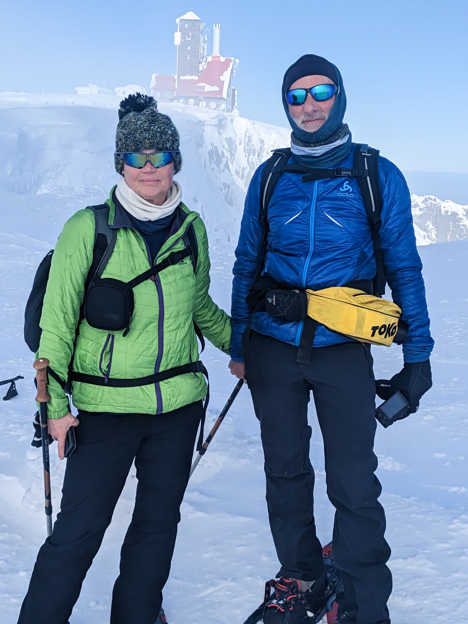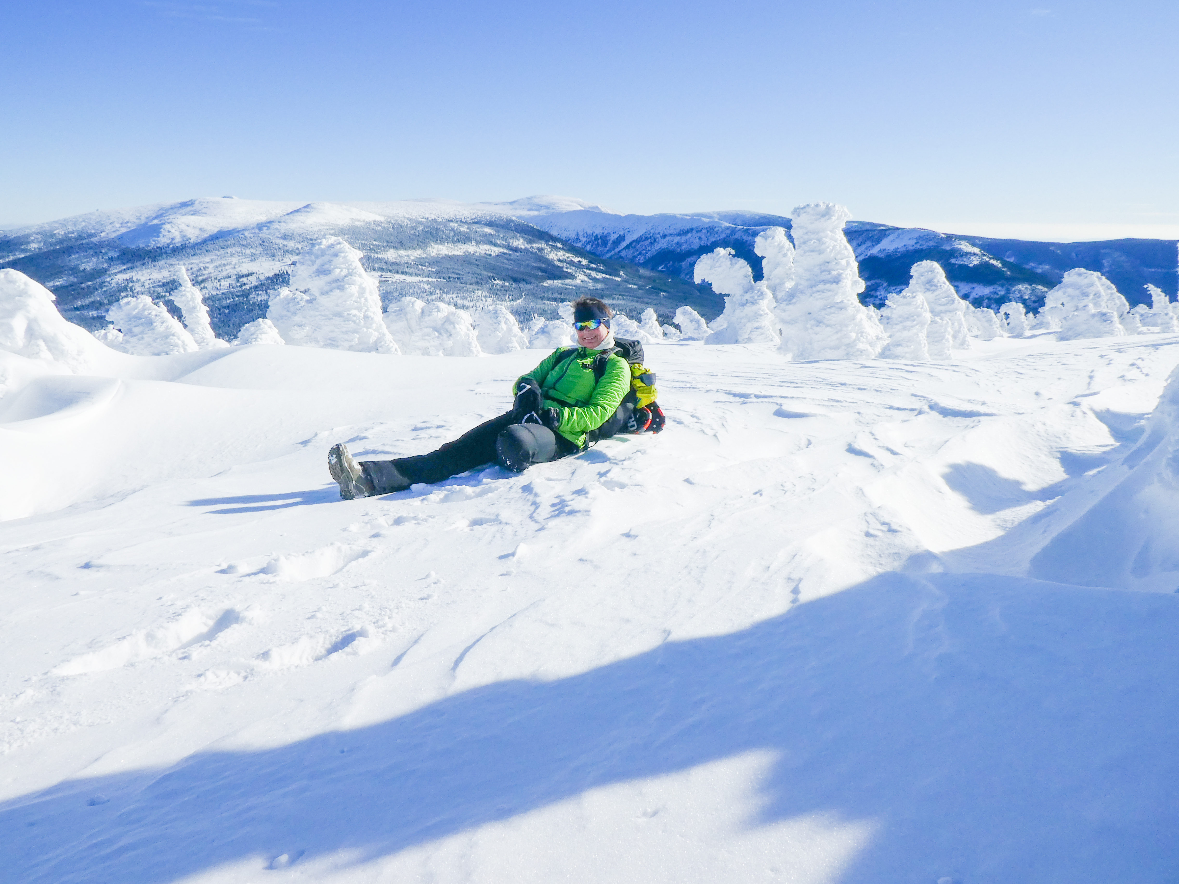 7.02.2023 Anneroses Geburtstag! Die Teichbaude, wie das Schlesierhaus, auf polnischer Seite, war gemütlich und das Essen gut. Die Hütte ist etwas abgelegen, 200 Höhenmeter unterhalb des Hauptkamm. Diese 200 Meter geht es nun am Morgen wieder hinauf. Bei wunderschönen kalten, sonniges Winterwetter wandern wir vorbei an beeindruckenden Eisformationen Richtung Spindler-Pass. Dort machen wir eine kleine Mittagspause, bevor es weiter geht über die Petersbaude zur Martinsbaude. In der Martinsbaude treffen wir dann auch auf andere deutsche Touristen, meist Langläufer. Das Essen ist wieder sehr gut und das Bier und der Wein natürlich auch auch.