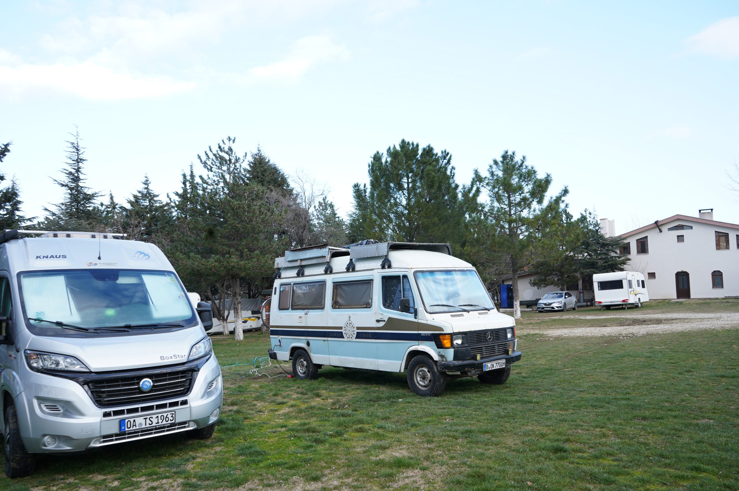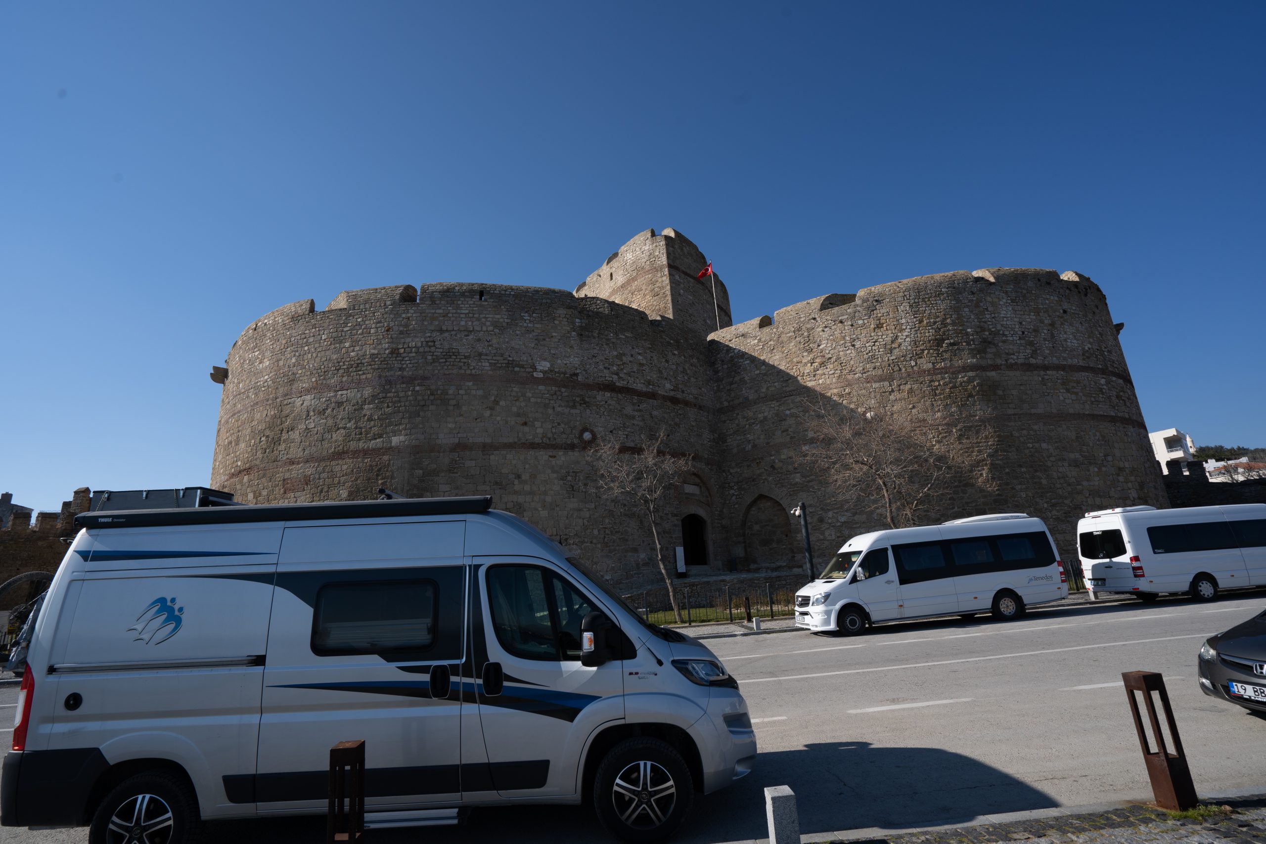 Weiterfahrt Richtung Galibolu Halbinsel, lassen also Istanbul links liegen. Gut gemacht, denn zwei Tage später gibt es einen Schneesturm in Istanbul. Schon auf der Anfahrt hatten wir sehr kalte Temperaturen, nachts bis -8 und auch tagsüber unter Null. So waren unsere Gasflaschen schon ziemlich leer. Für das auffüllen mit LPG hatten wir keinen passenden Adapter. LPG gibt es an vielen Tankstellen. Nur für das auffüllen unserer Gasflaschen hatten wir noch nichts gefunden. So war es ganz gut, dass wir bei unseren Zwischenstopp auf den Saroz Campingplatz Strom zur Verfügung hatten. Wir waren die ersten Gäste, alles noch im Winterschlaf. Duschen waren zumindest nicht eingefroren, aber das Wasser eben eiskalt. Wir haben es gewagt.