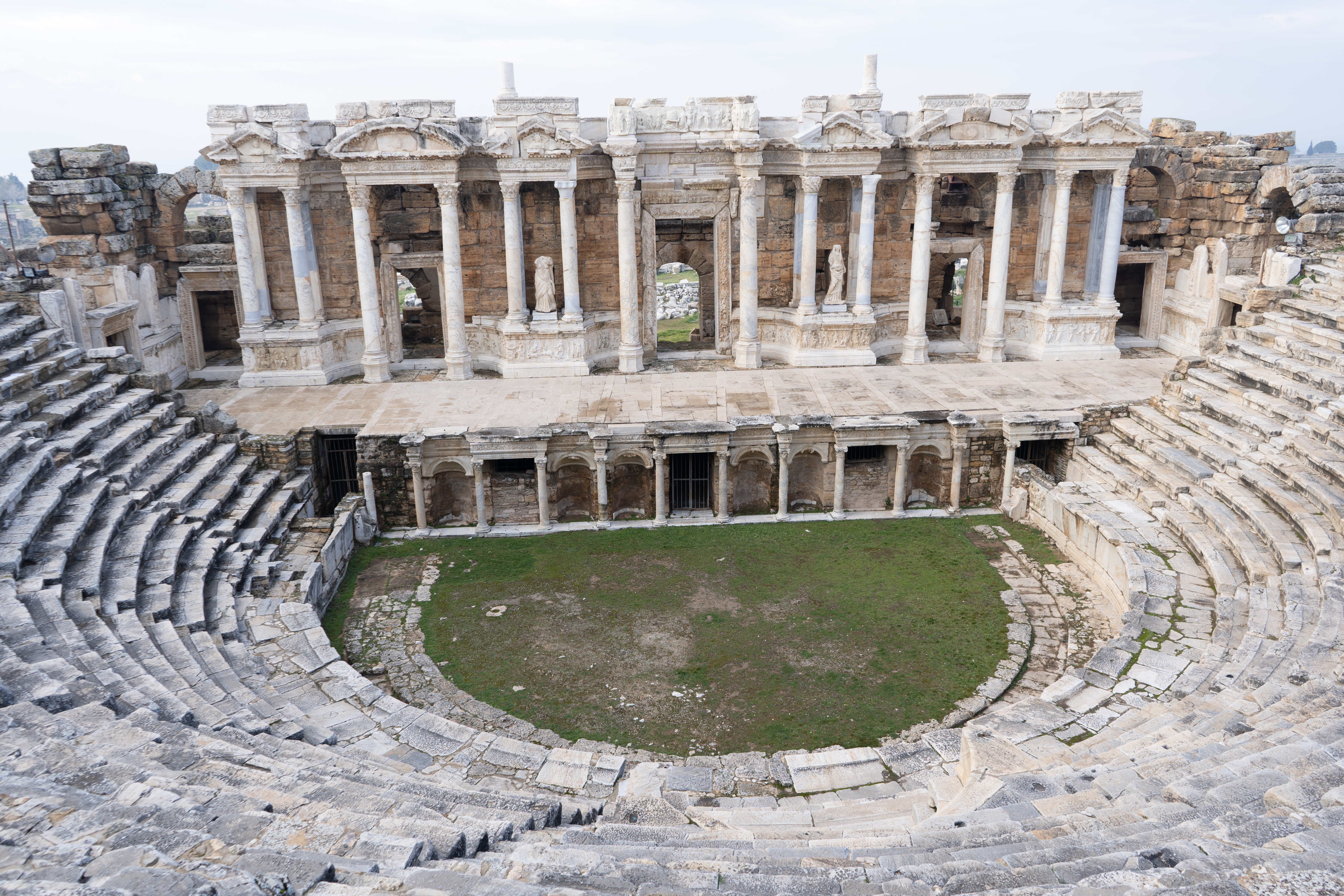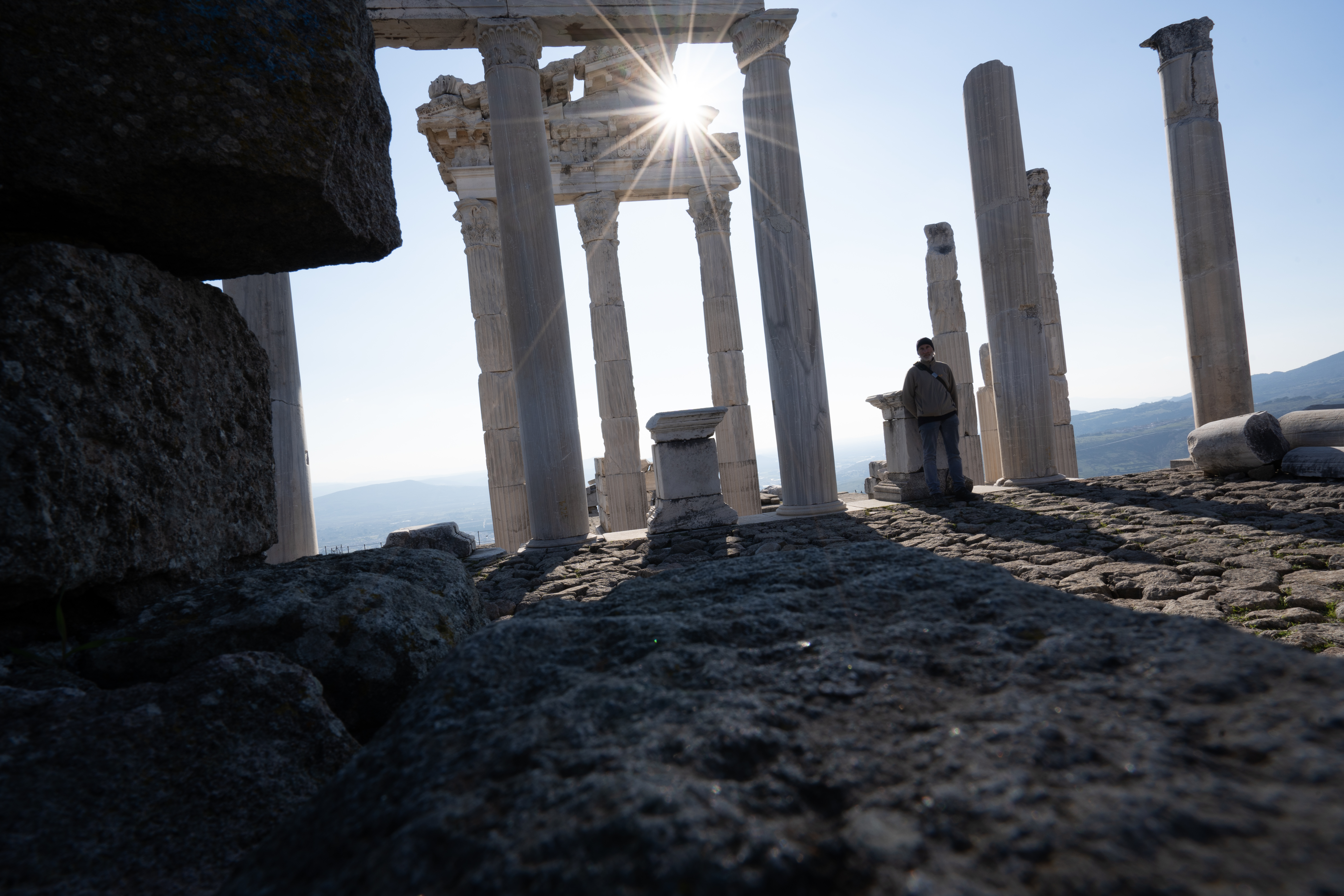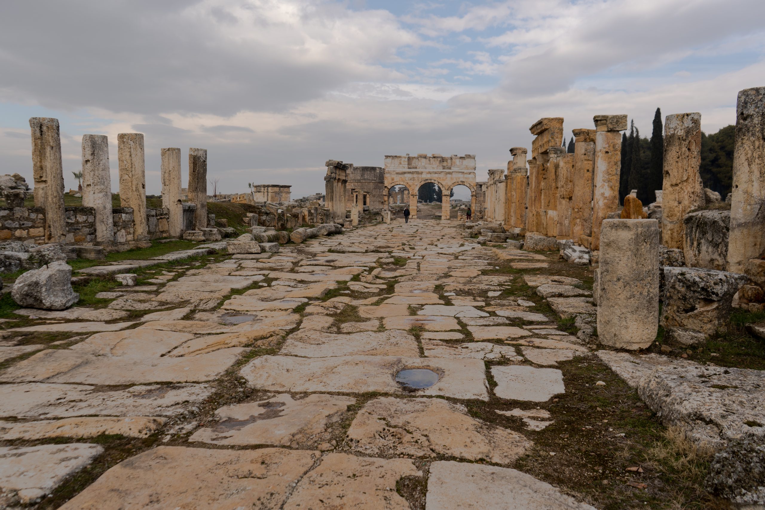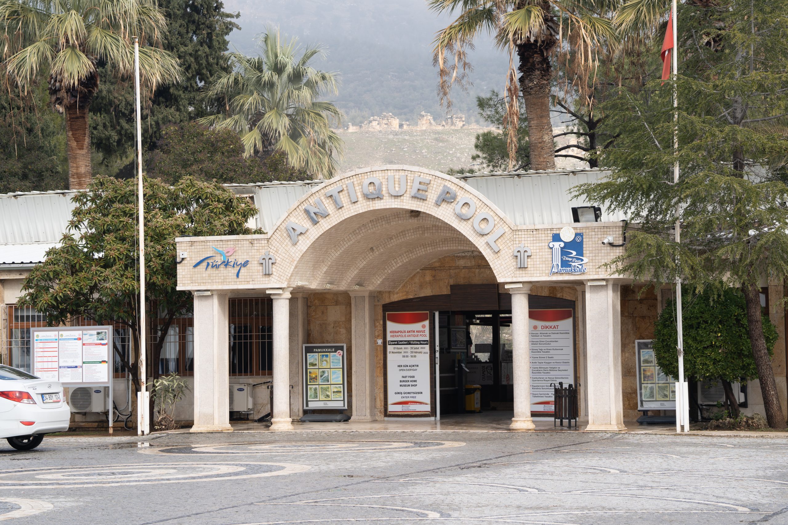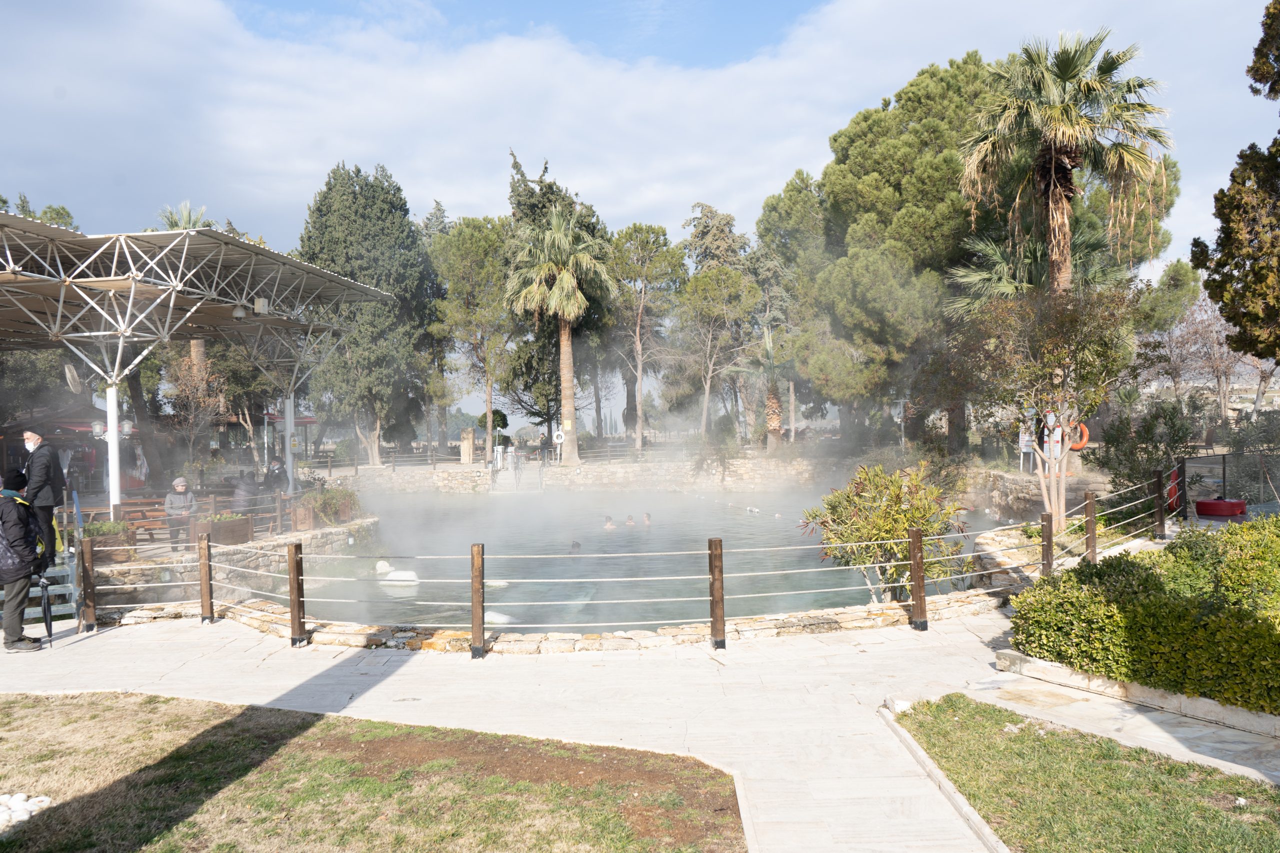 Am nächsten Morgen gehe ich in das antike Thermalbad (Hilli hat sich den Zeh angeschlagen und kann kaum laufen) . Das Bad befindet sich mitten auf den Ruinen von Hierapolis. Bei den noch sehr kalten Außentemperaturen tat das warme Wasser besonders gut. Es hilft ja auch für alles.