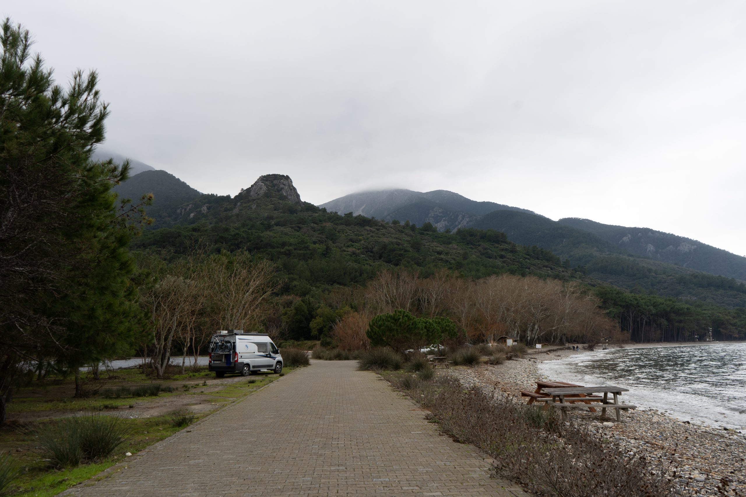 Am Abend des 26.01.2022 finden wir dann eine Übernachtung auf diesem kostenpflichtigen Strand (Papaz Plaji). Ausnahmsweise dürfen wir hier übernachten (7€). Wir sind weit und breit die einzigsten Touristen und genießen den Strand für uns zu haben. Es gibt auch keine wilden Hunde, so hat Kalo freien Auslauf.