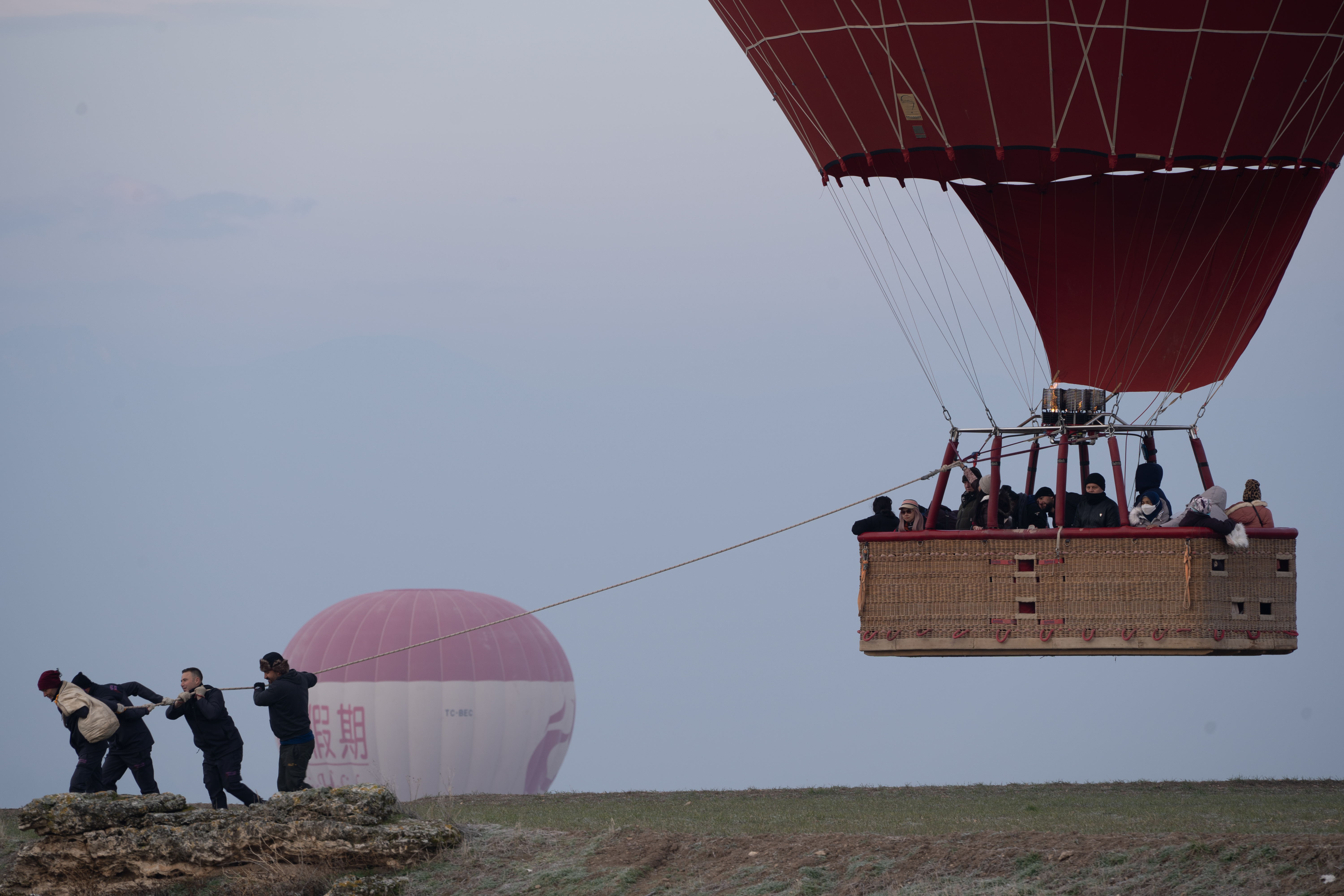 Abends und am nächsten Morgen starten viele Ballons mit meist russischsprechenden Touristen