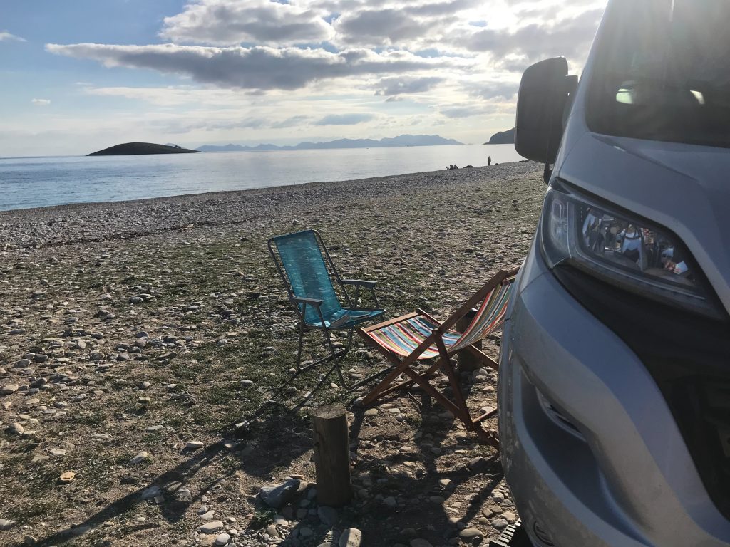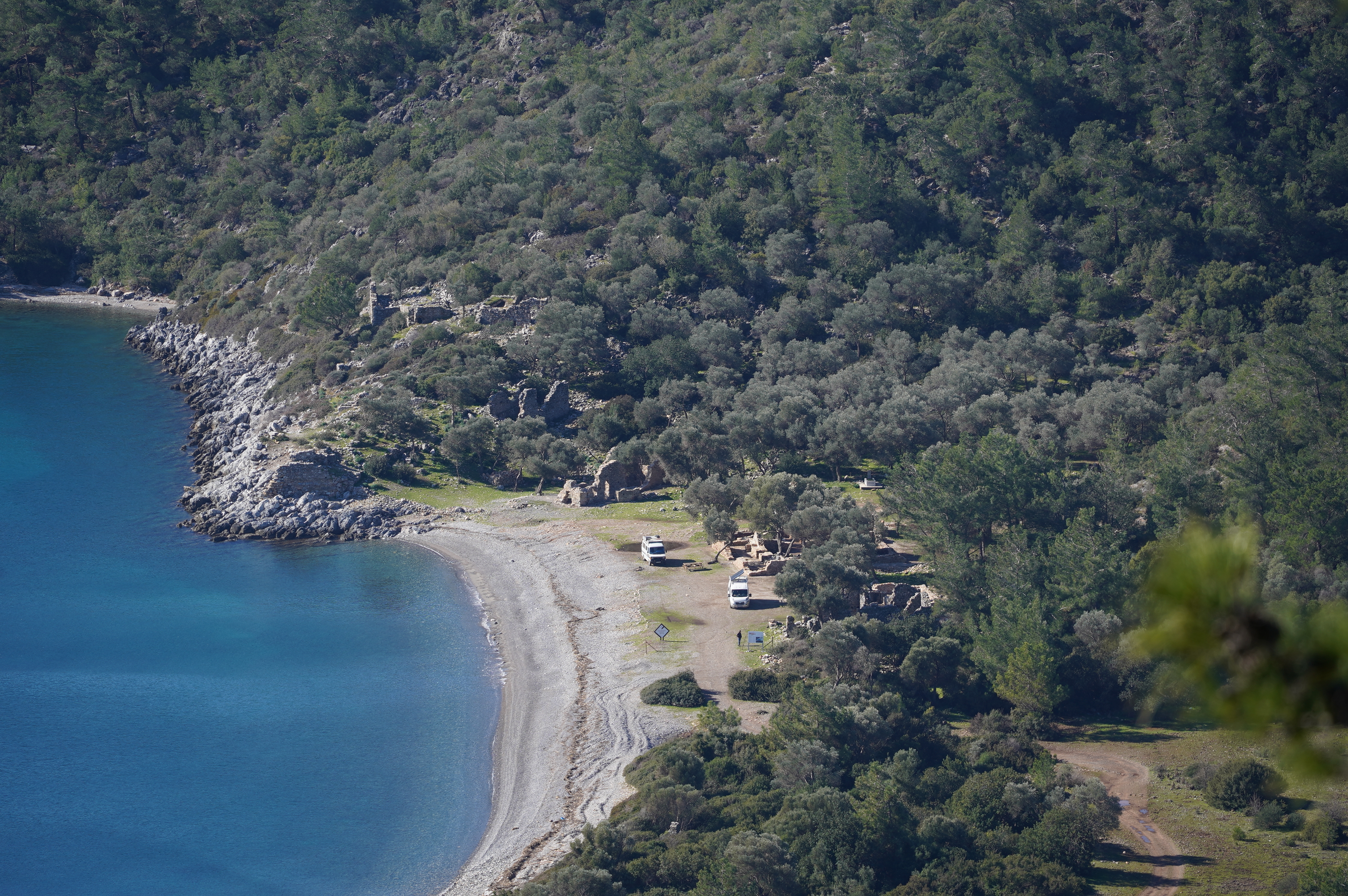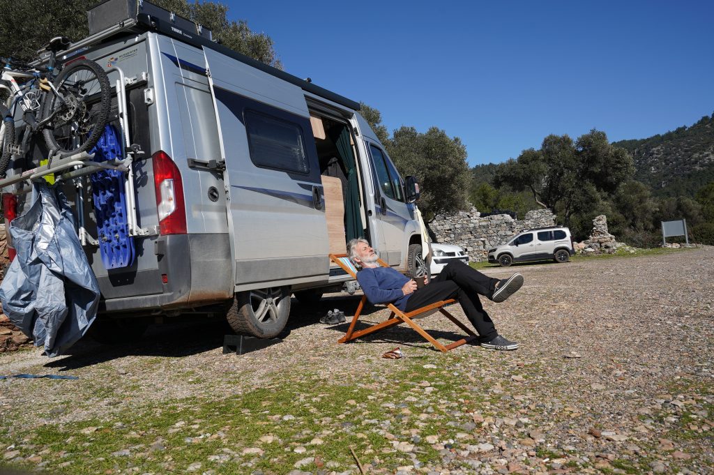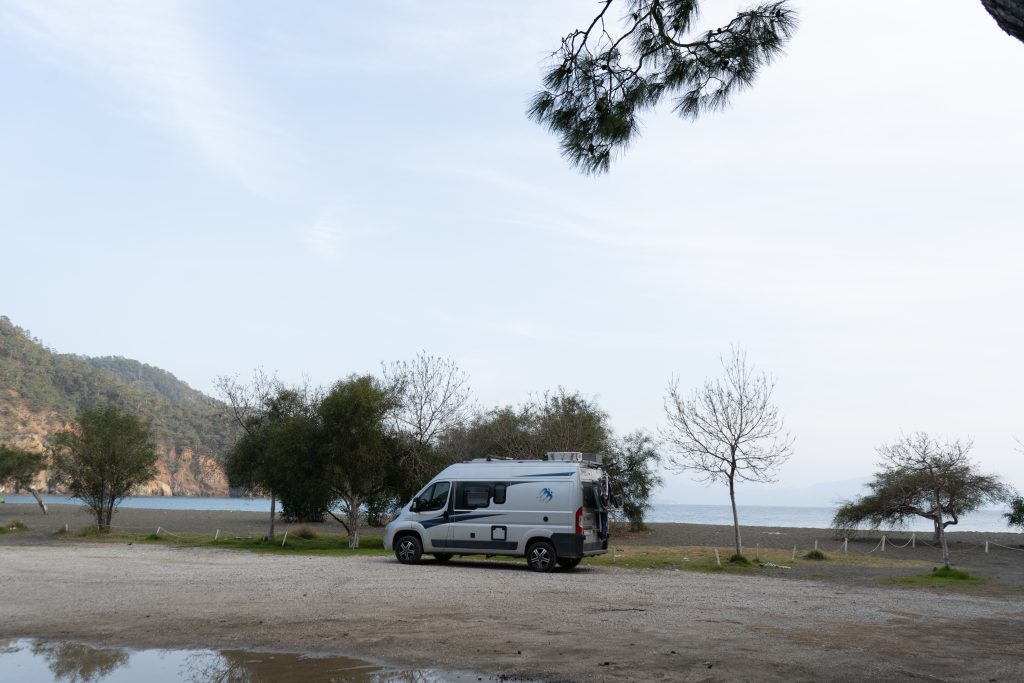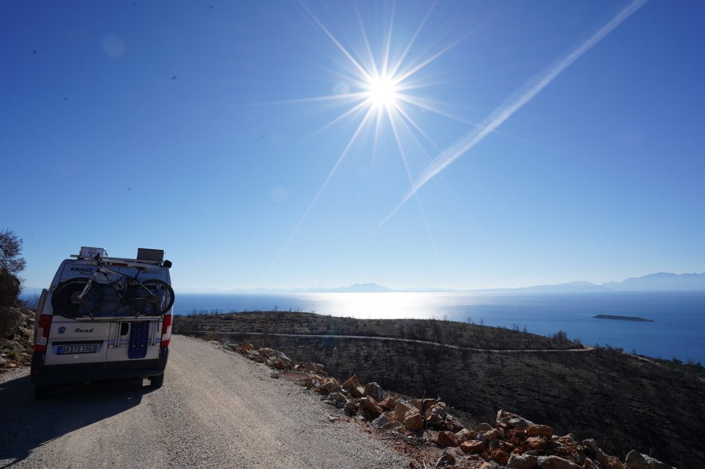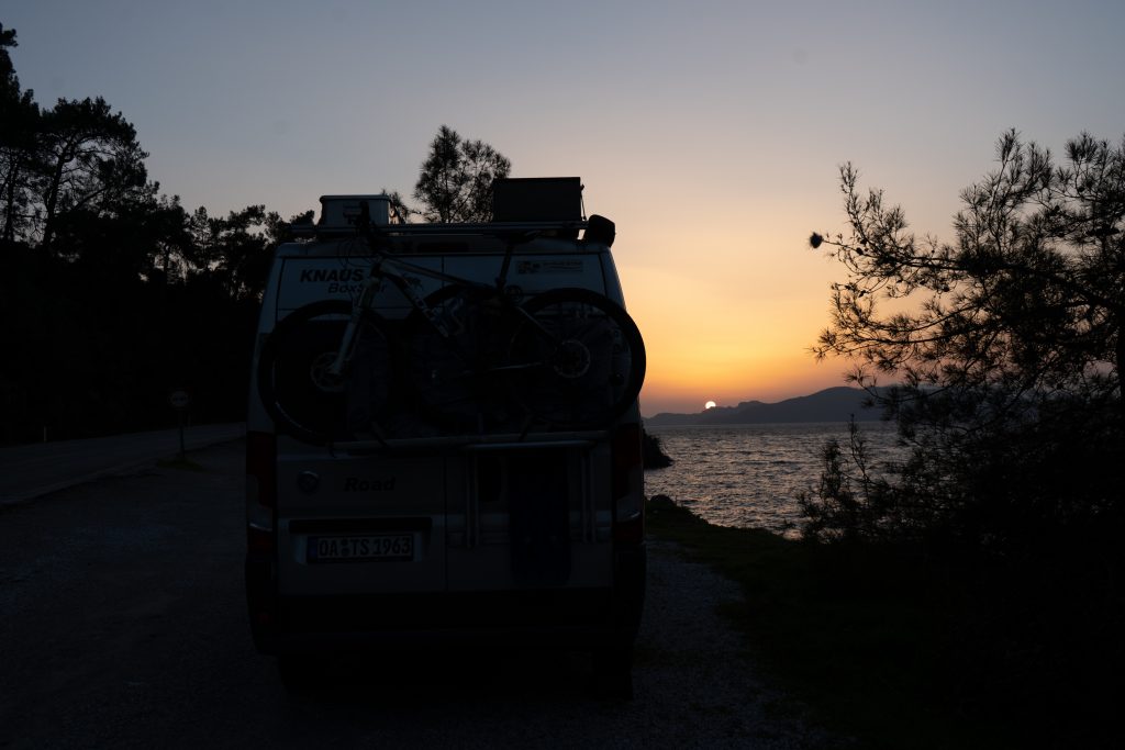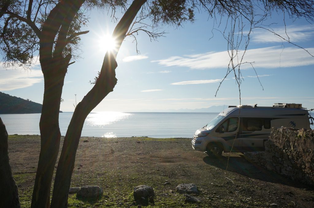 12.02.2022 Weiterfahrt in die Palamutbükü Bucht, immer noch auf Datca. Stellplatz direkt am Strand.