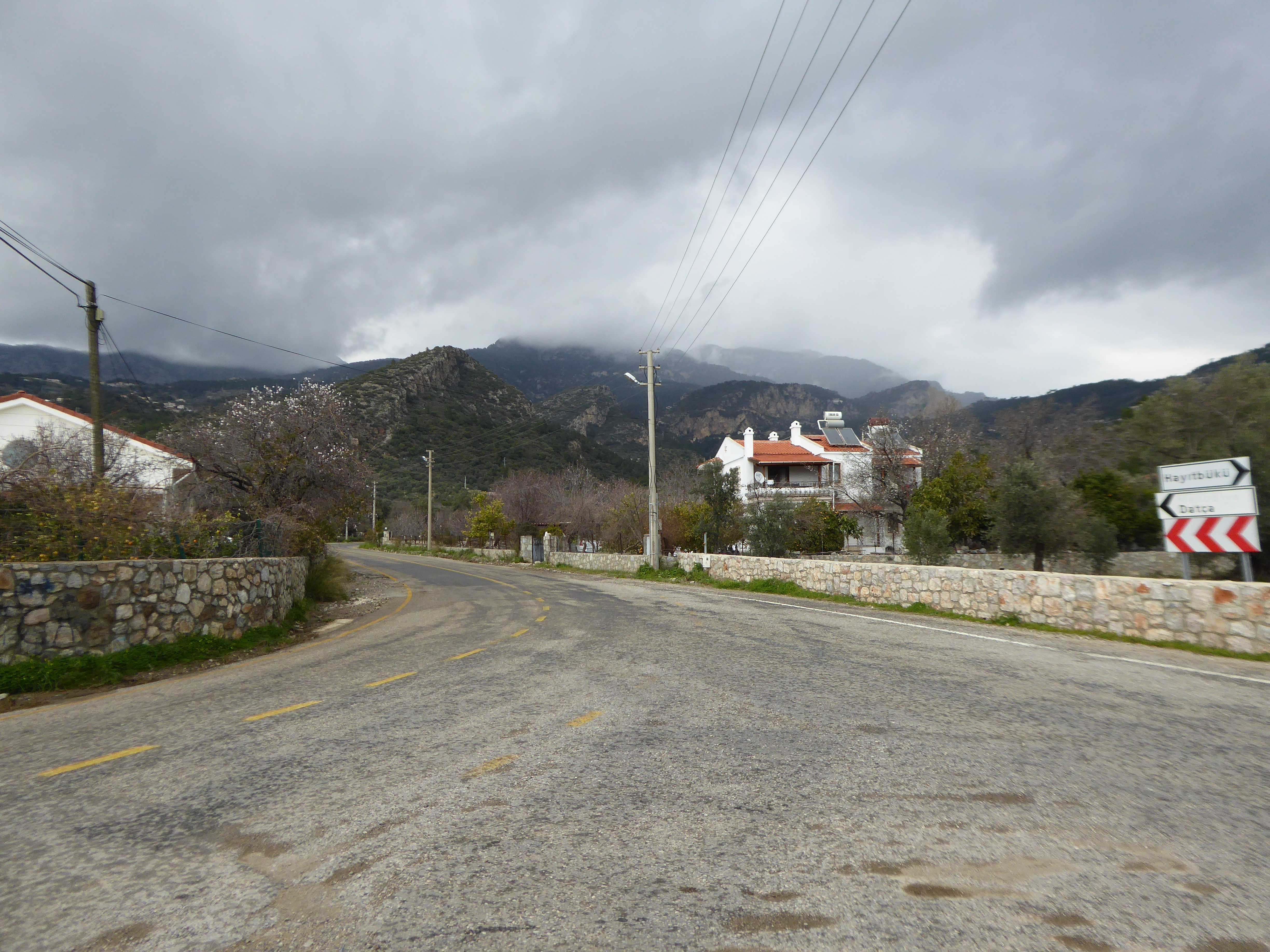 Es ist wieder Regen angekündigt. Ich beschließe den schönen Platz zu verlassen um nicht gefangen zu sein, wenn die Zufahrtsstraße unpassierbar wird. Hilli glaubt dem Wetterbericht nicht und bleibt noch. Es regnet aber ganz ordentlich und sie wird drei Tage warten müssen, ehe sie wieder dort wegkommt. Ich fahre nach Marmaris.