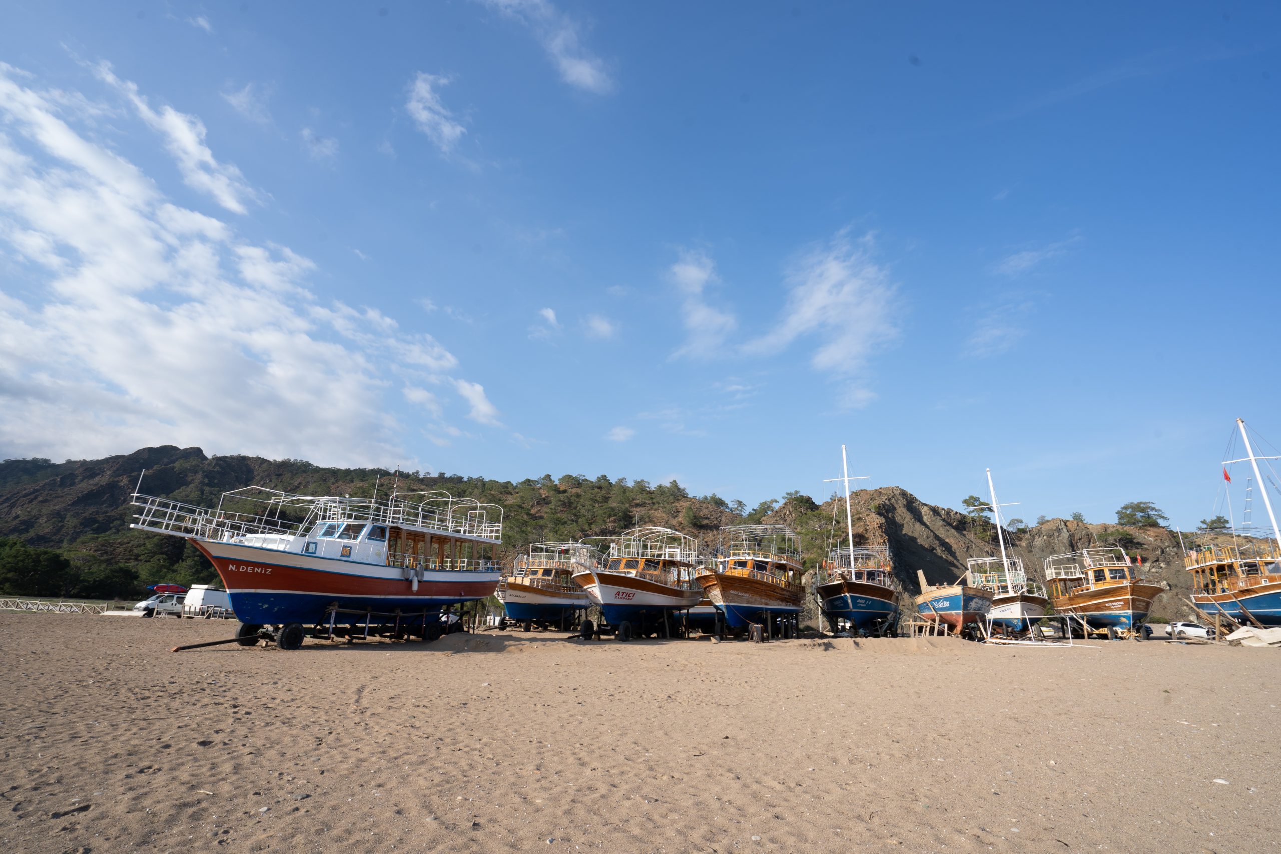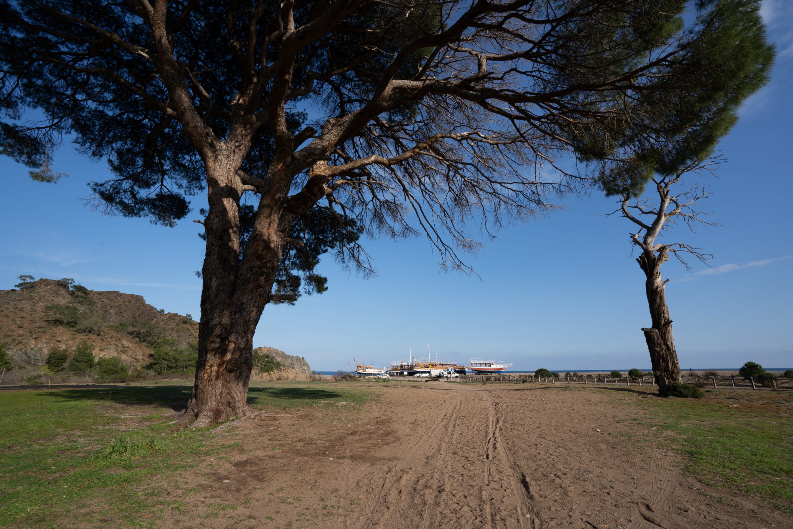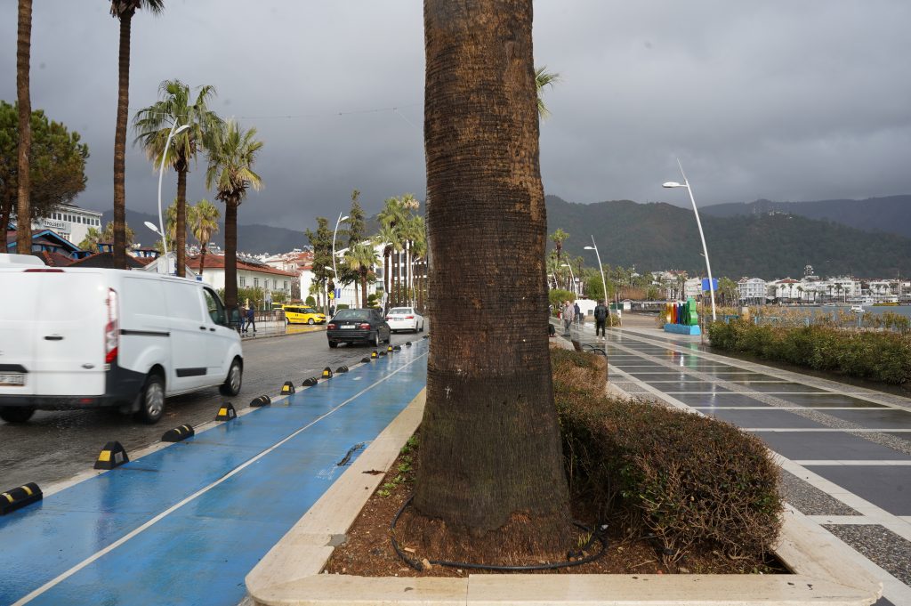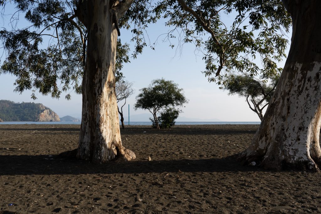 Stellplatz am Straßenrand am Anfang der Halbinsel Bozburun. Nicht nur hier, überall der Prozessionsspinner. Dem sollte man ja nicht zu nahe kommen. Nach kleiner Umrundung der touristisch wenig erschlossenen Halbinsel, Weiterfahrt Richtung Fethiye, nach Göcek, mit Zwischenstopp am Köycegiz See. Obwohl kein Meer, doch sehr touristisch und schön.