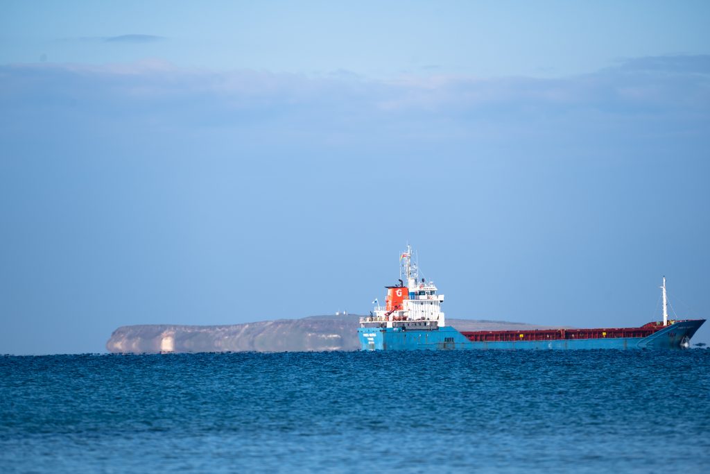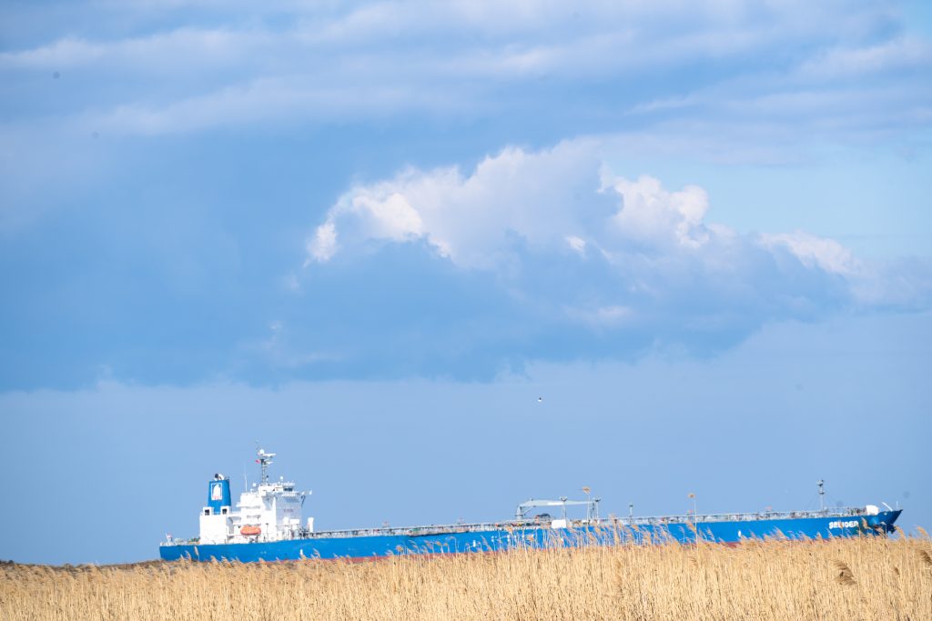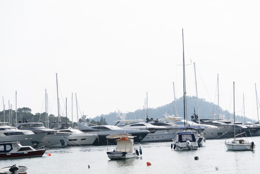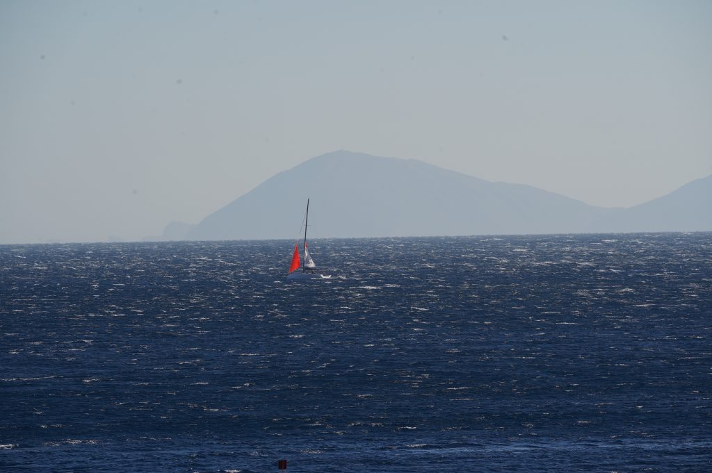 …mit Blick auf vorbeifahrende Schiffe …oder dieses kleine Segelboot aus der USA offensichtlich.