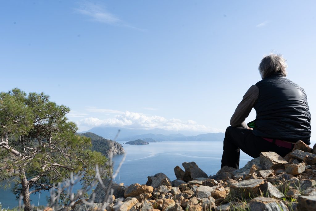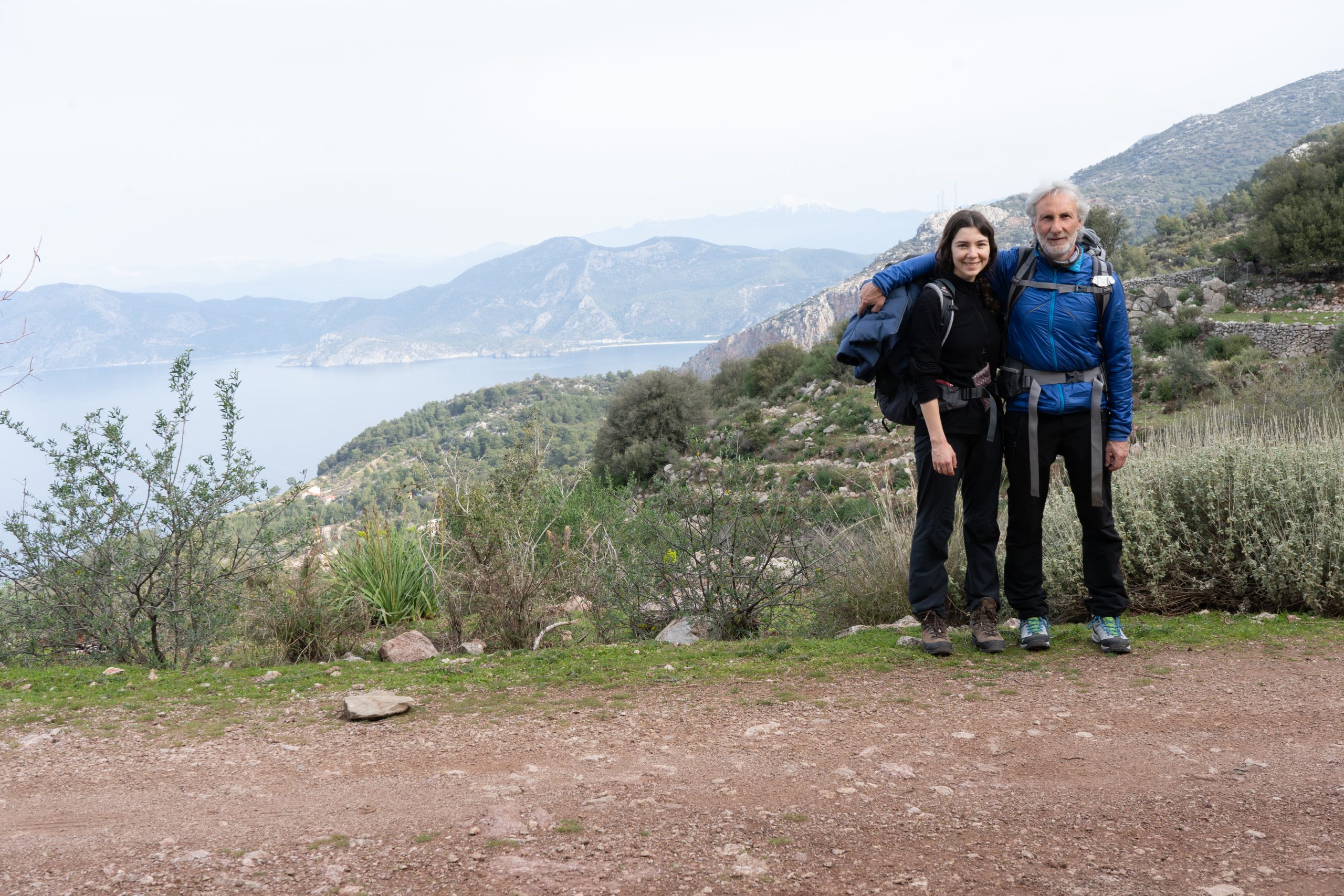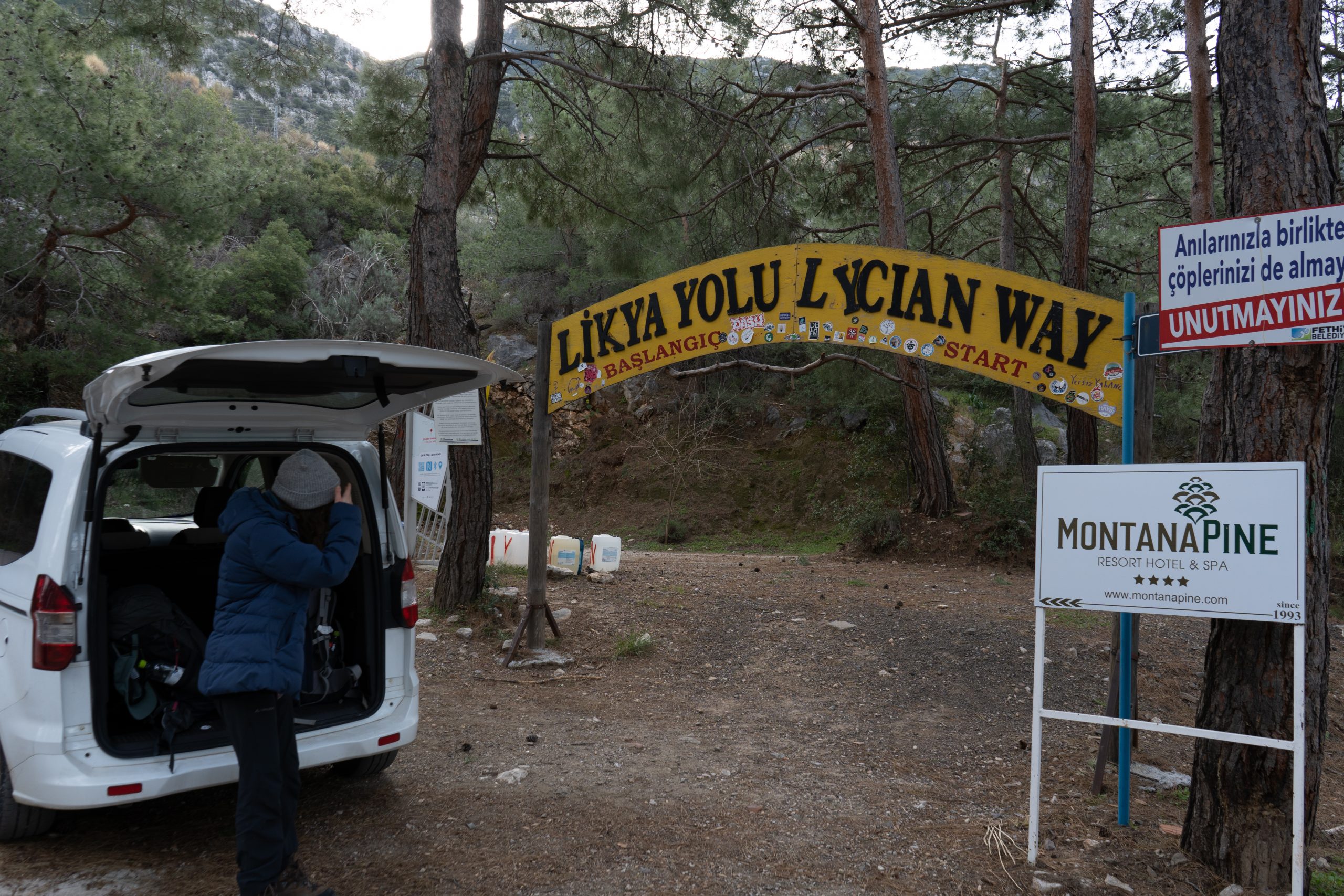 Habe Josi gestern vom Flughafen Dalaman abgeholt und heut am 20.02.2022 starten wir ein paar Etappen auf den lykischen Weg. Start in Ölüdeniz. Wir werden von der Pension direkt bis zum Einstieg gefahren. Erste Etappe geht nach Faralya, oberhalb der Schmetterlingsbucht.