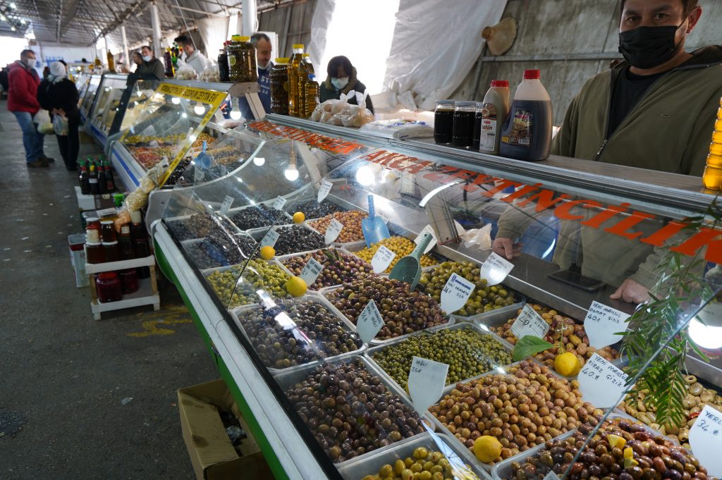 Angekommen in der sehr geschäftigen Stadt Bodrum. Es ist gerade Markt. Viele verschiedene Sorten Oliven….und Käse….und und und