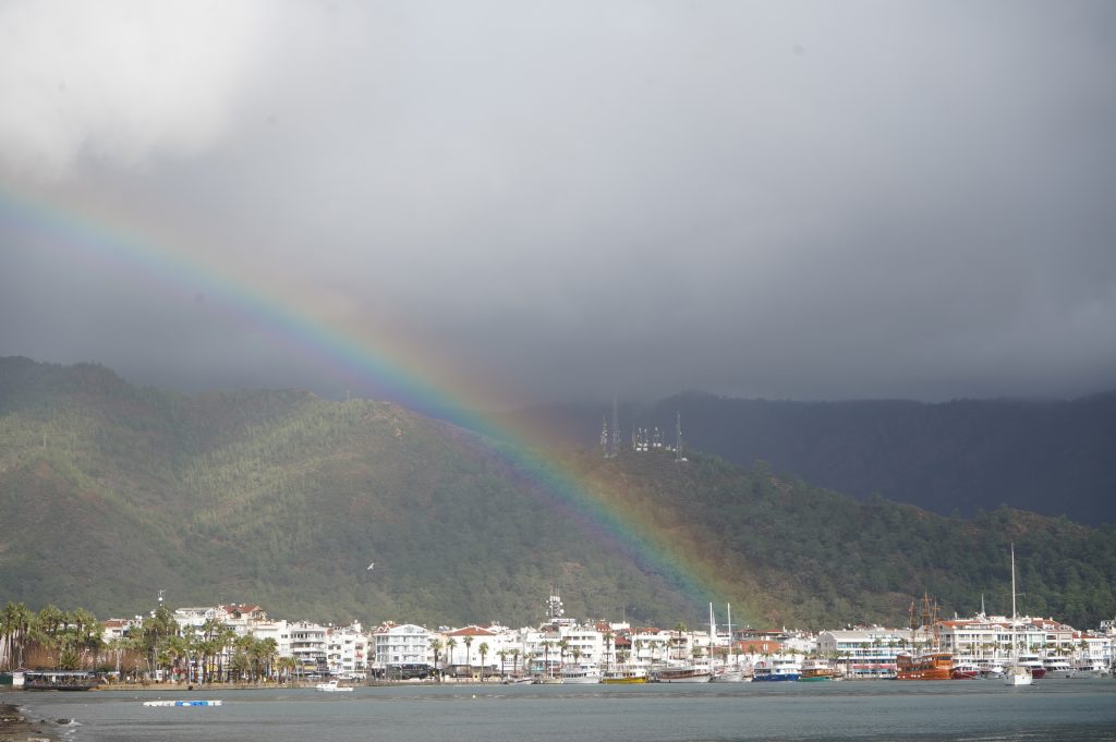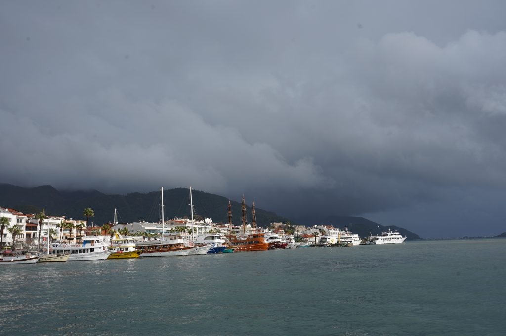 Bei immer noch leichten Regen mache ich einen Bummel durch die Stadt. Wieder viele luxuriöse Segelyachten im Hafen. Die Altstadt ist schön mit den vielen kleinen Gassen, Cafe’s und Restaurants. Es gibt aber auch unzählige Hotels und Ferienwohnungen und insgesamt alles sehr touristisch. Wie mir der Mann aus der Wäscherei erzählt, meist Briten und Russen, überhaupt ist die Türkei ein beliebtes Reiseland bei den Russen.