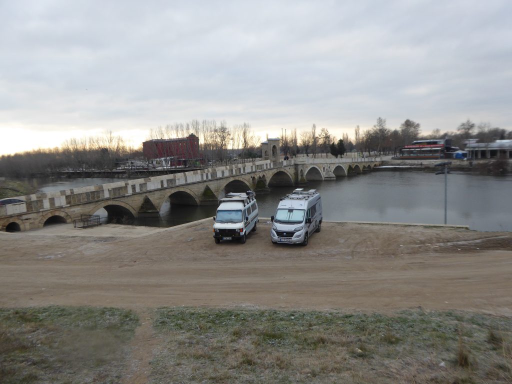Ankunft in der Türkei. Grenzübertritt ohne Probleme. Wir dürfen 3 Monate mit unseren Fahrzeugen im Land bleiben. Erster Stopp ist Edirne, 20km nach dem Grenzübergang Kapikule. Noch am Abend machen wir einen Spaziergang durch die schöne Altstadt.