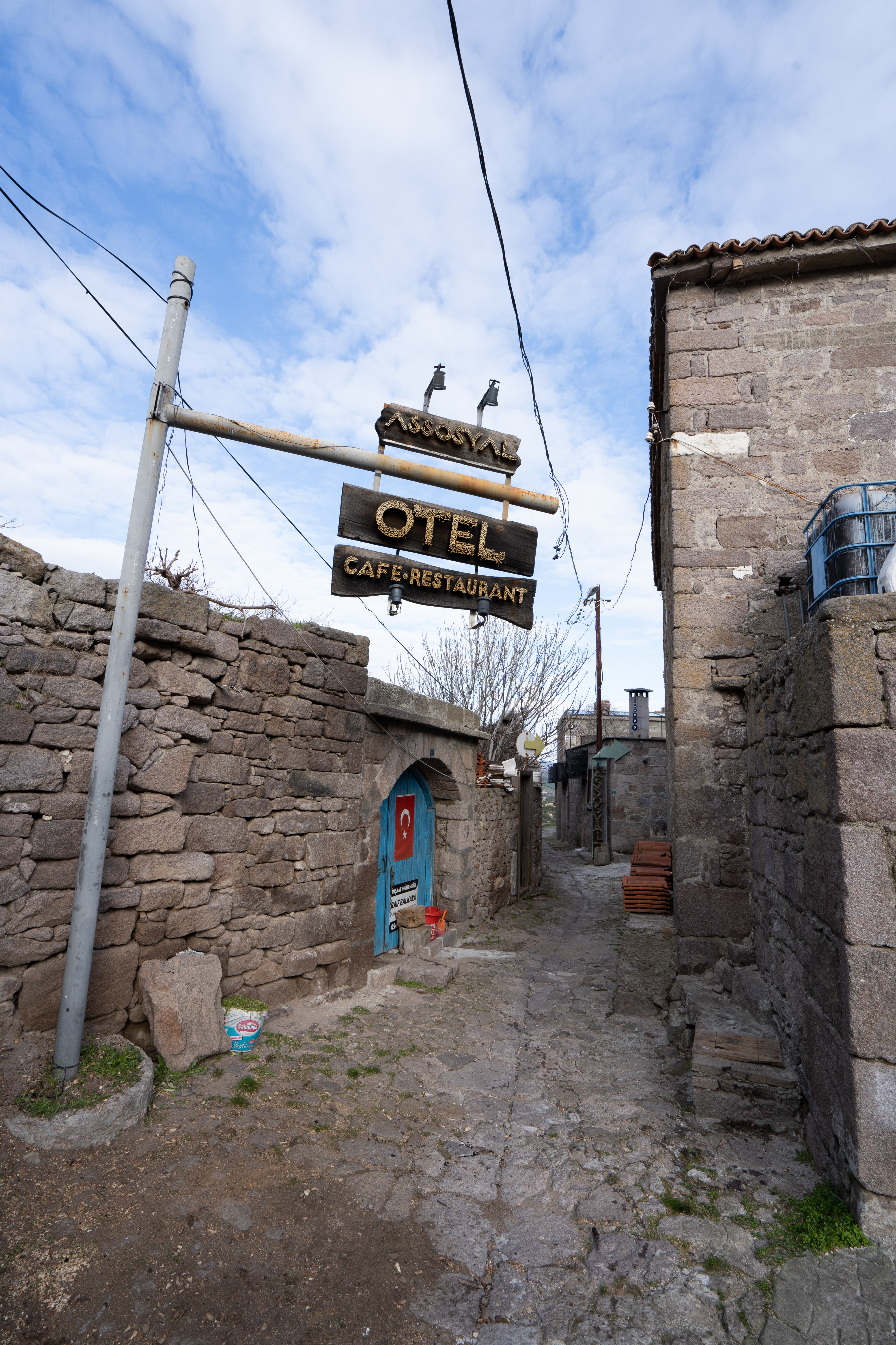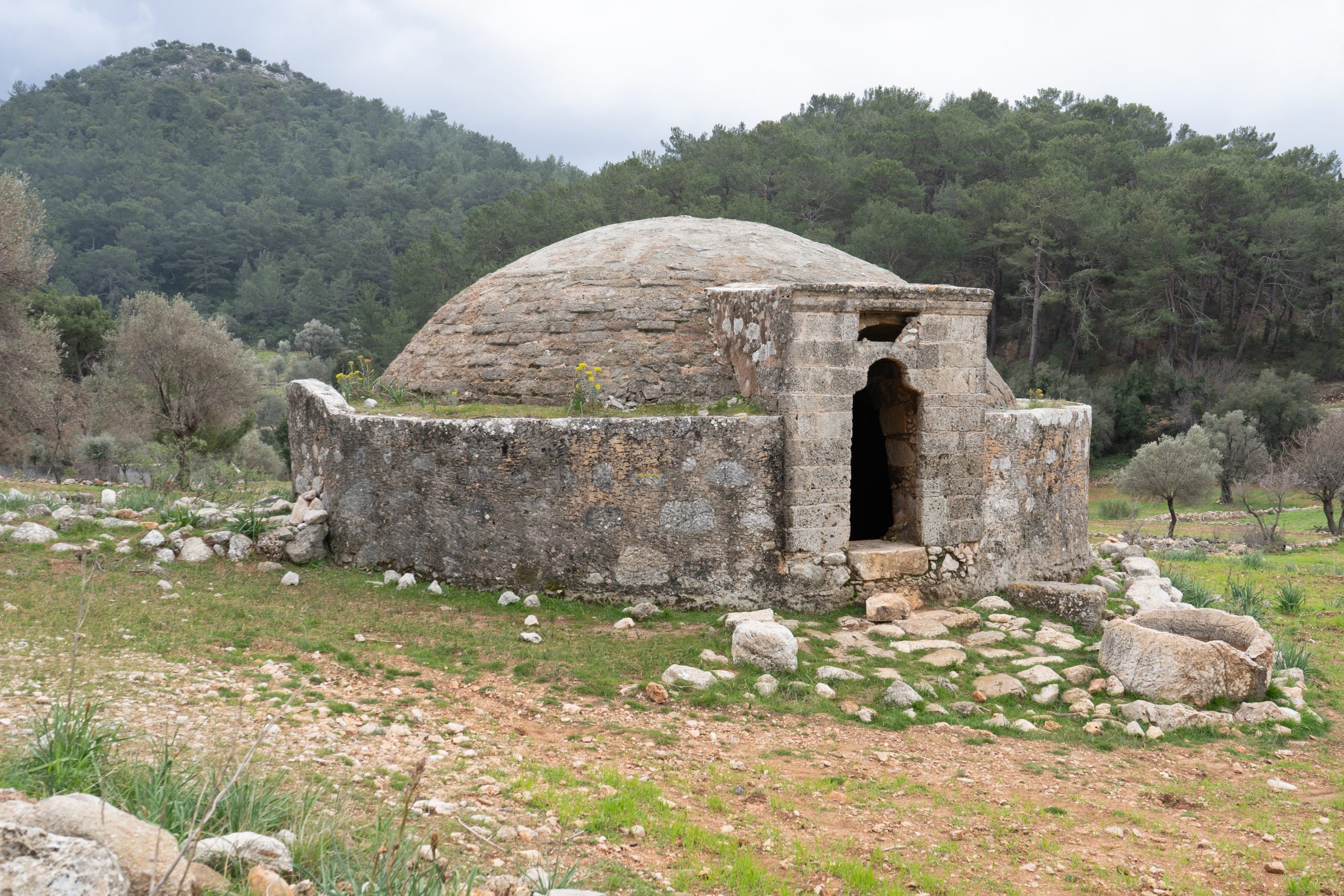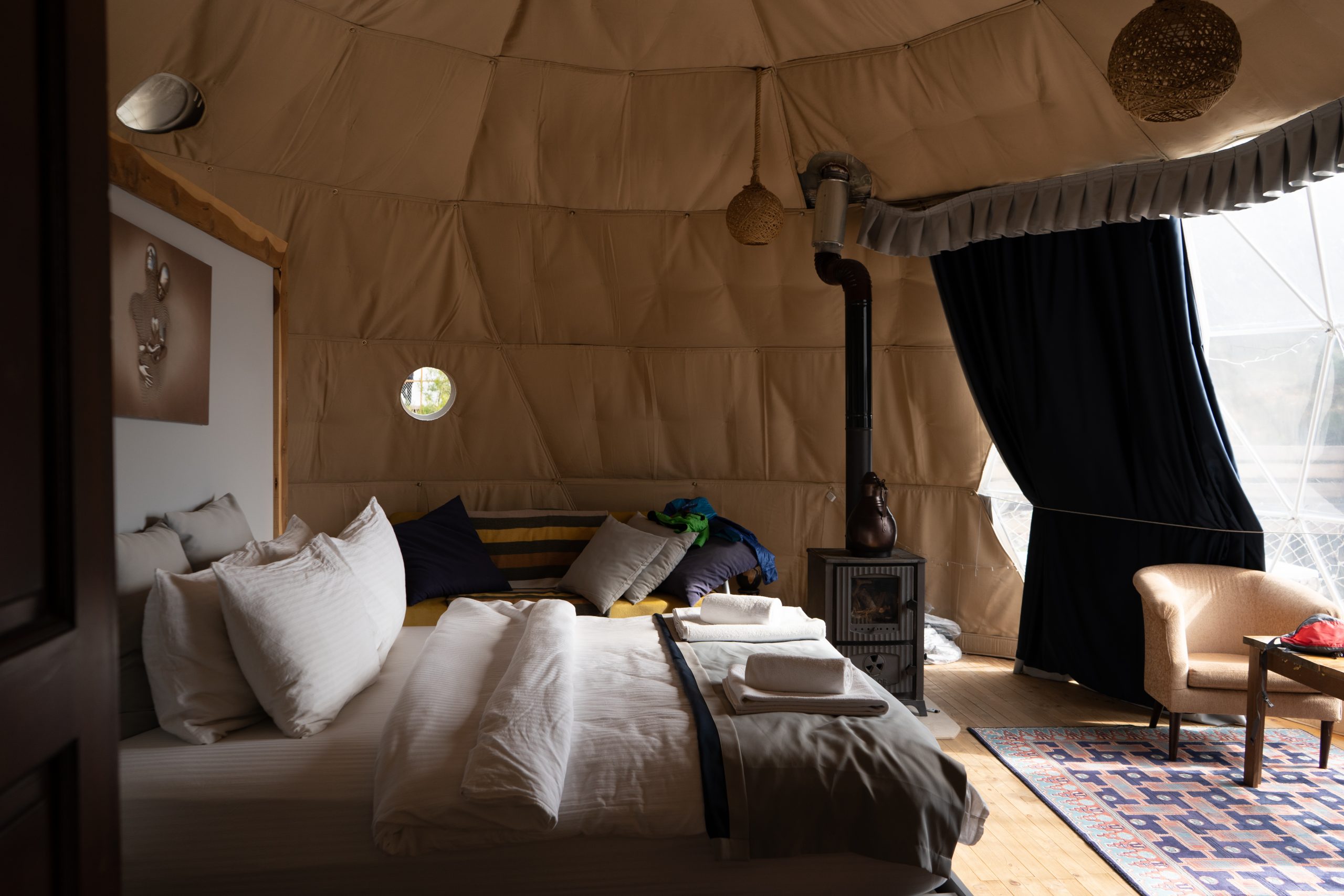 Wir laufen um Alinca herum zu unserer gebuchten Unterkunft Turkdomes Glamping