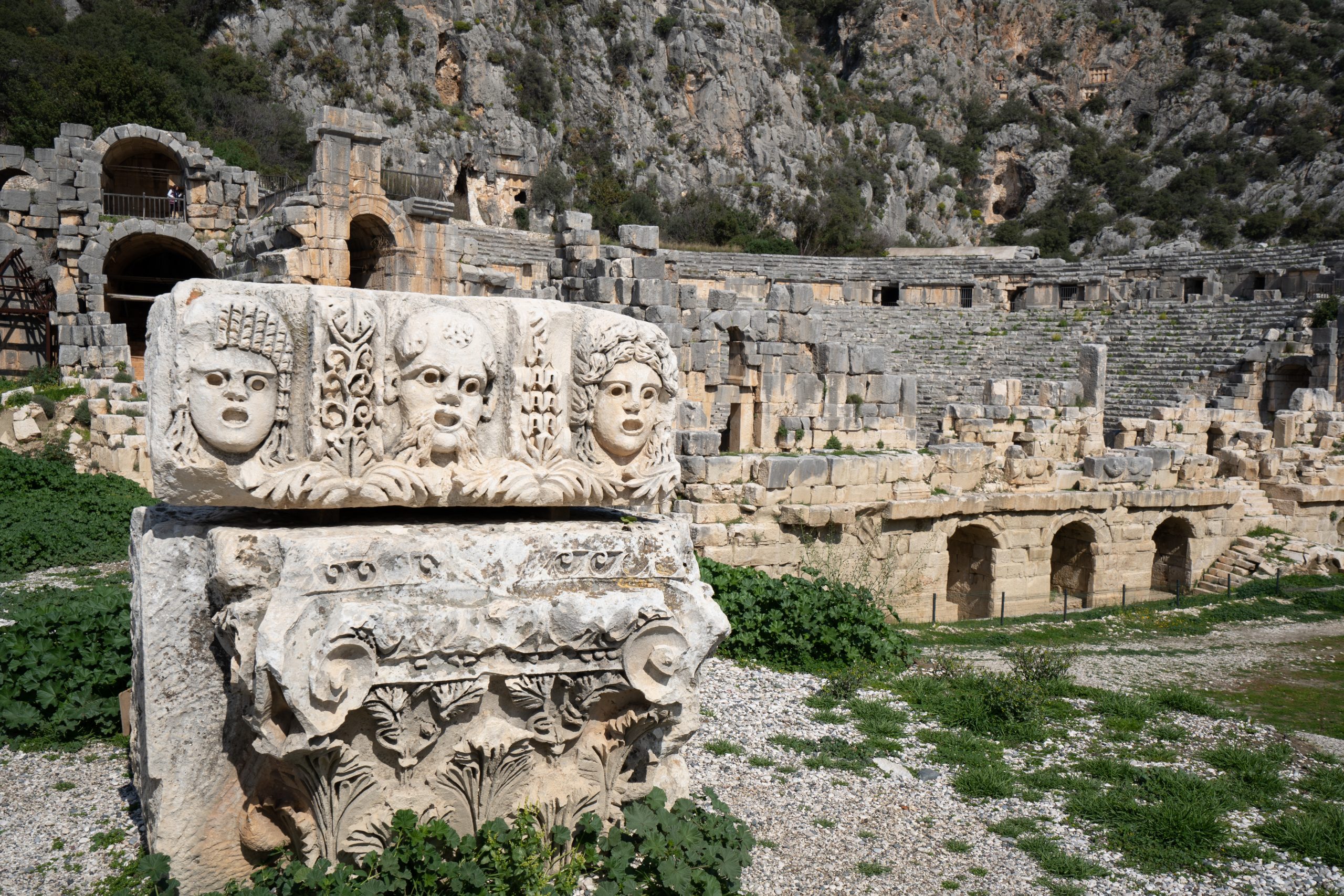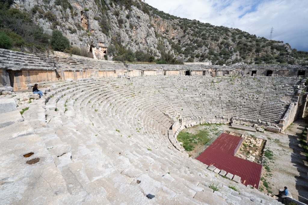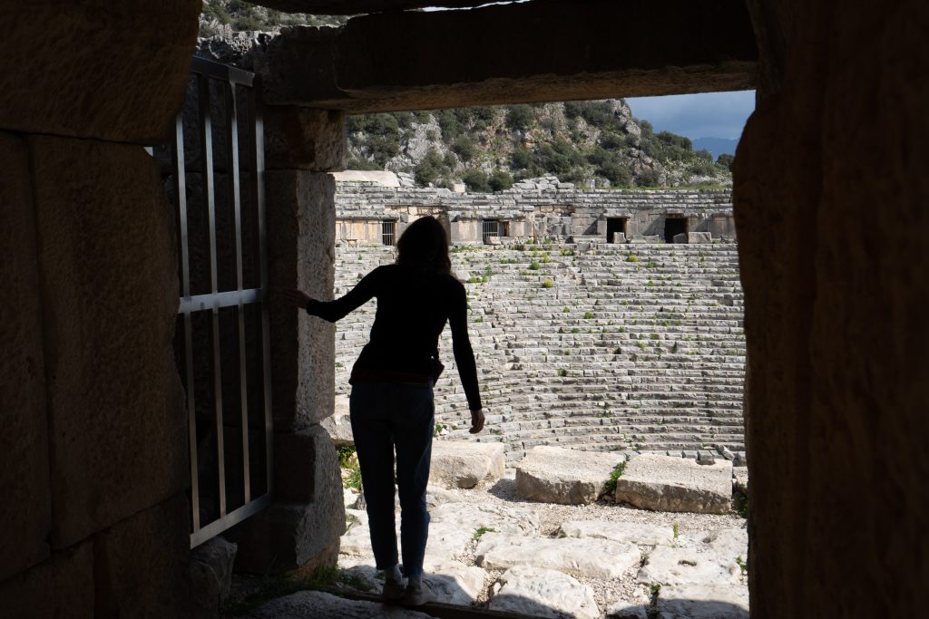 Wir fahren weiter nach Cirali zum Strand von Olympos und machen Halt beim antiken Myra mit seinen berühmten Felsengräbern