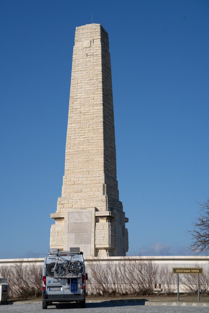 Wir suchen einen ruhigen Stellplatz an der Westküste der Halbinsel. Sowieso ist die Gegend ruhig, nicht so verbaut. Das liegt aber auch an den historischen Hintergrund der Halbinsel. Hier fand die Schlacht von Gallipoli statt, mit vielen Verlusten, aber mit einem türkischen Sieg. Viele Denkmäler erinnern daran.